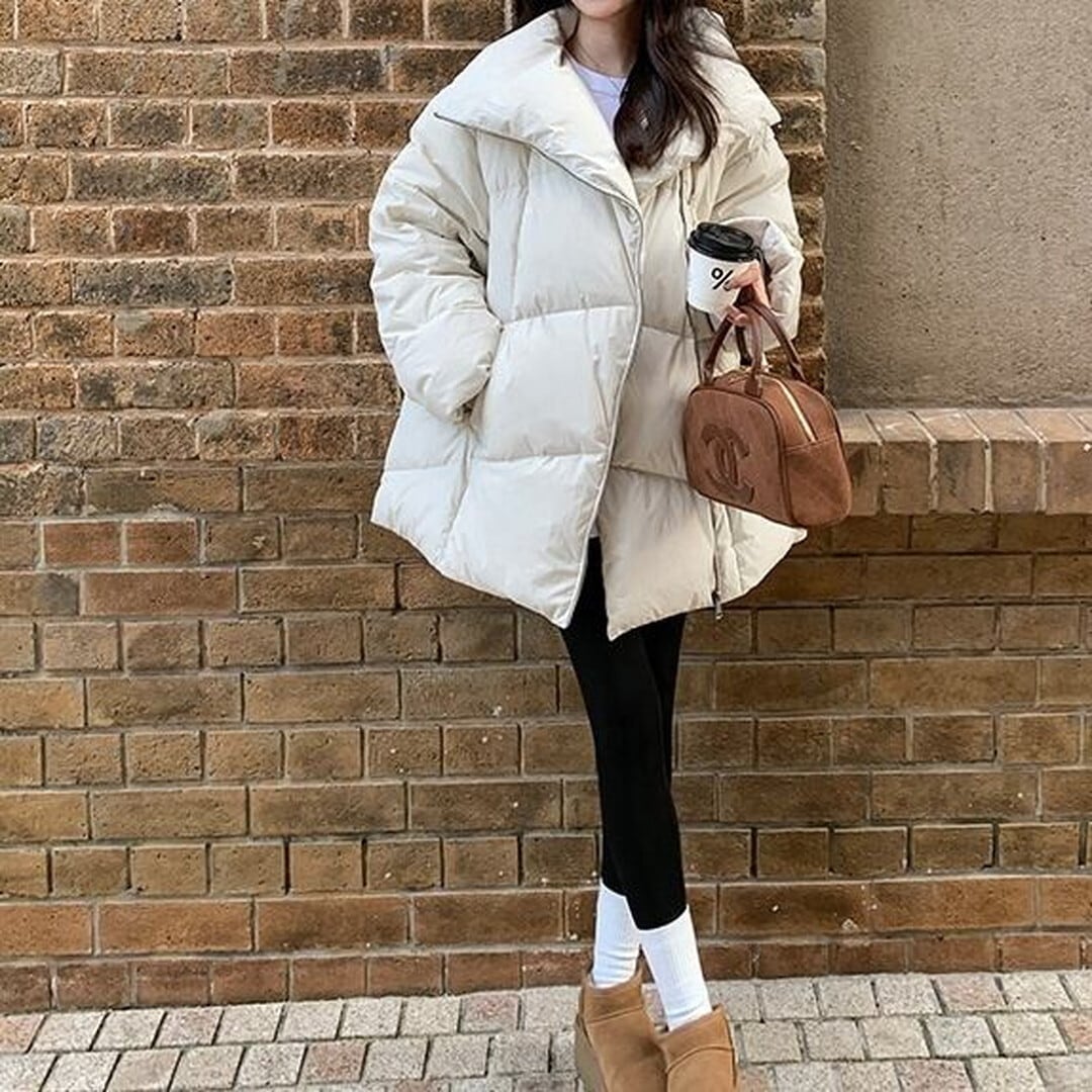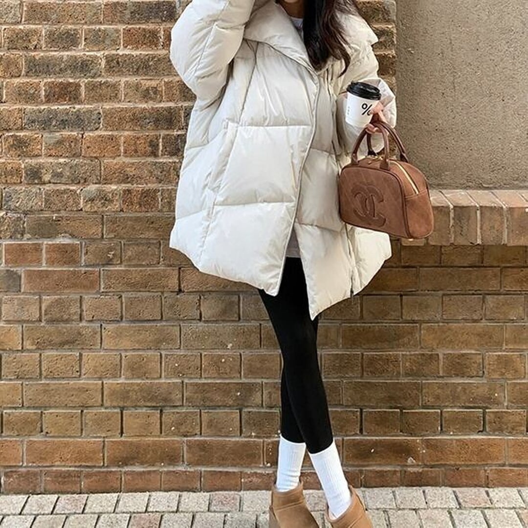 デニムやワンピースにさっと羽織るだけで、抜け感のある冬スタイルが完成します。
