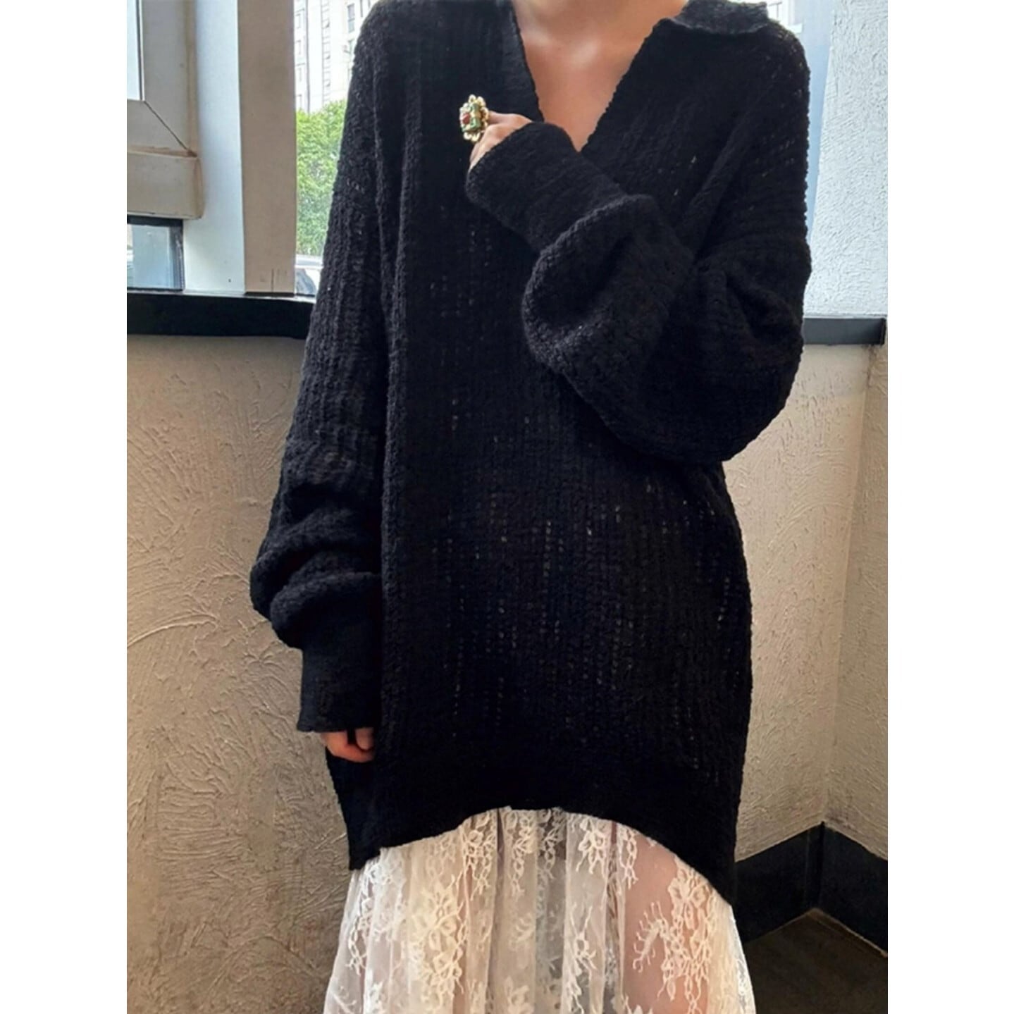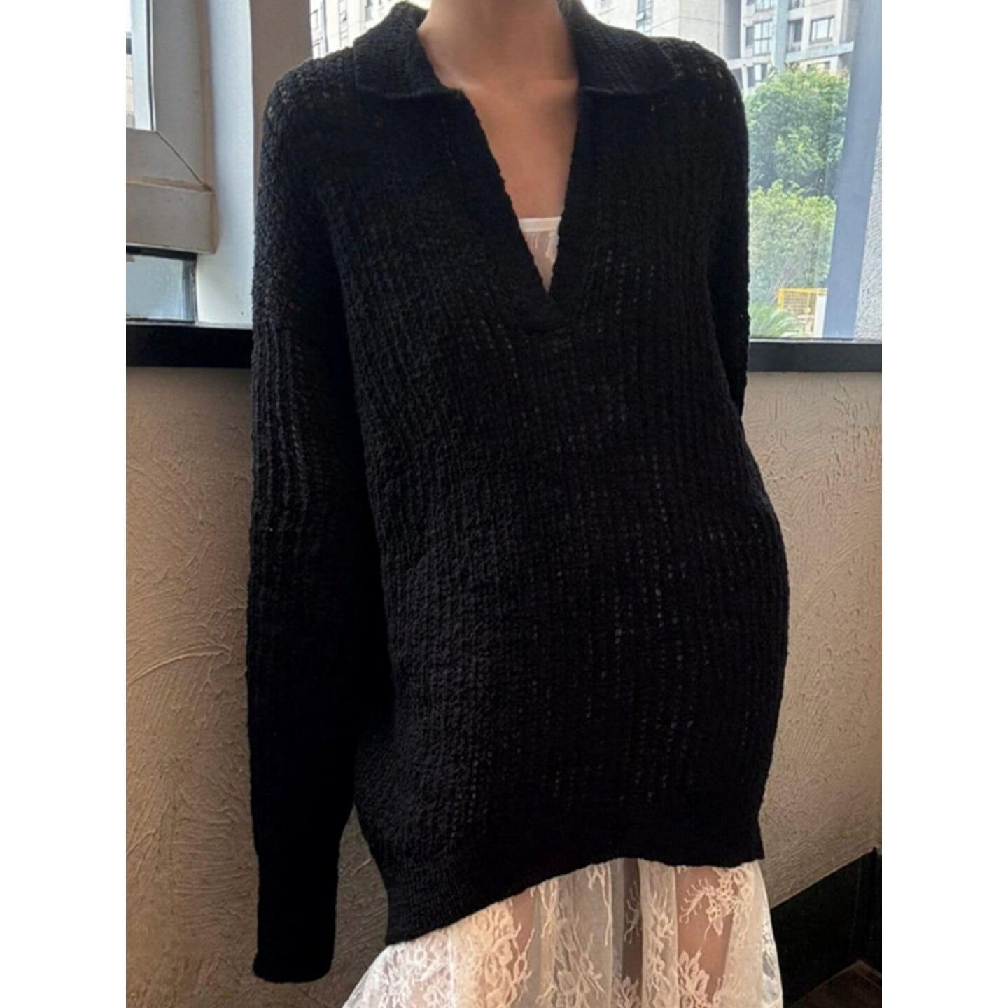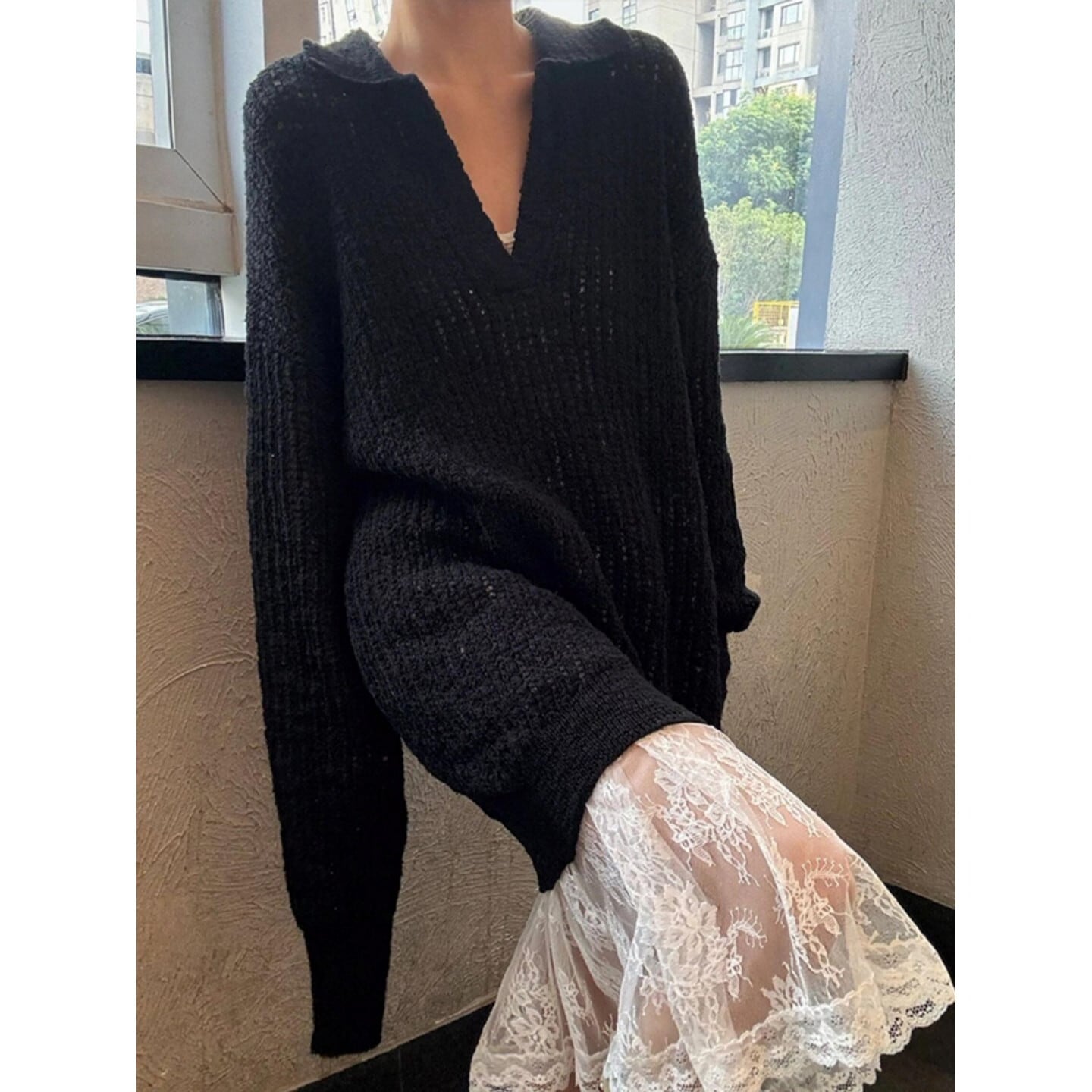深めのVネックがデコルテを美しく見せてくれる、大人のノクターンプルオーバー。