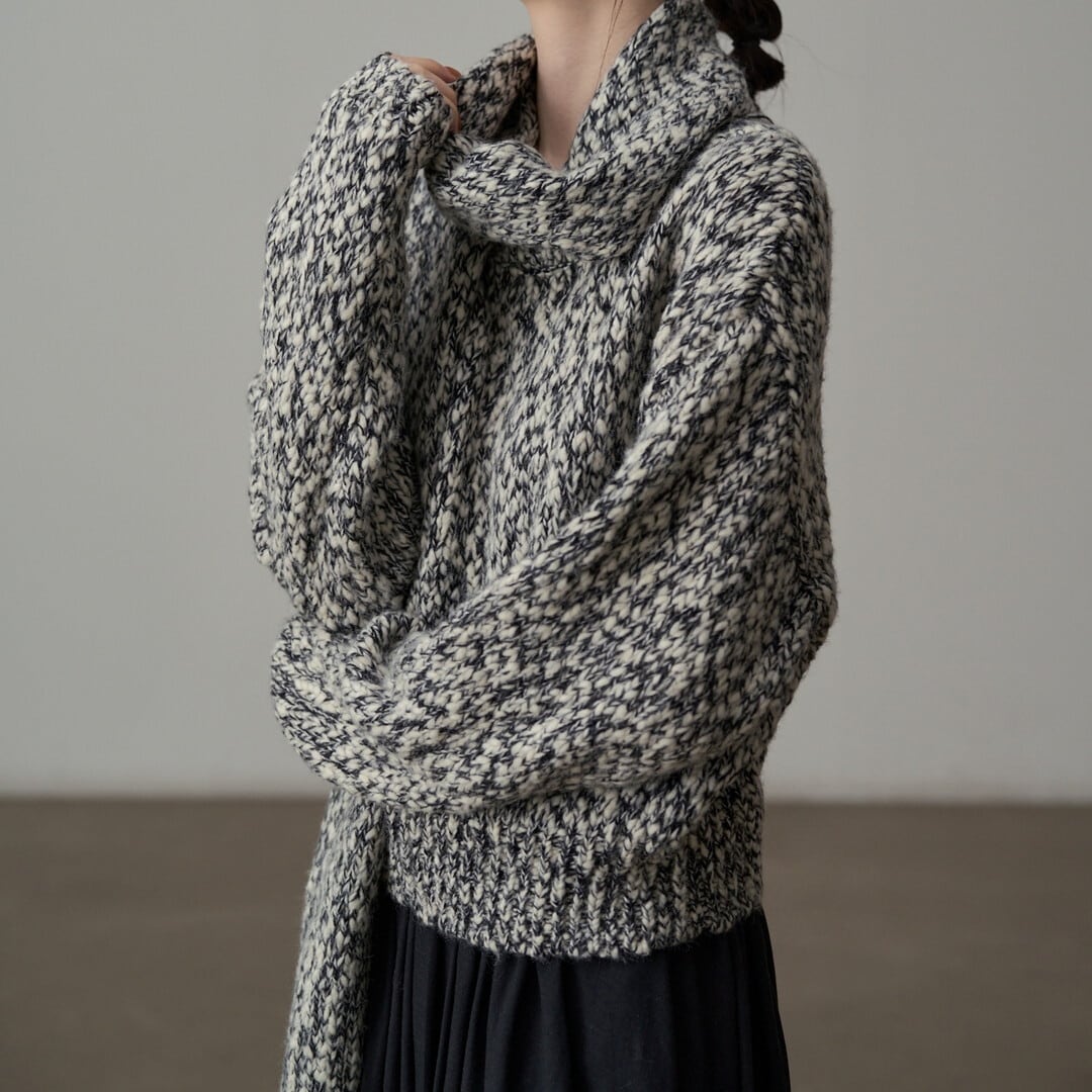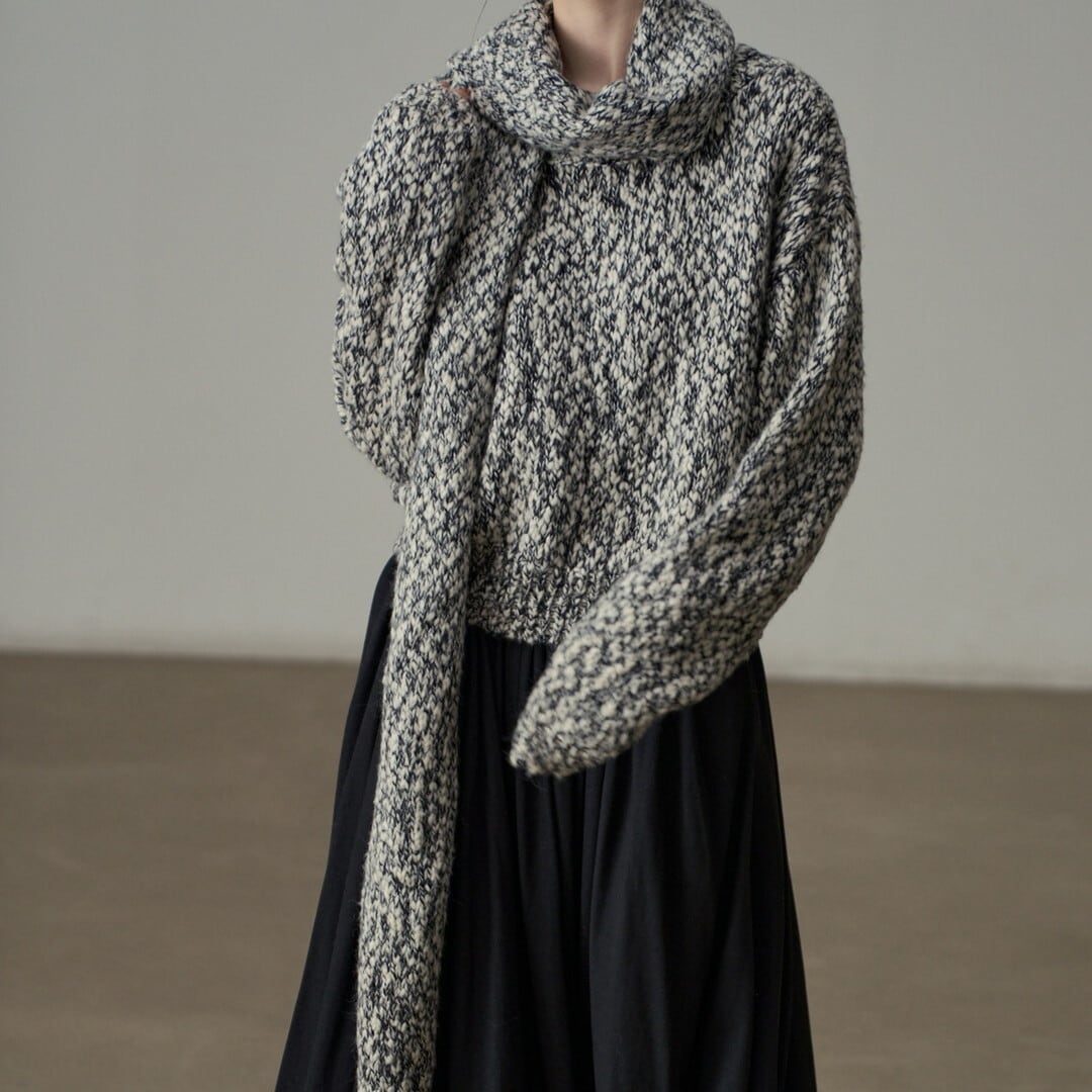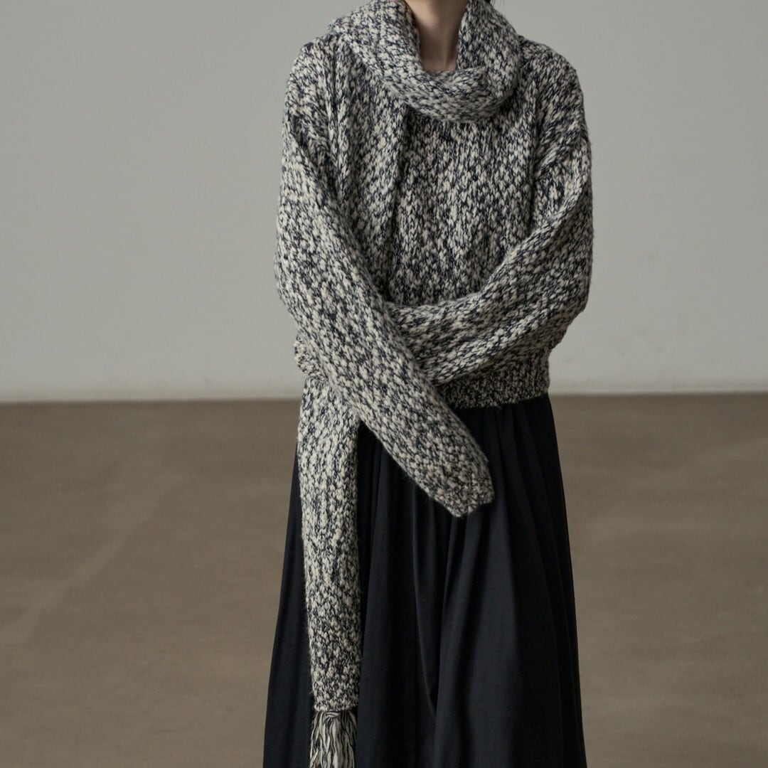 ざっくりとした編地と落ち着いた配色が上品なムードに。