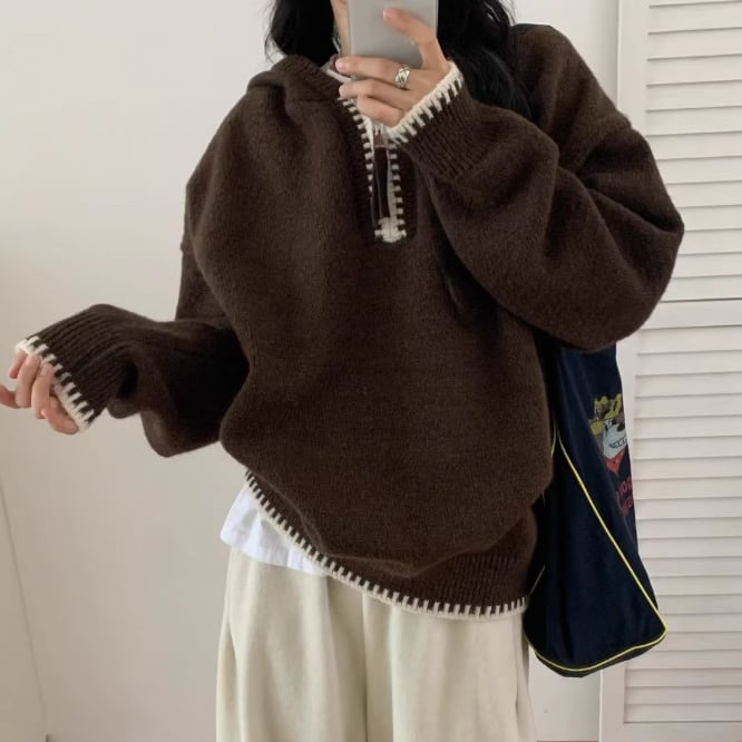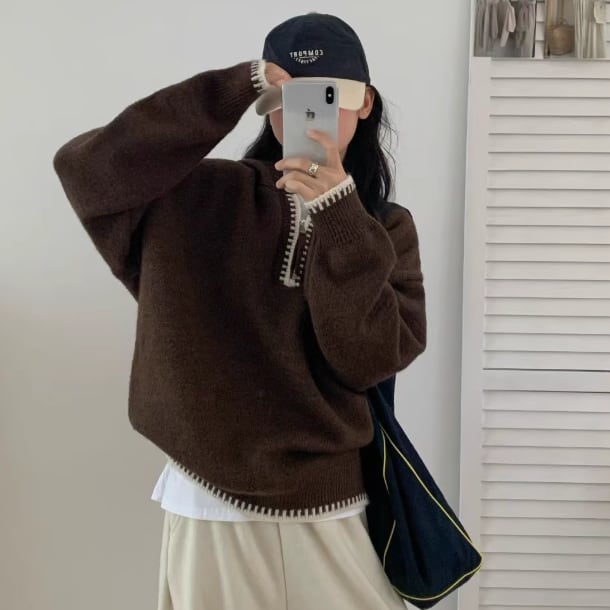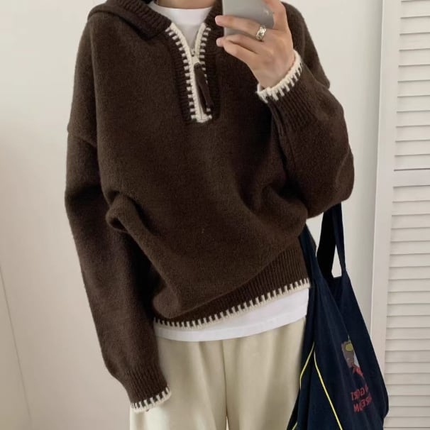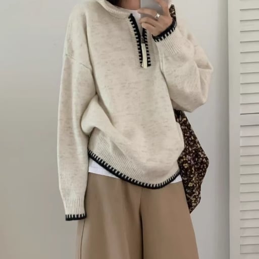さりげないバイカラーがアクセントになった、大人のためのデザインプルオーバー。