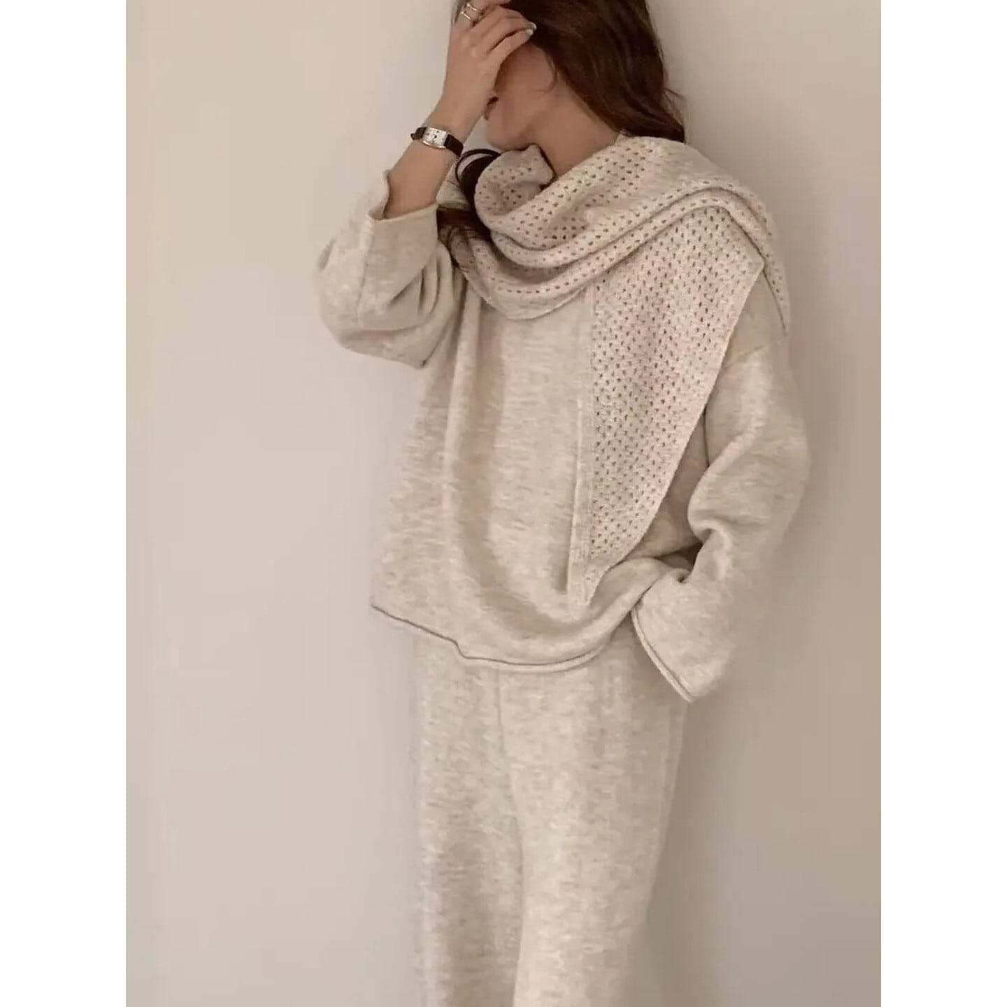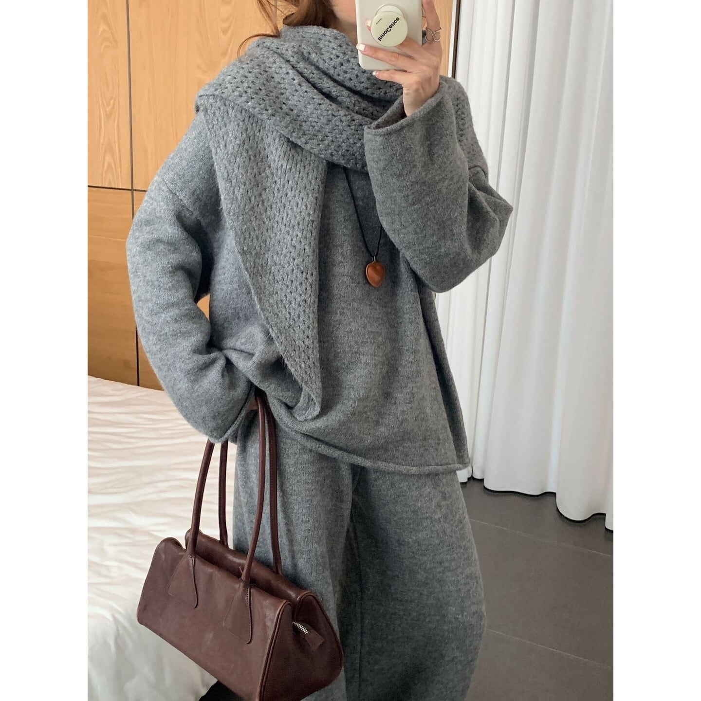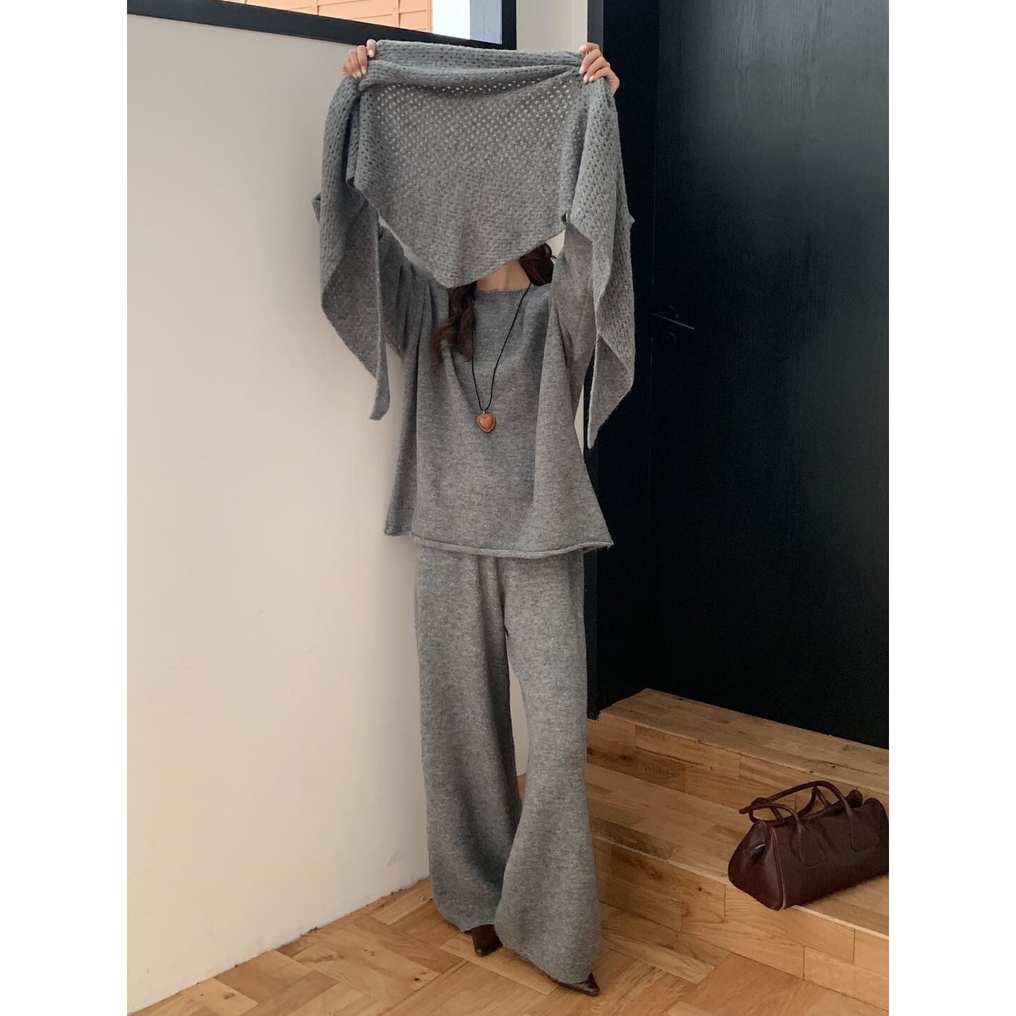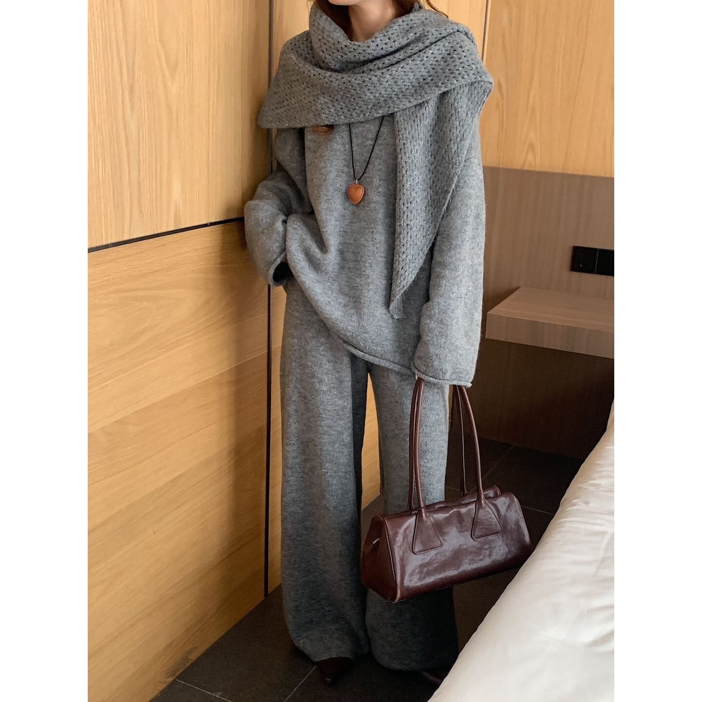 オーバーサイズ ソフトニットセットアップ ショール付き/3col M02726