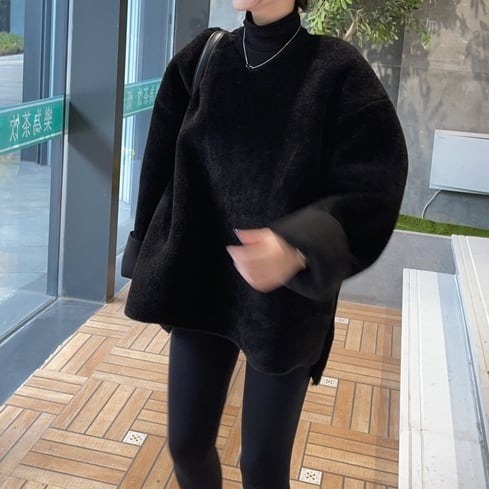 スキニーパンツやレギンスと合わせて、すっきりとした着こなしも楽しめます。