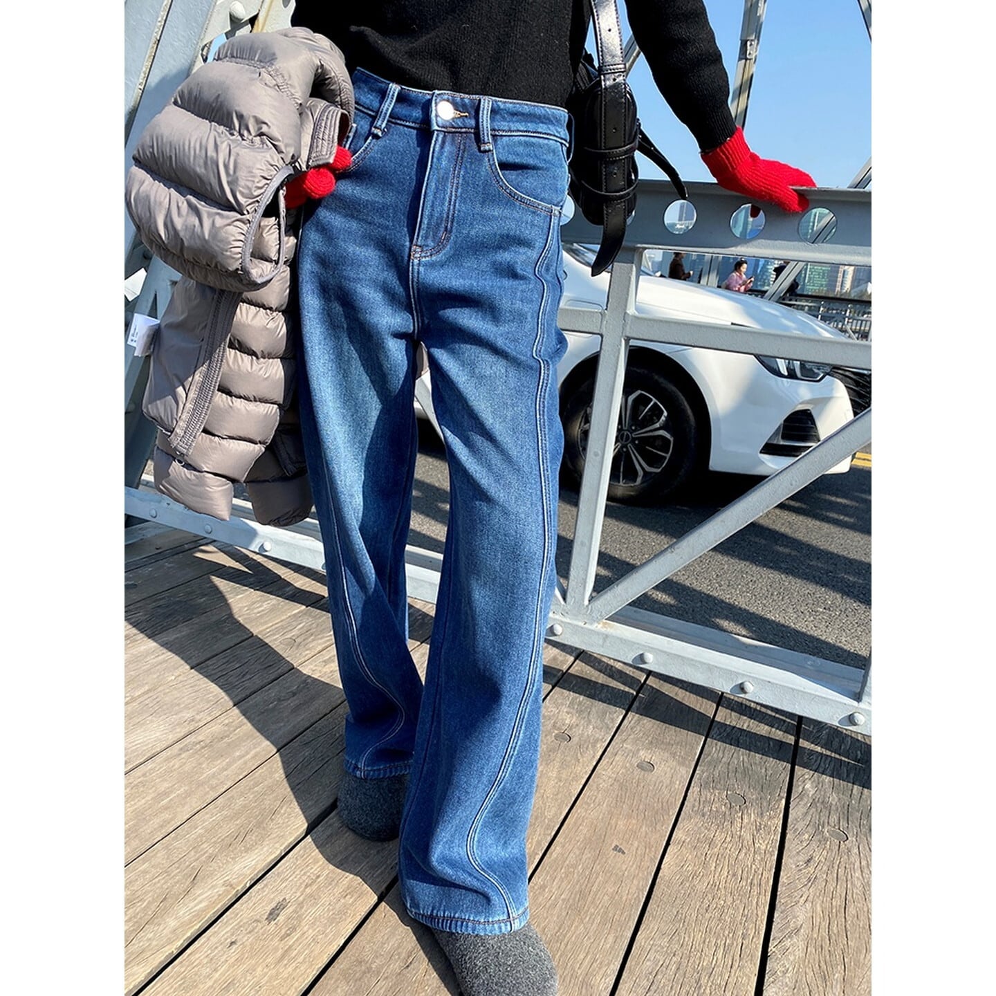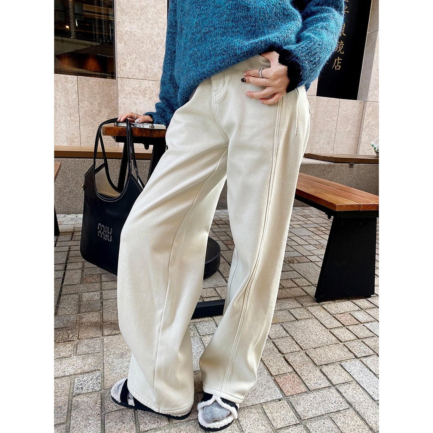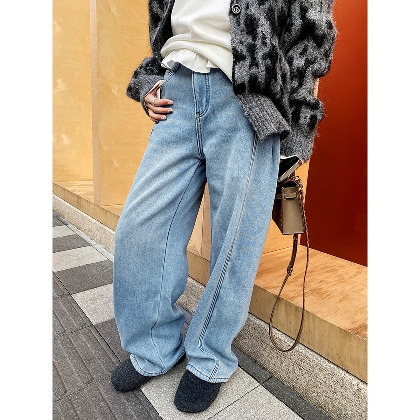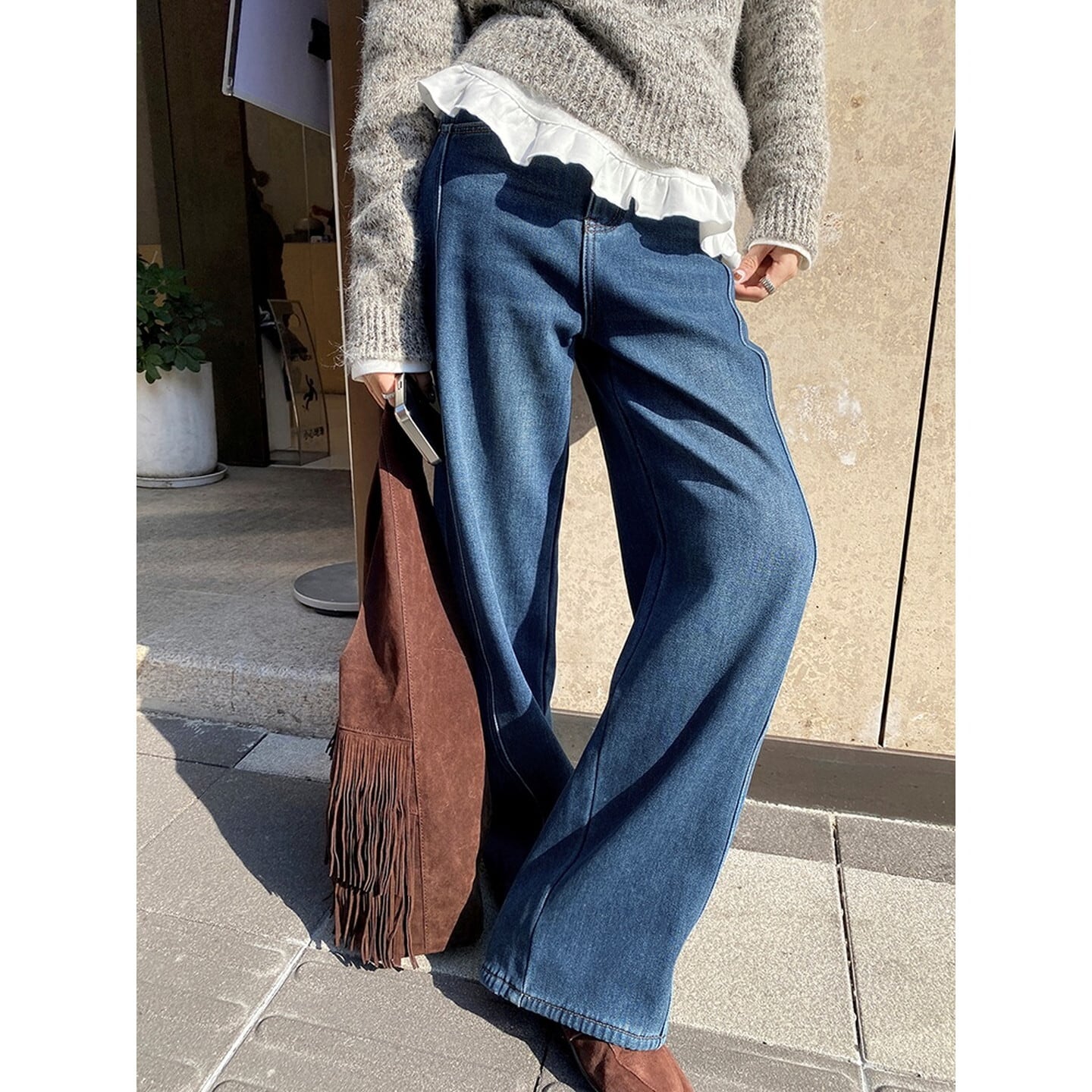 ハイウエスト裏起毛ワイド レッグ デニム/3col M02798