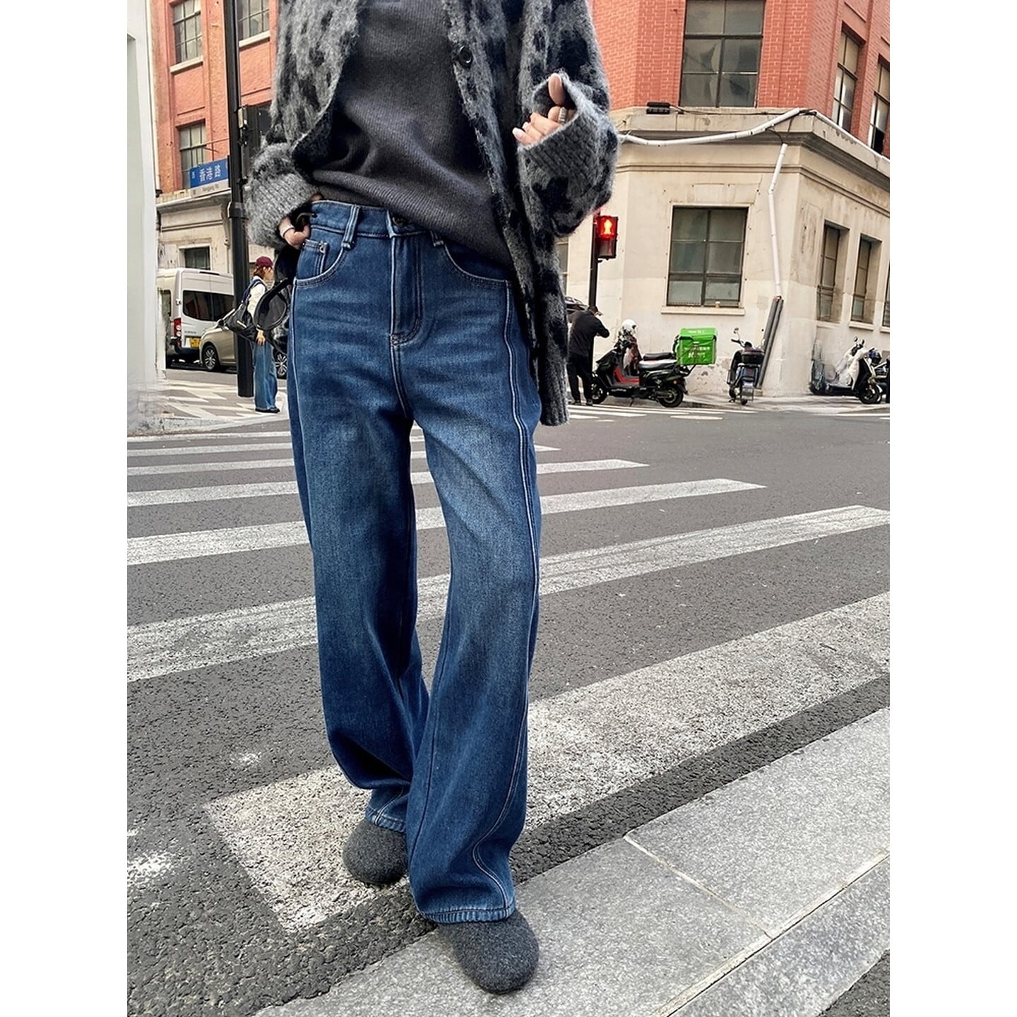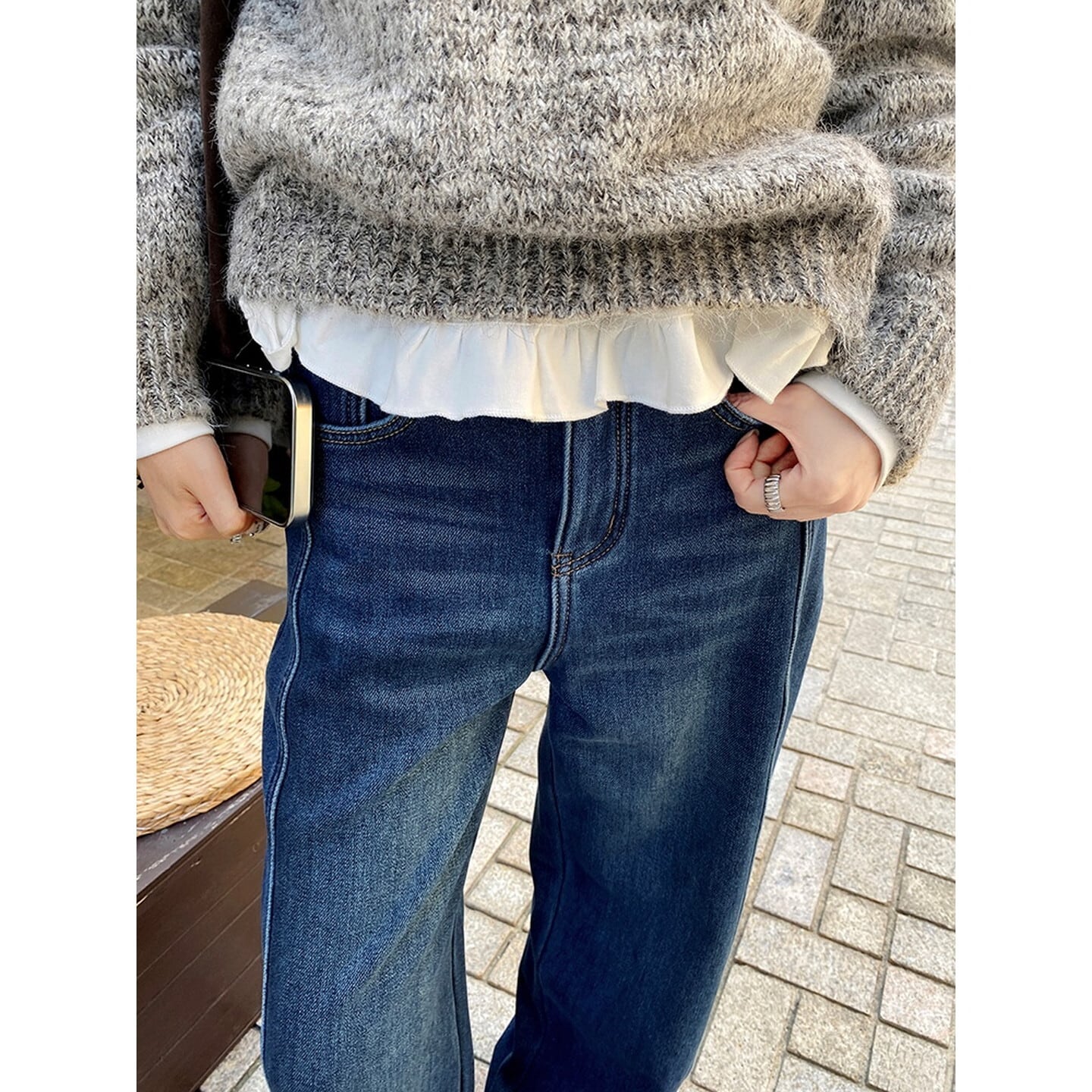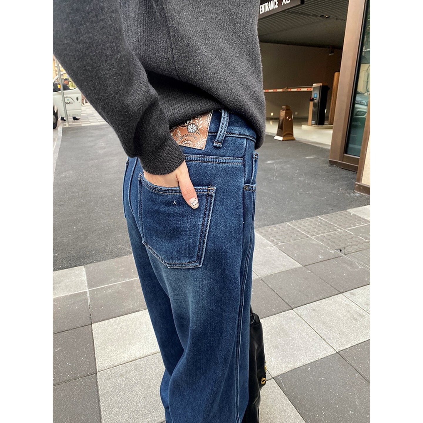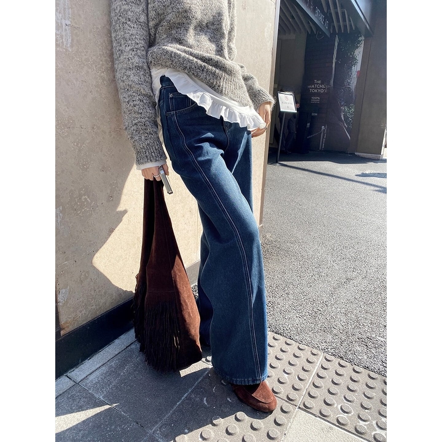 ハイウエスト裏起毛ワイド レッグ デニム/3col M02798