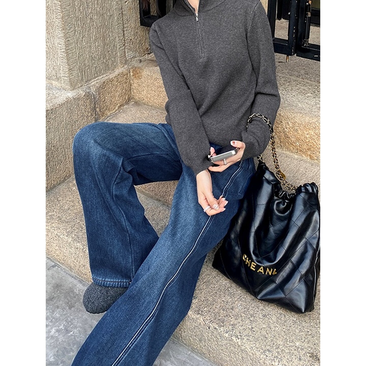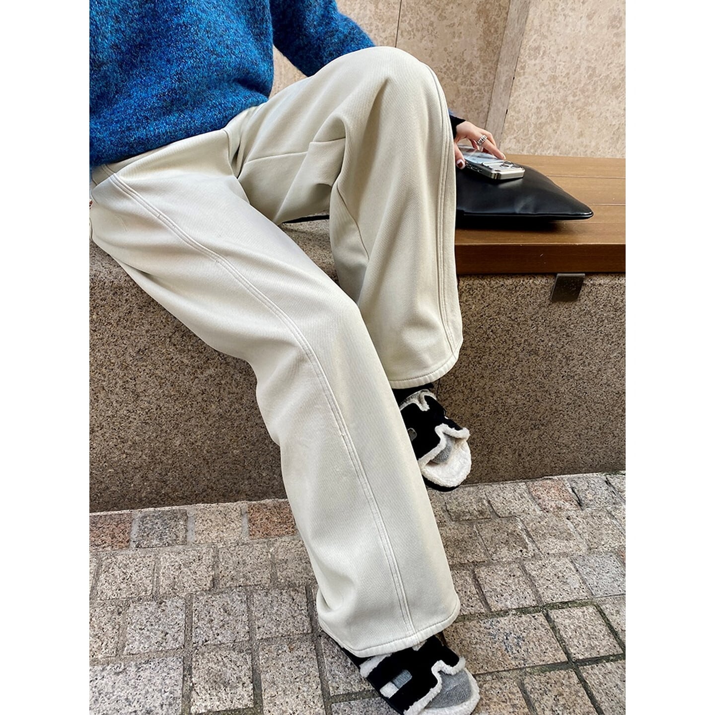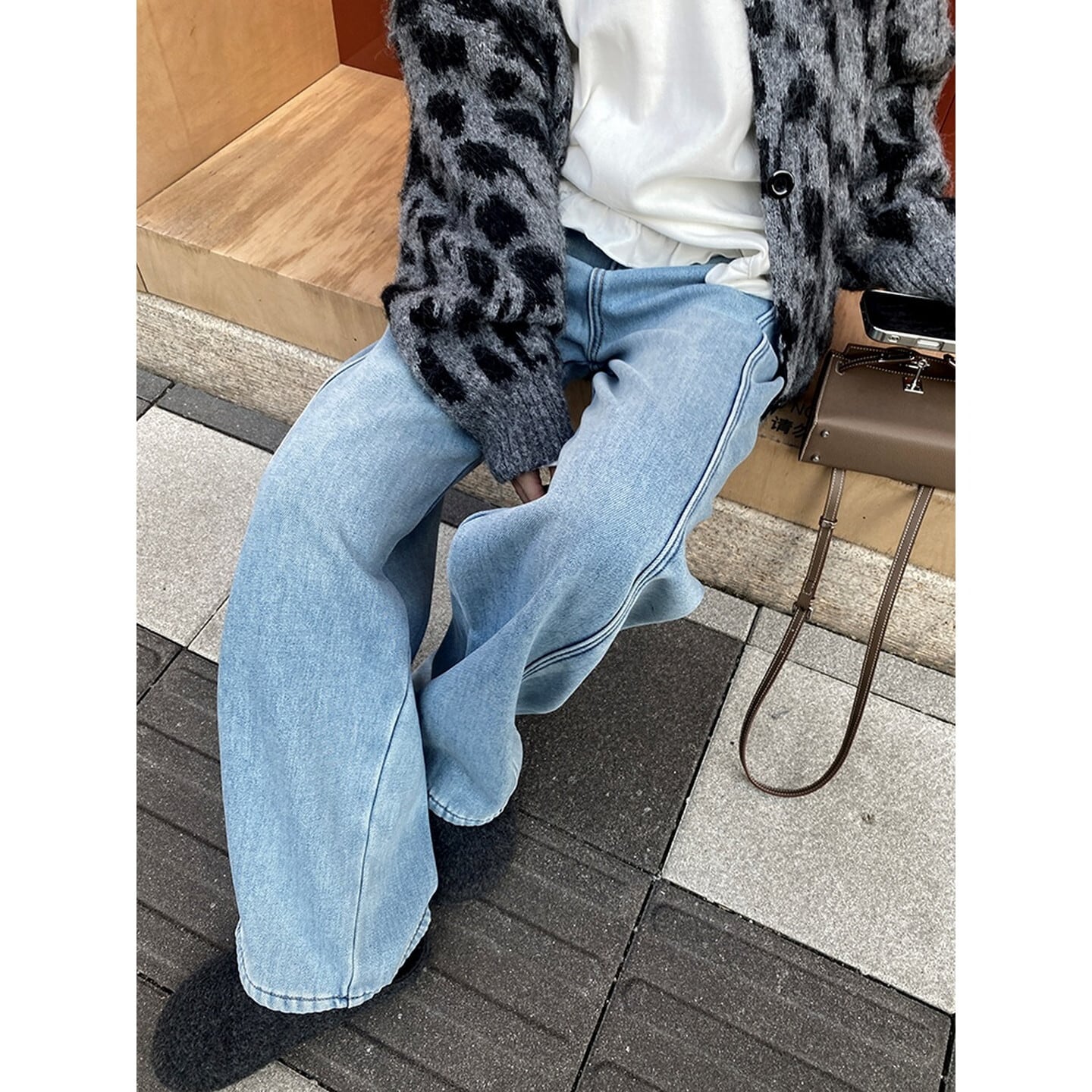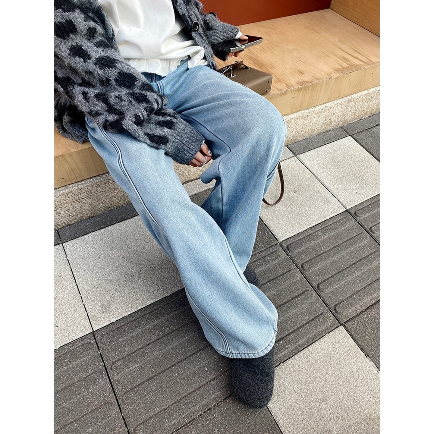 ハイウエスト裏起毛ワイド レッグ デニム/3col M02798