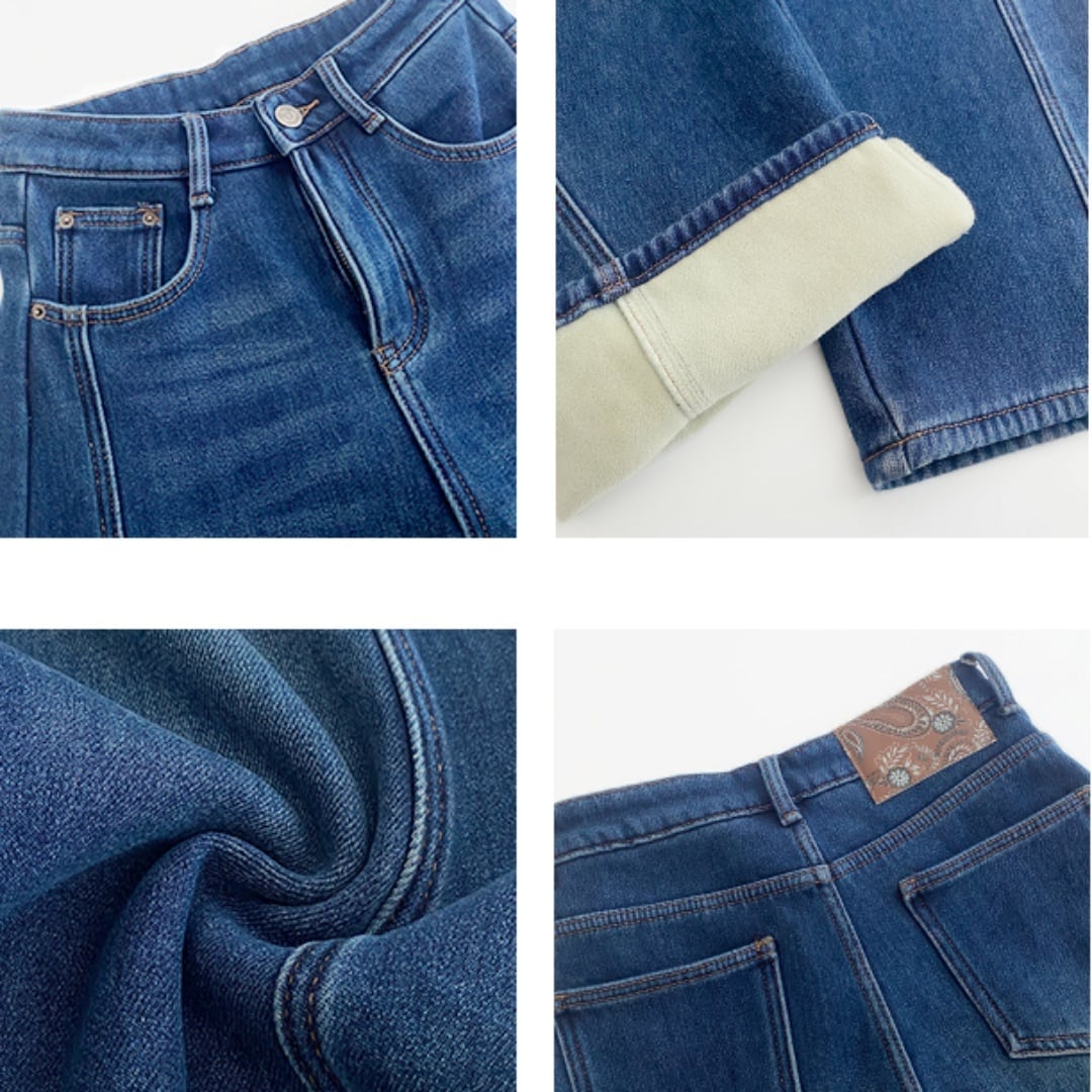 あたたかい裏起毛素材で季節感たっぷりの、ハイウエストワイドデニム。