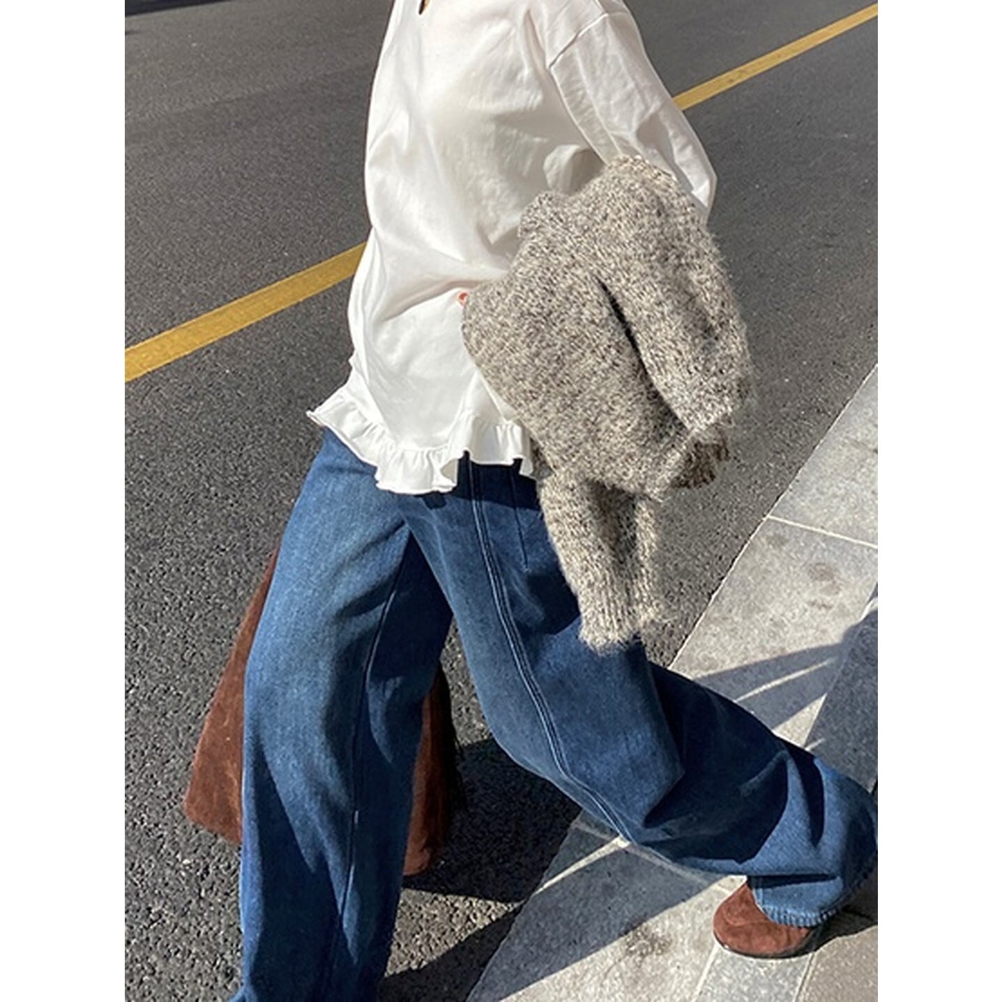 ゆとりのあるシルエットながらも、すとんと落ちるラインで脚長効果◎