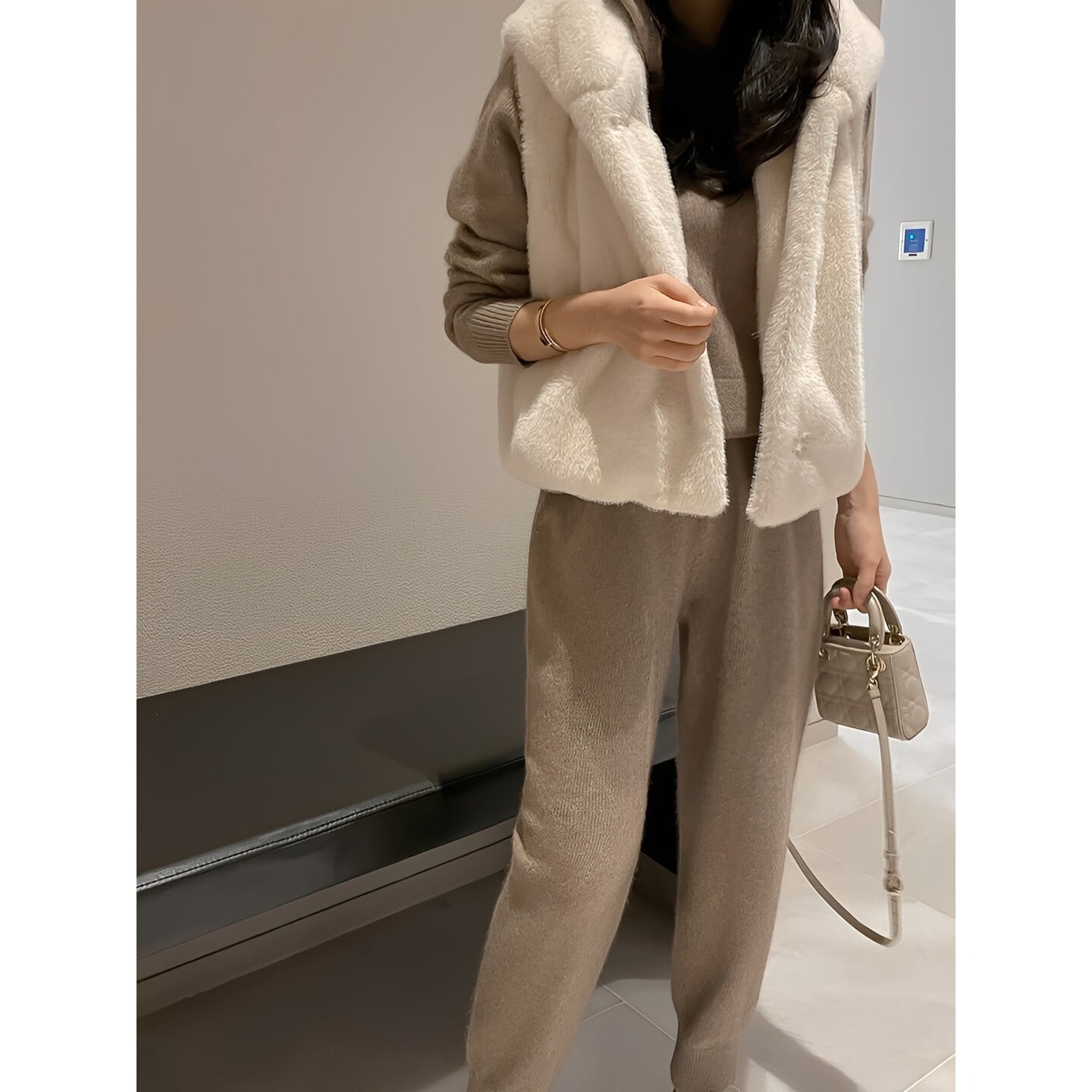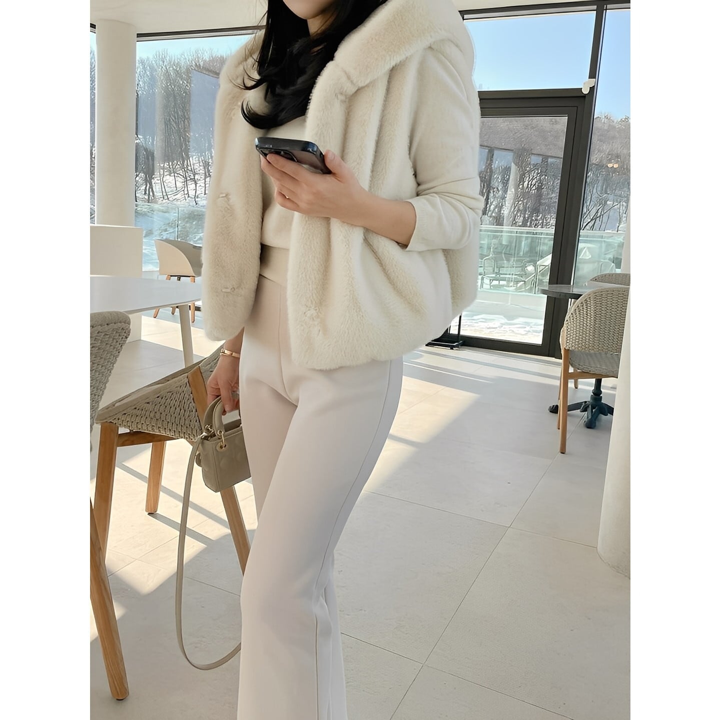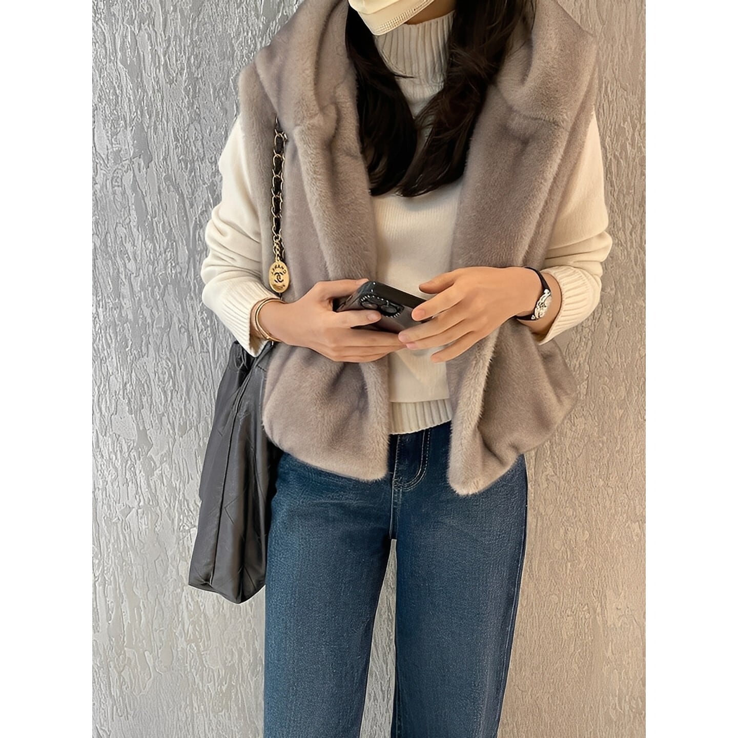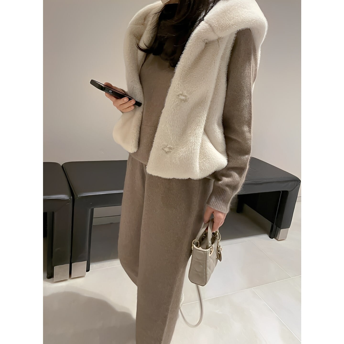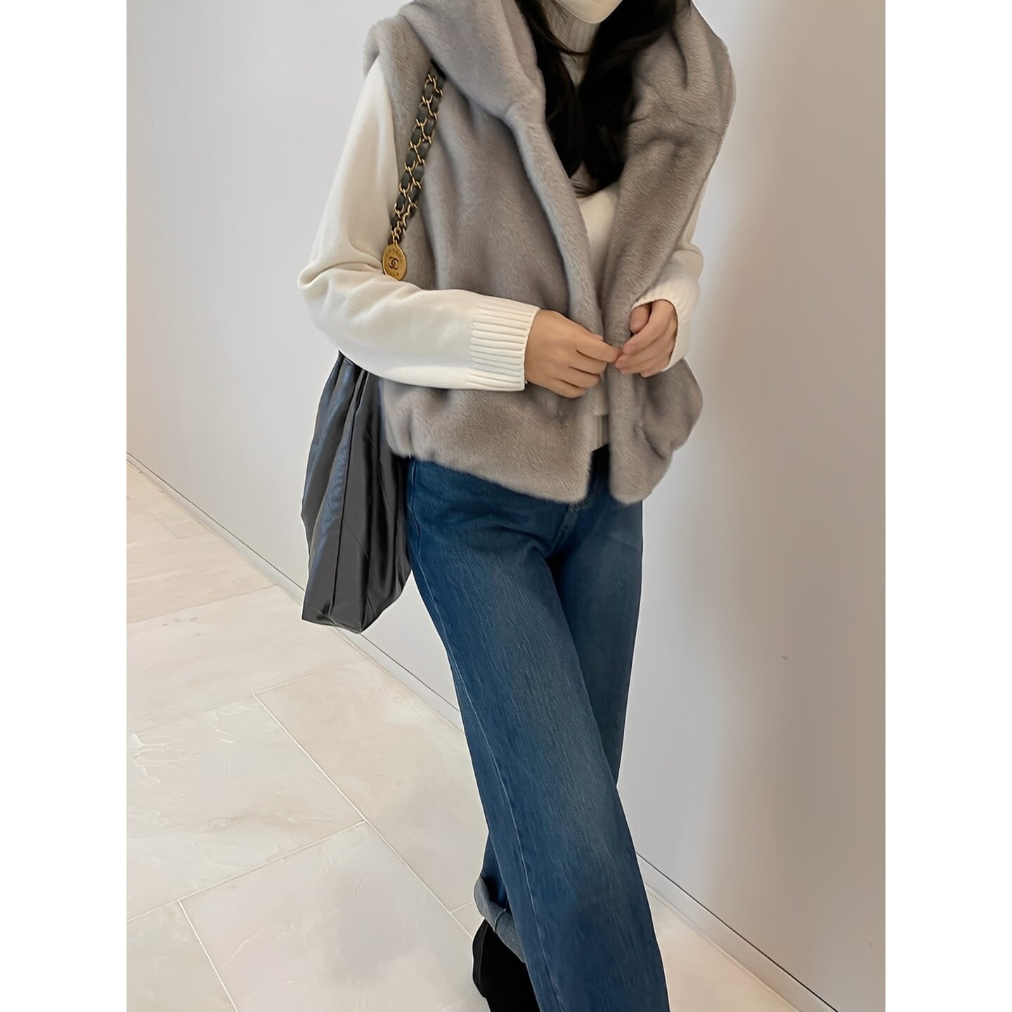 ニットやワンピースに重ねて、冬のレイヤードスタイルを楽しめます。