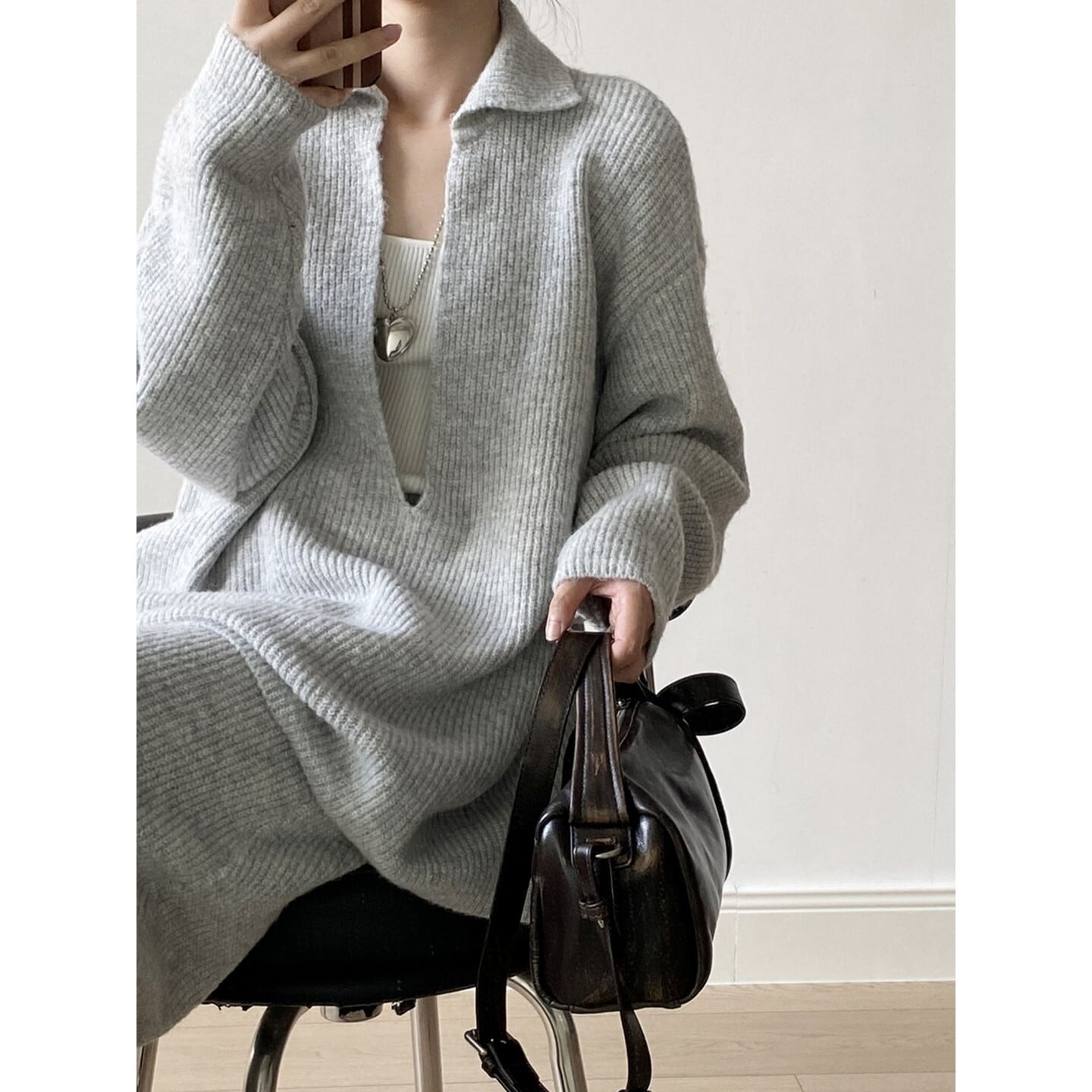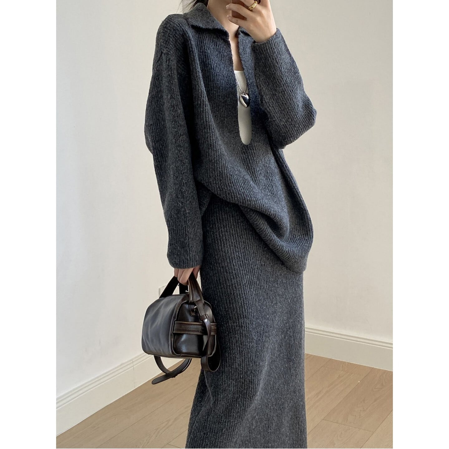 トップスは抜け感のあるシルエット、スカートはストンと落ちる上品なライン◎