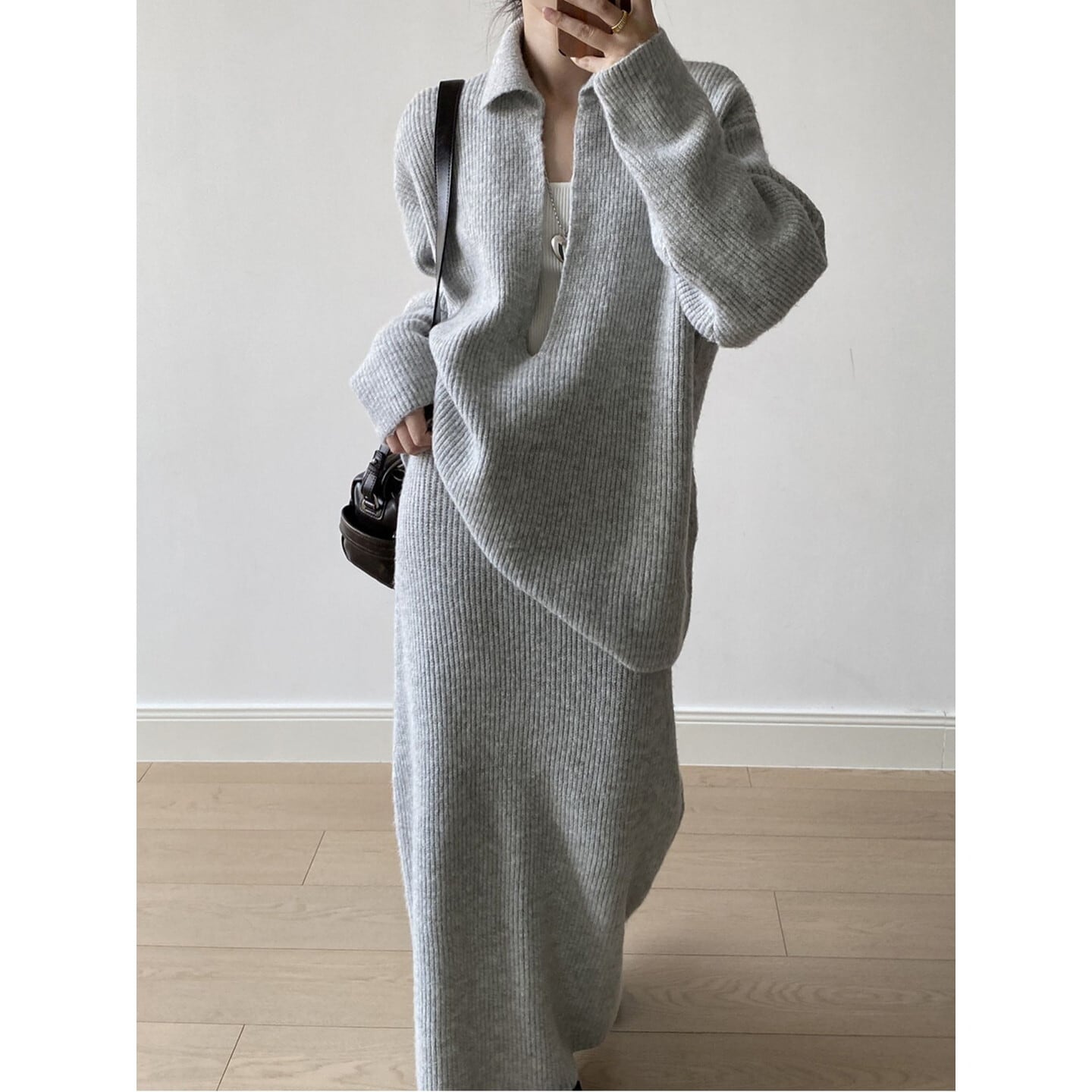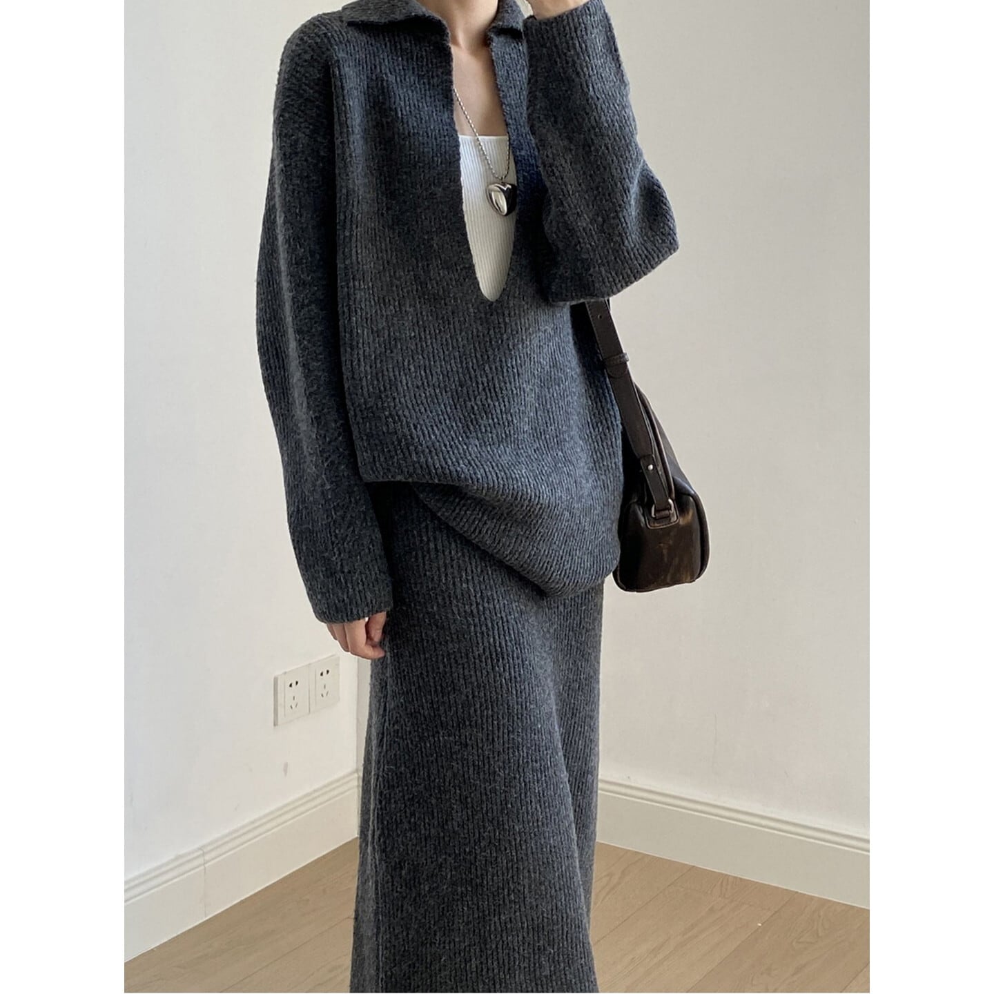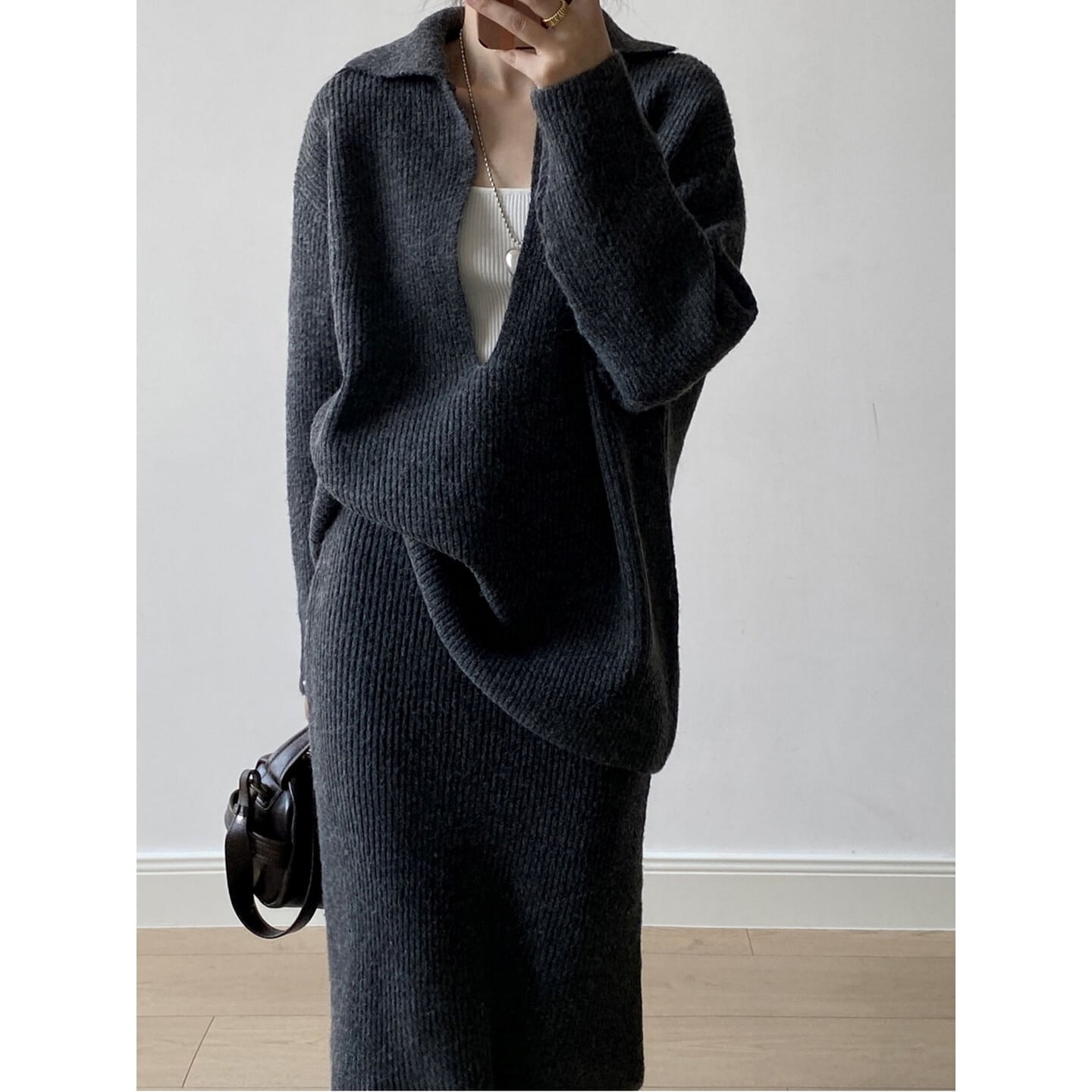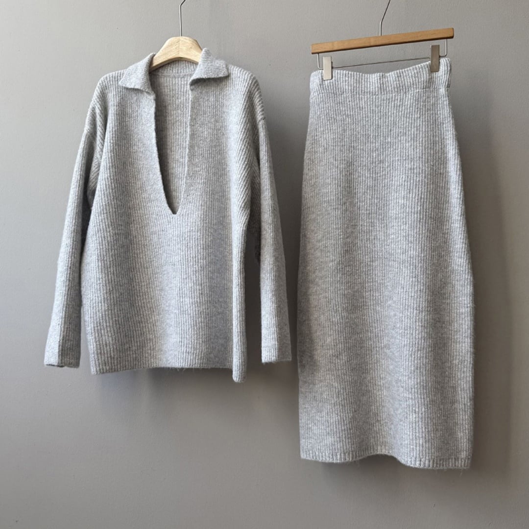 深Vトップス&ロングスカート セットアップ/2col M02842