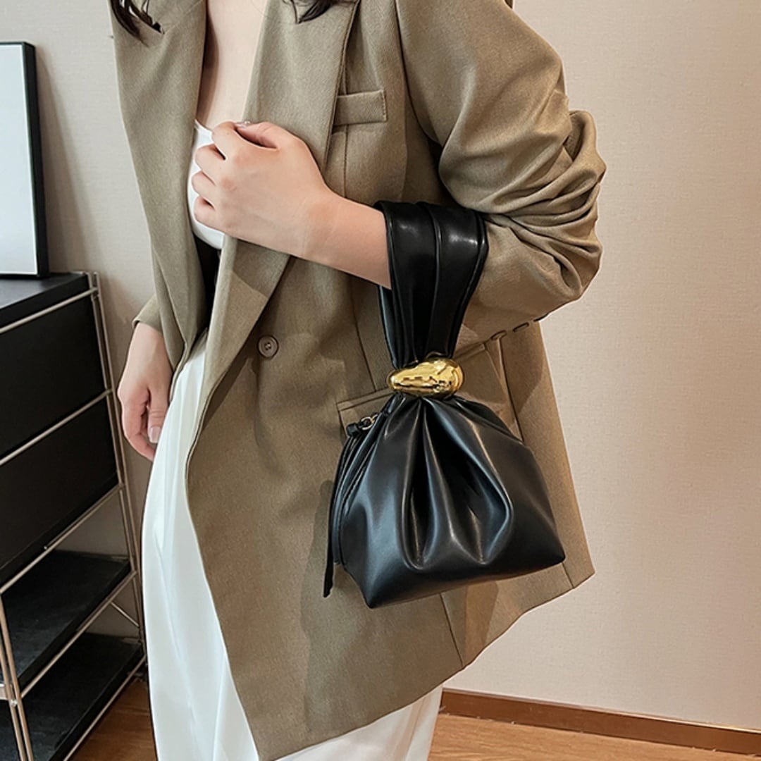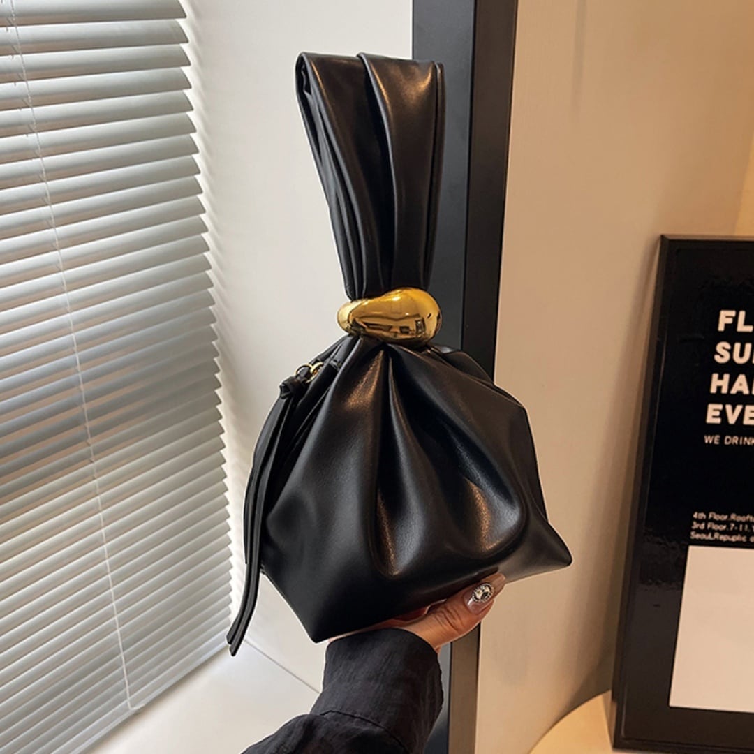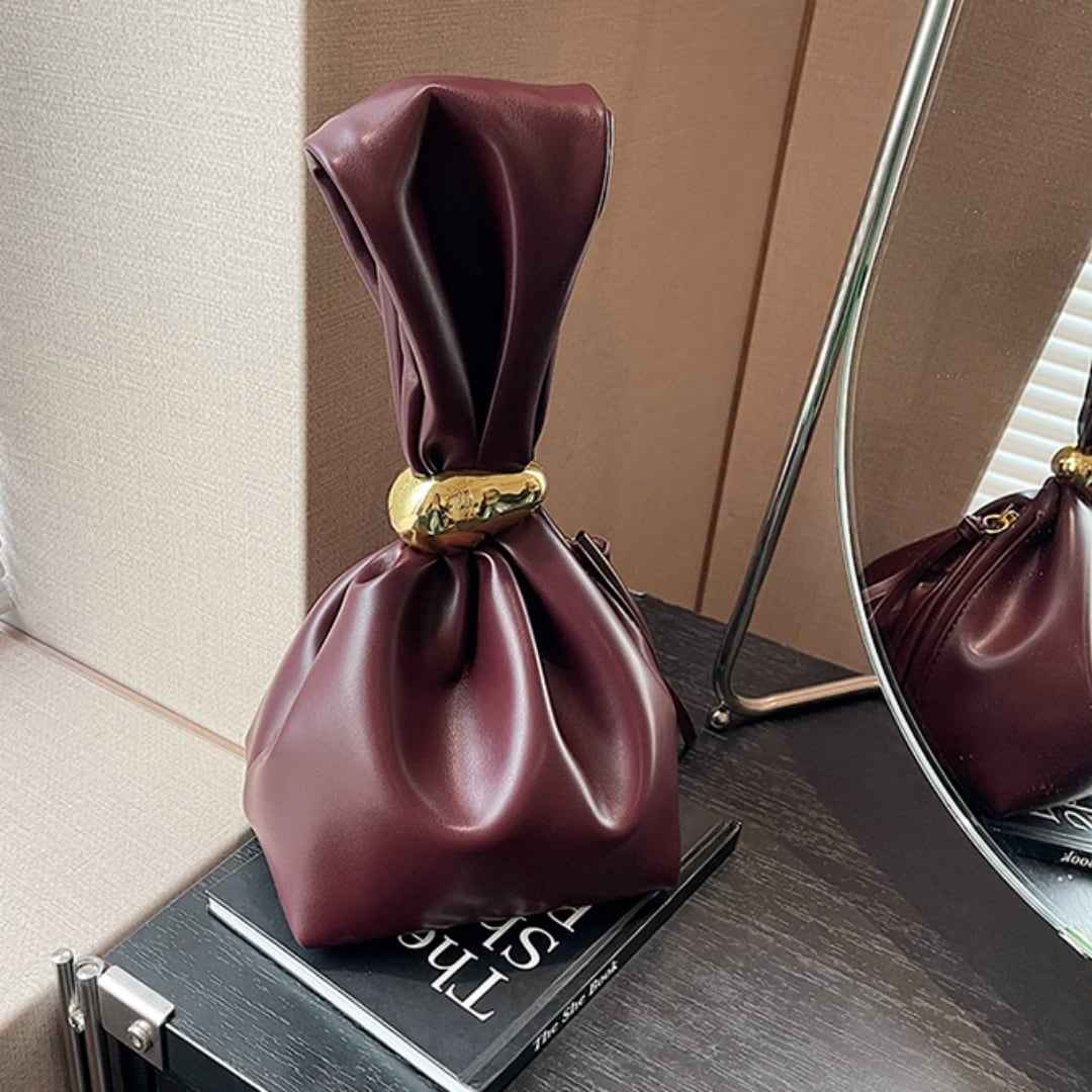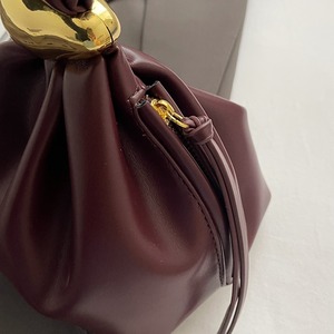 上品なドレープデザインにメタルパーツが映える、大人のミニバッグ。