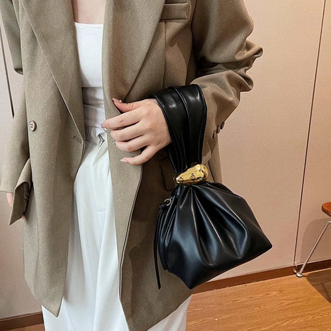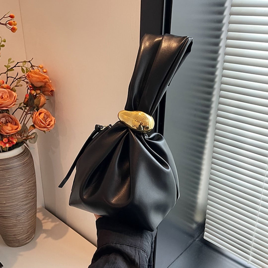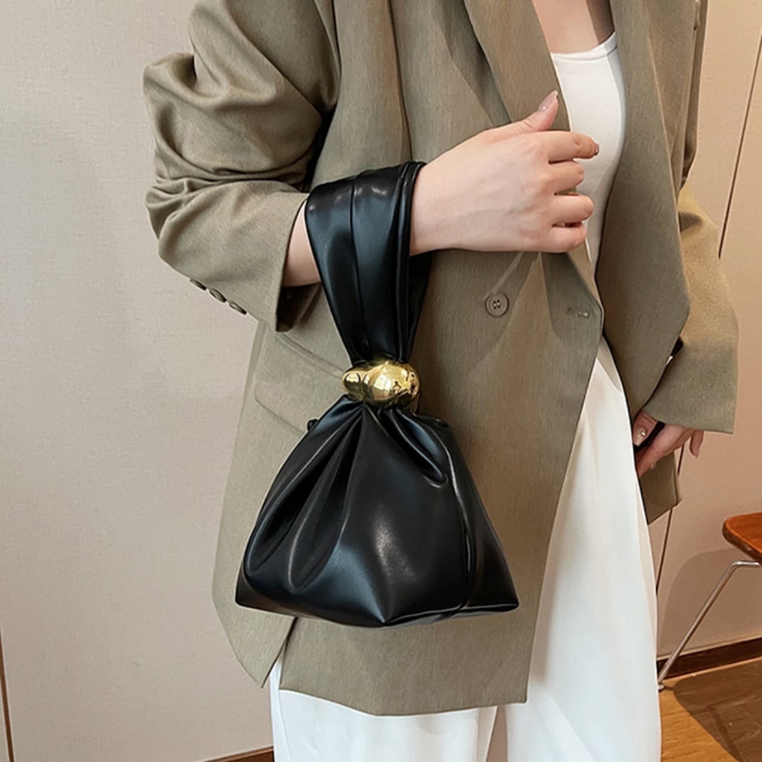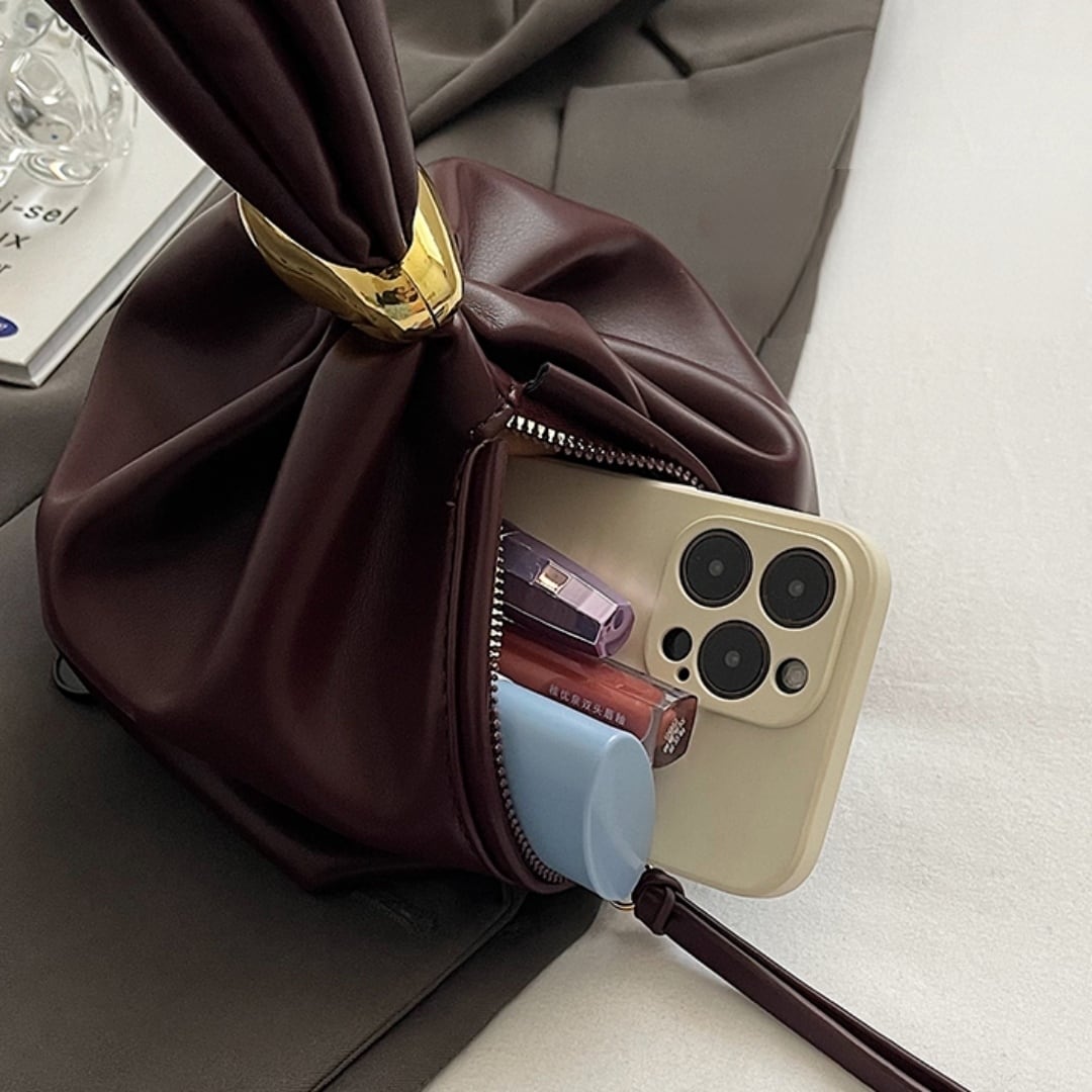 上品なドレープデザインにメタルパーツが映える、大人のミニバッグ。