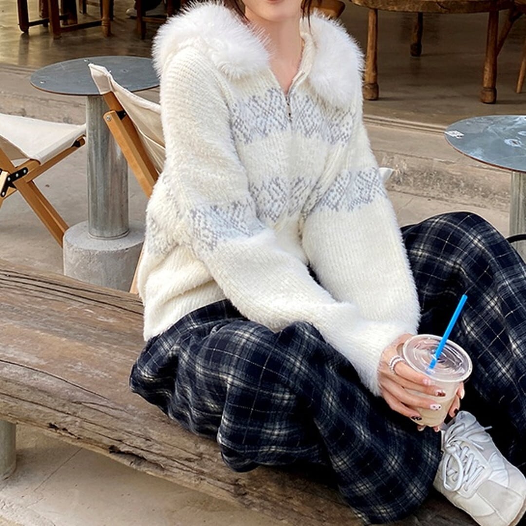 季節感あふれるデザインが魅力の、ジップアップニット。