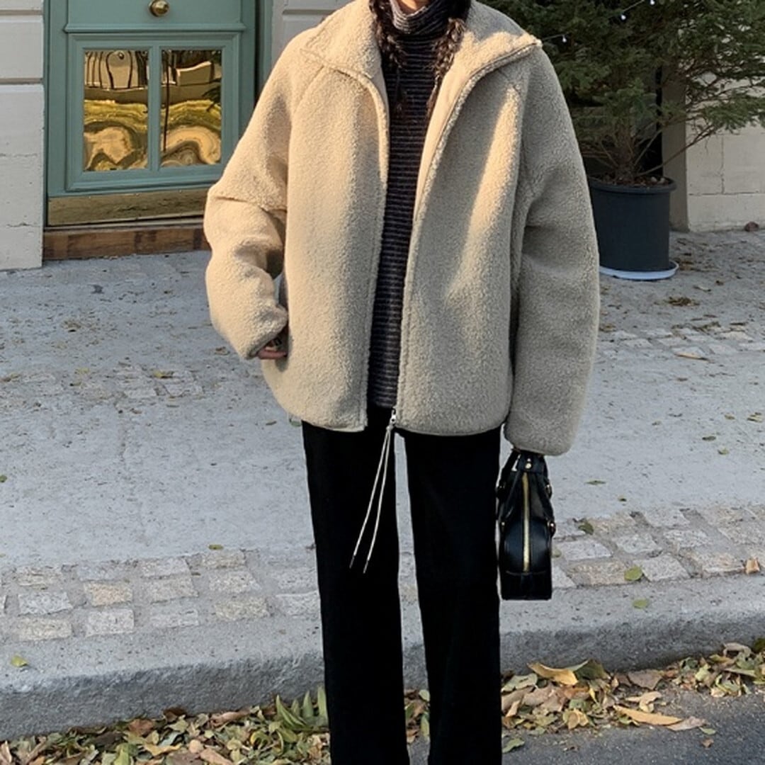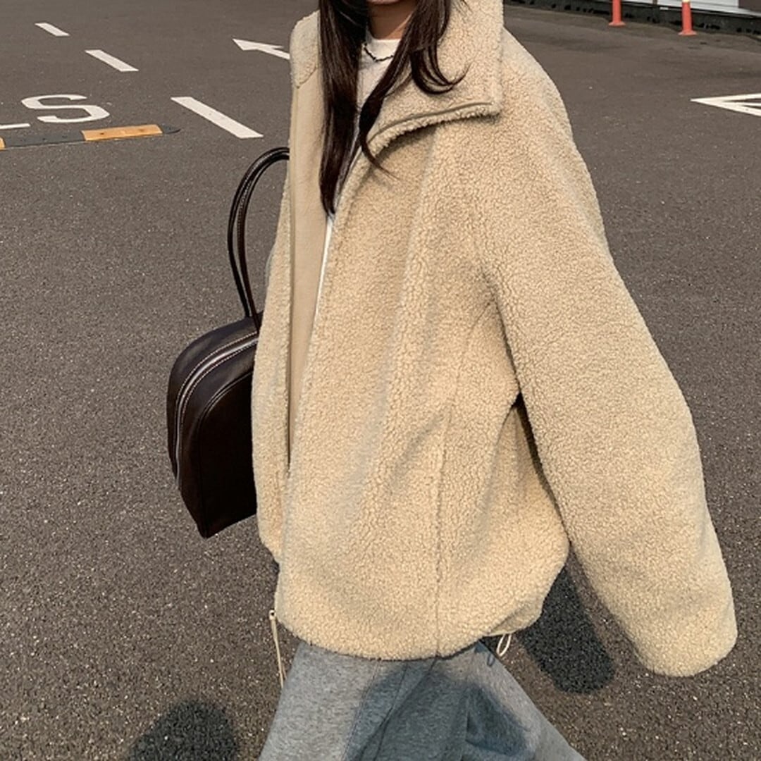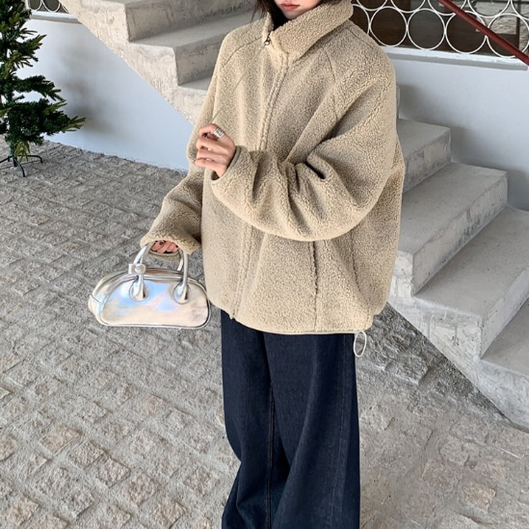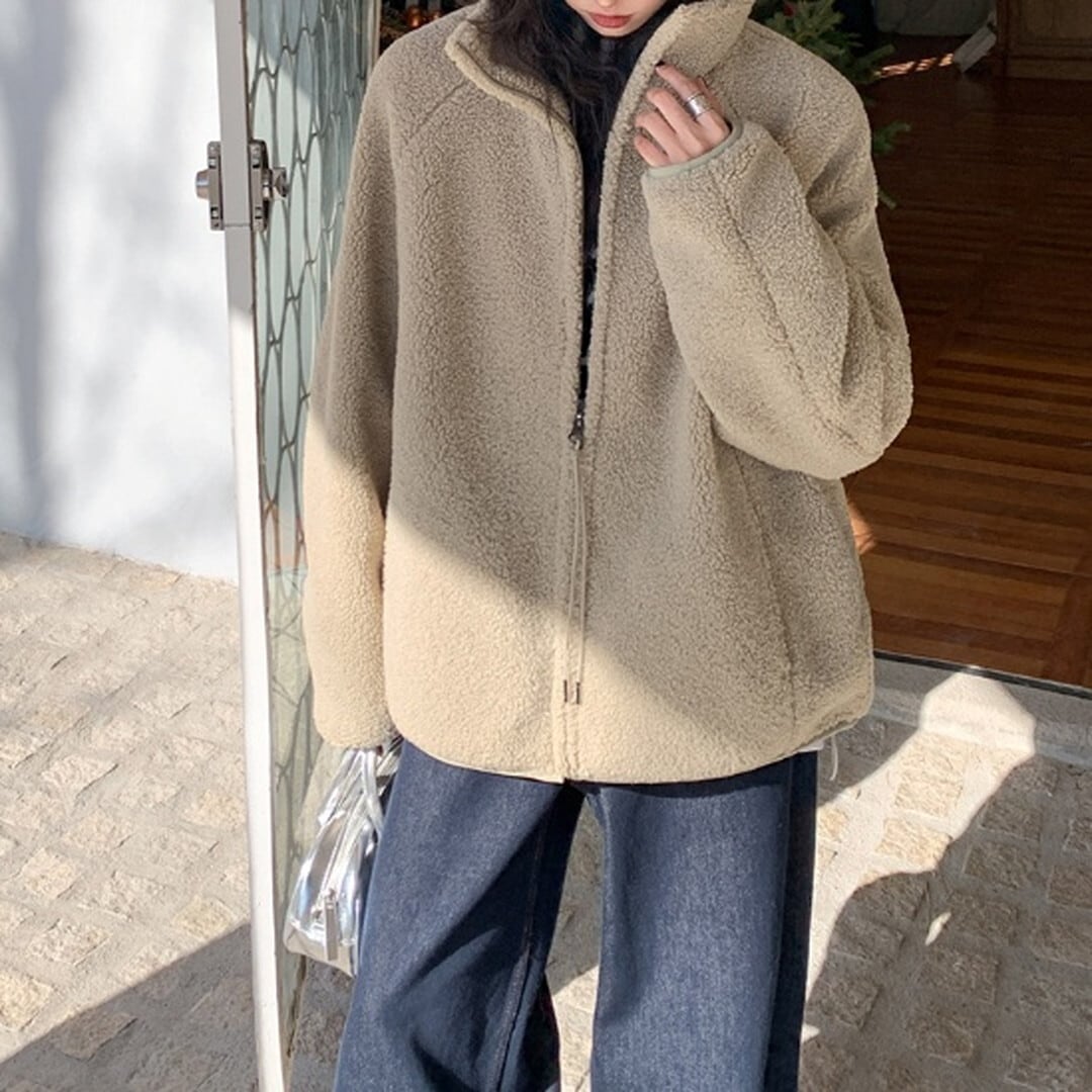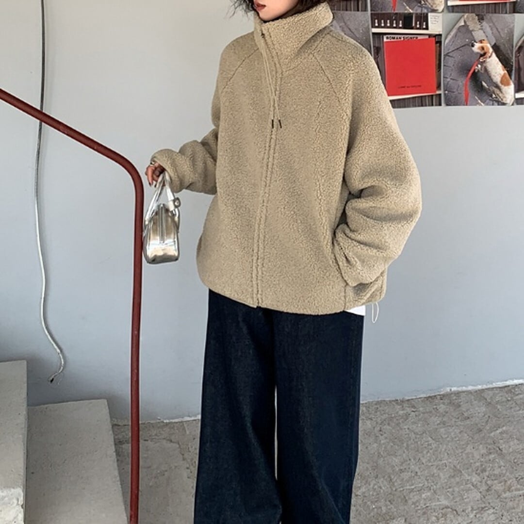 程よいボリューム感が魅力の、スタンドカラーボアジャケット。