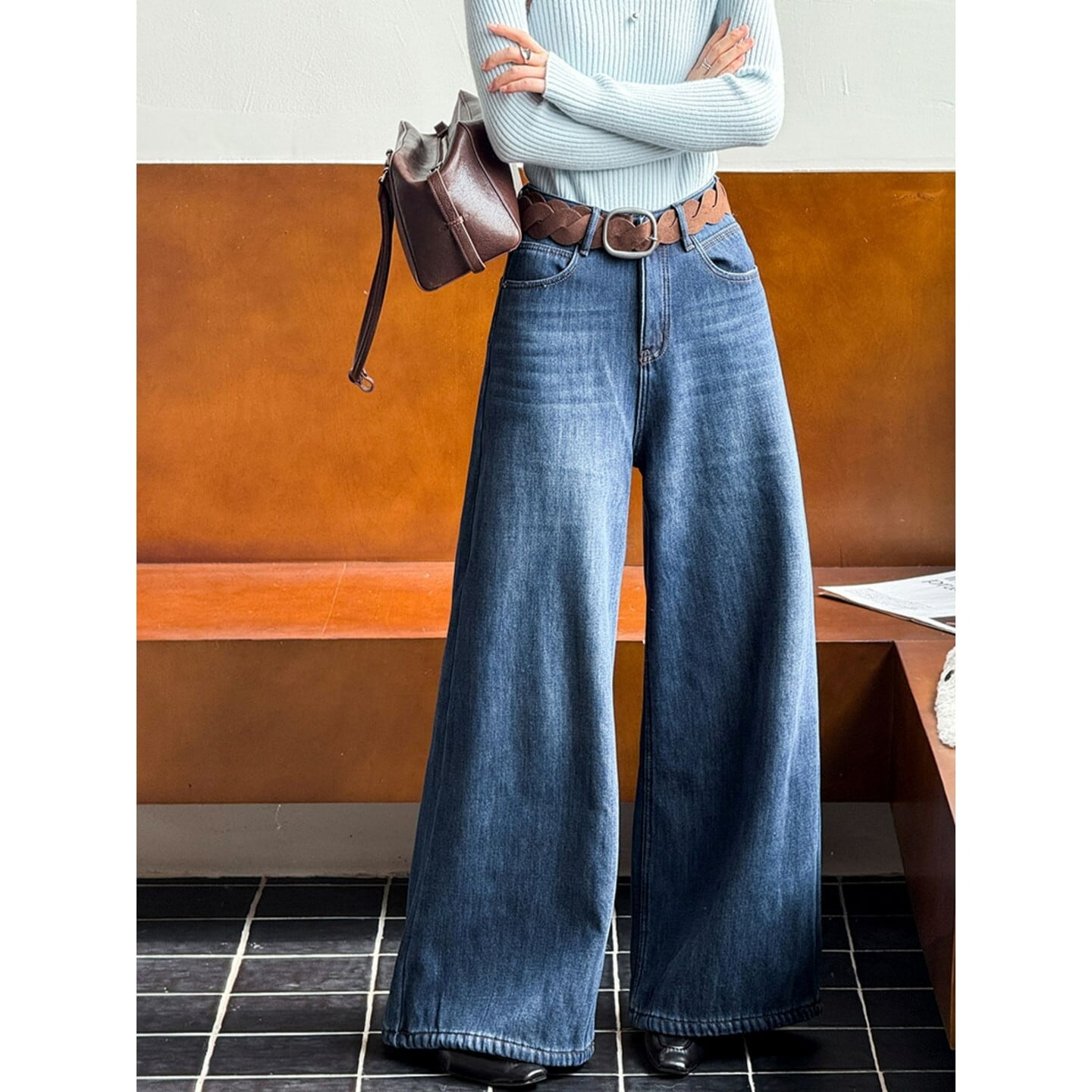 ベルト付き あったかワイド美脚シルエットパンツ M02844