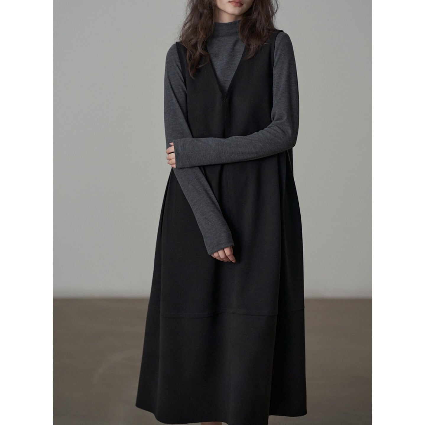 カットオフレイヤードスタイルVネックワンピース/2col M02894
