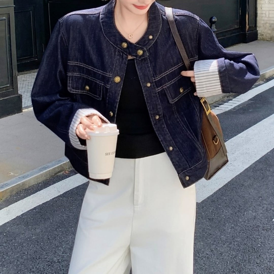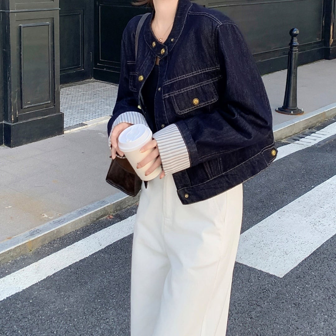 ノーカラースマートステッチデニムジャケット M02757