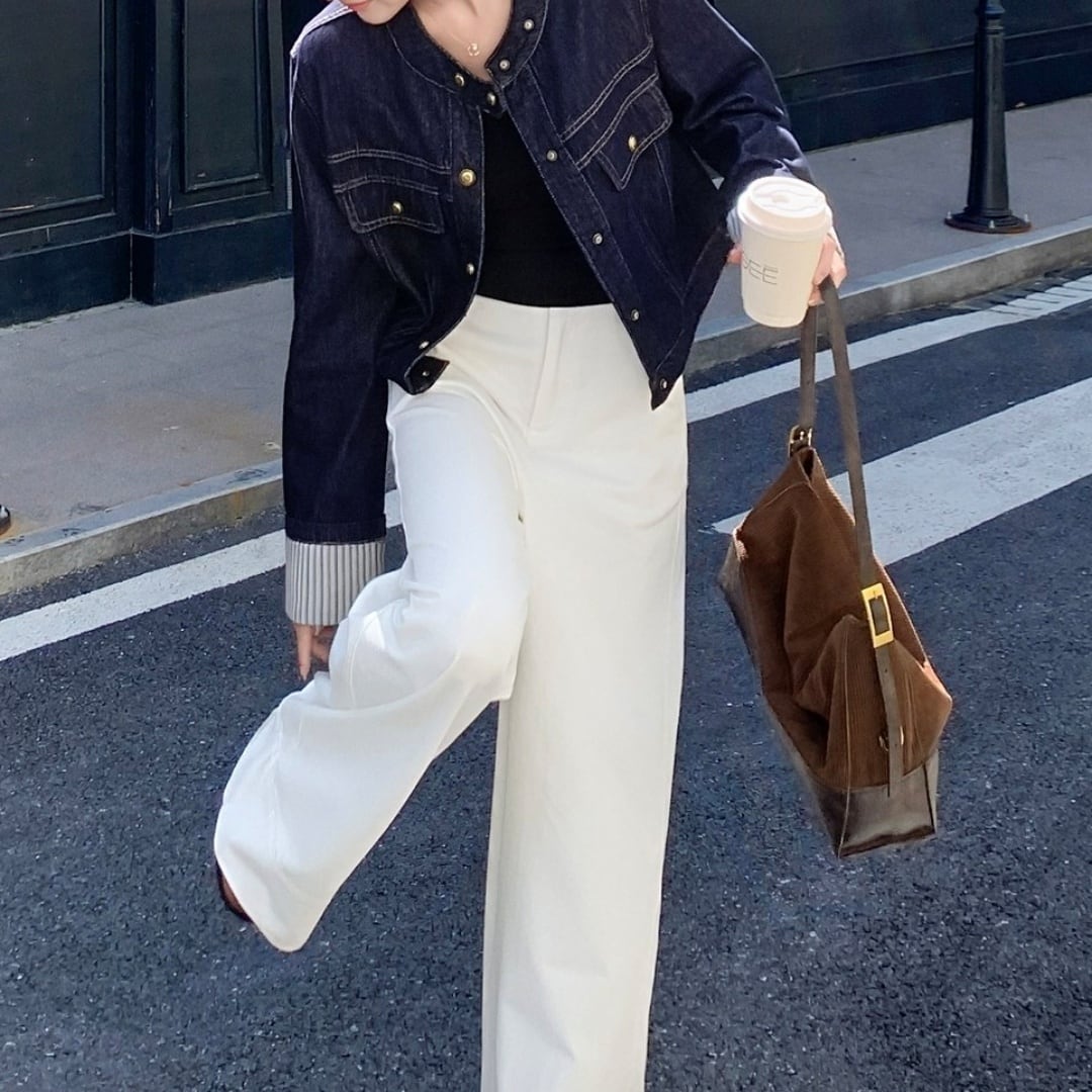 スマートなシルエットで、カジュアルすぎず上品な印象に。