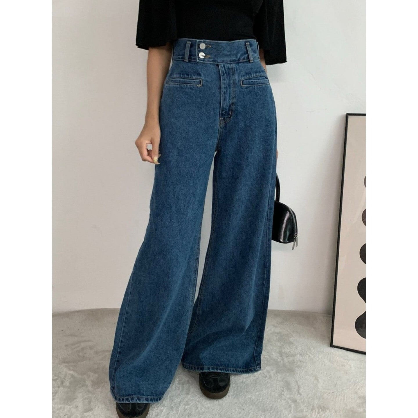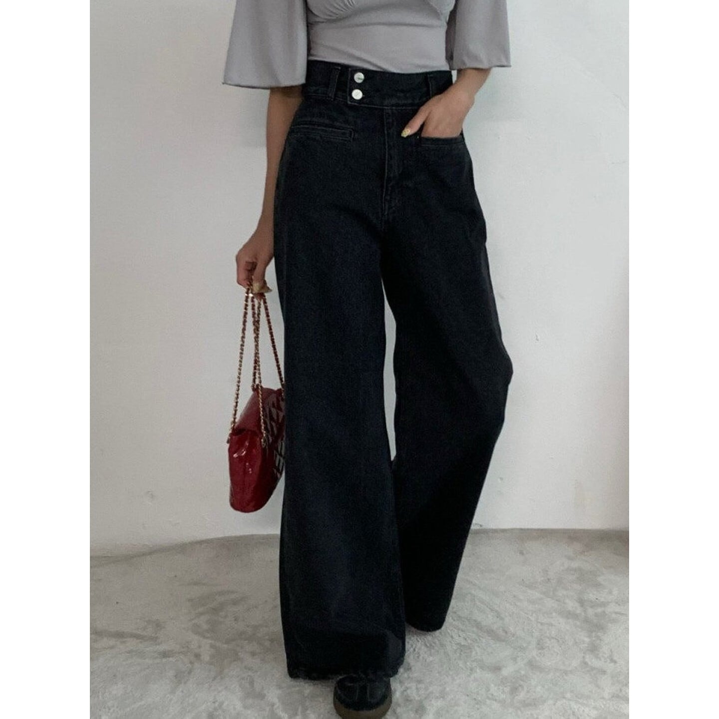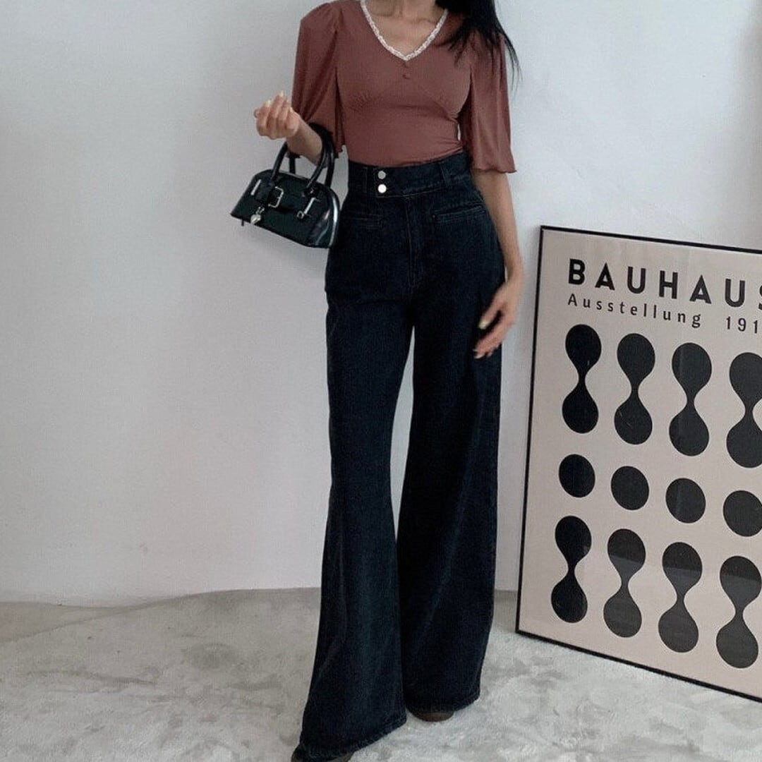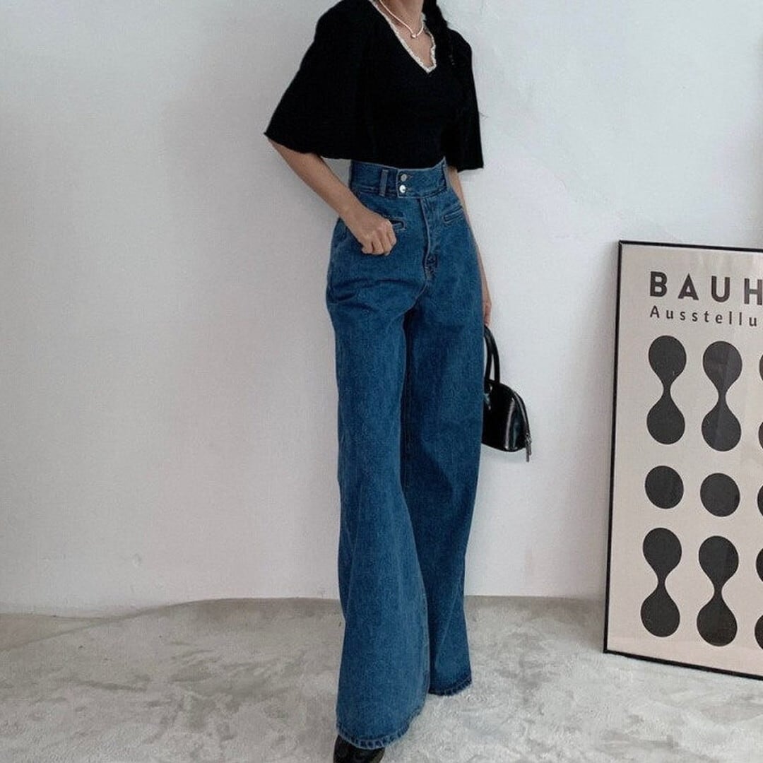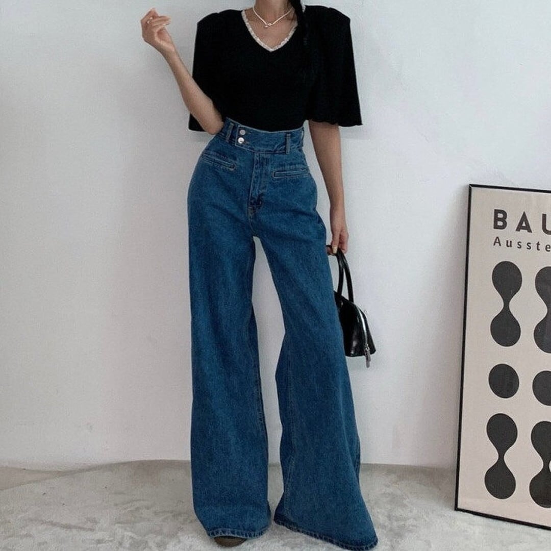 ワイドレッグ ハイライズ デニムパンツ/2col M02924
