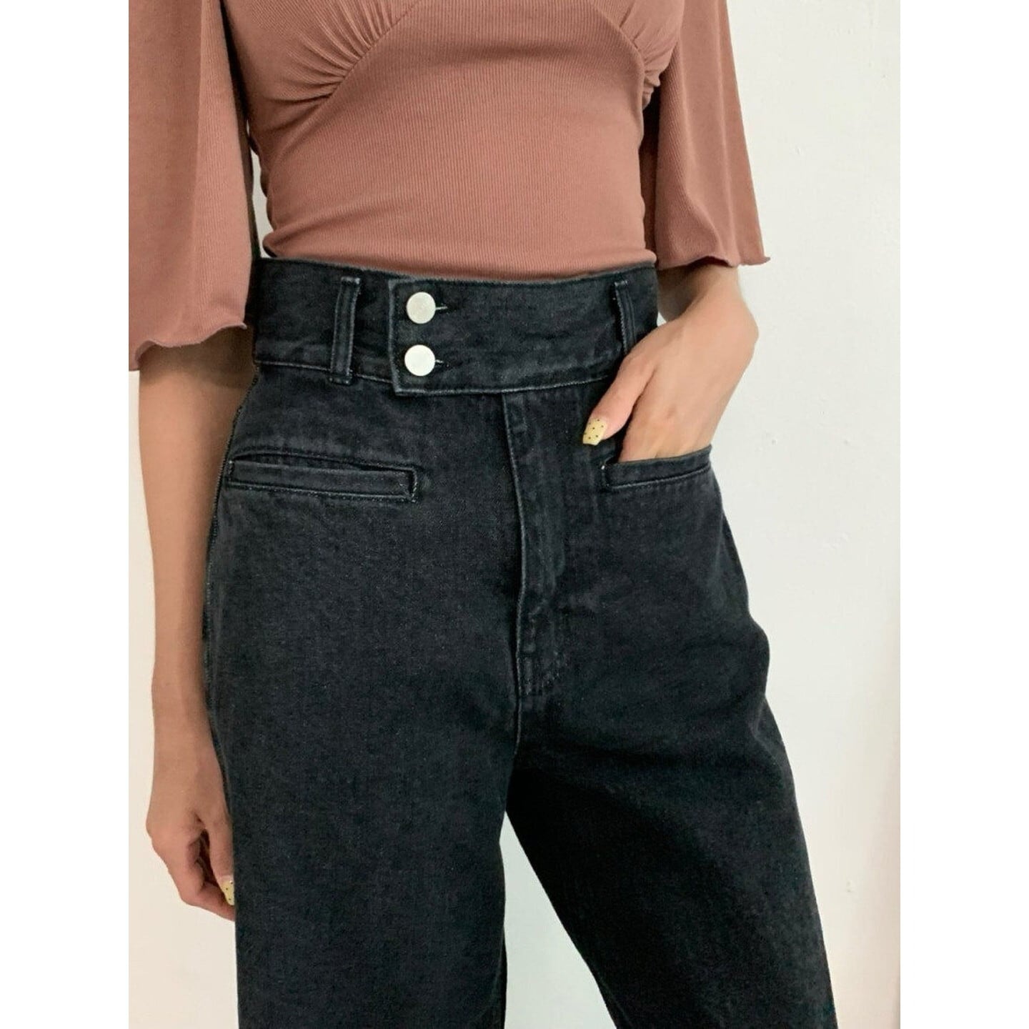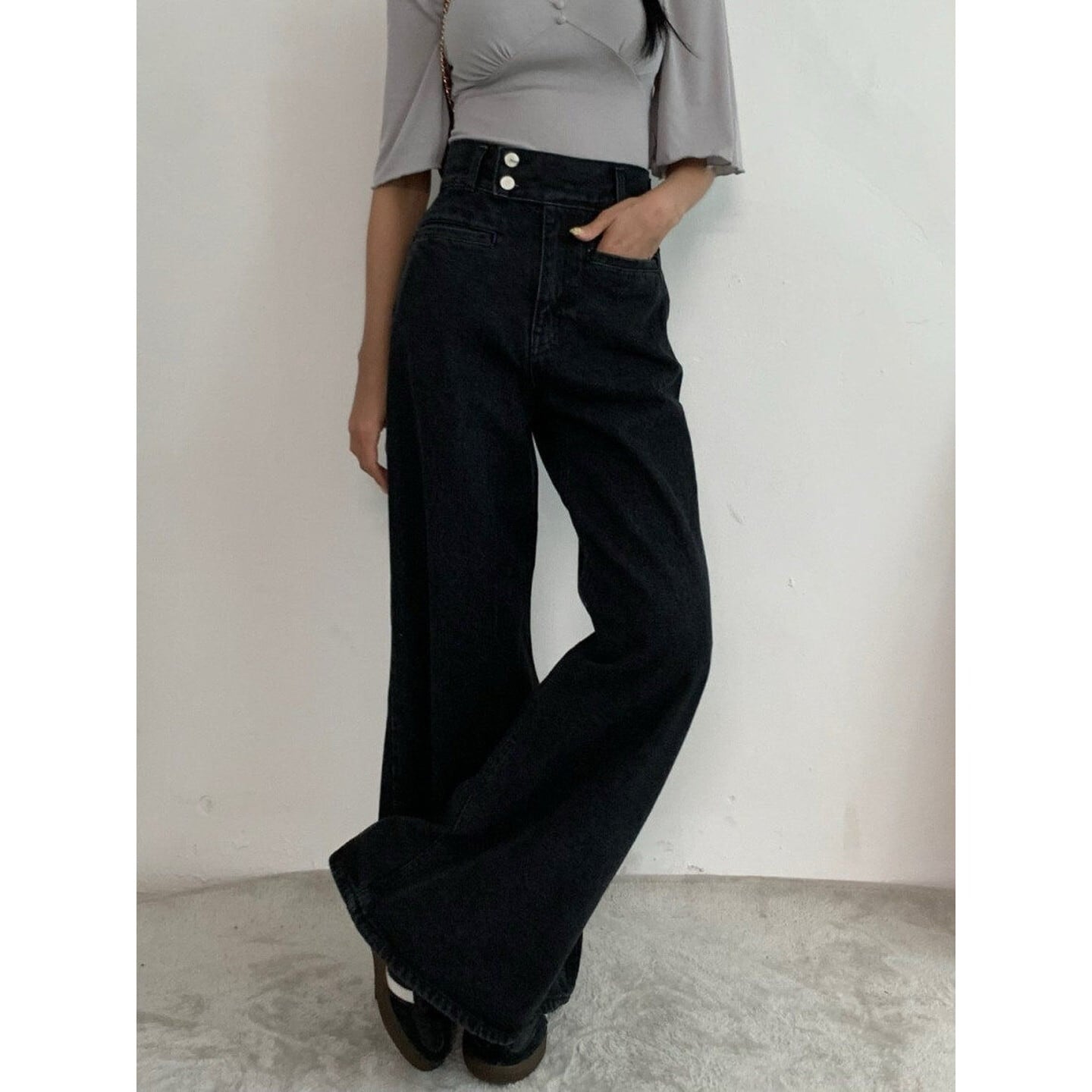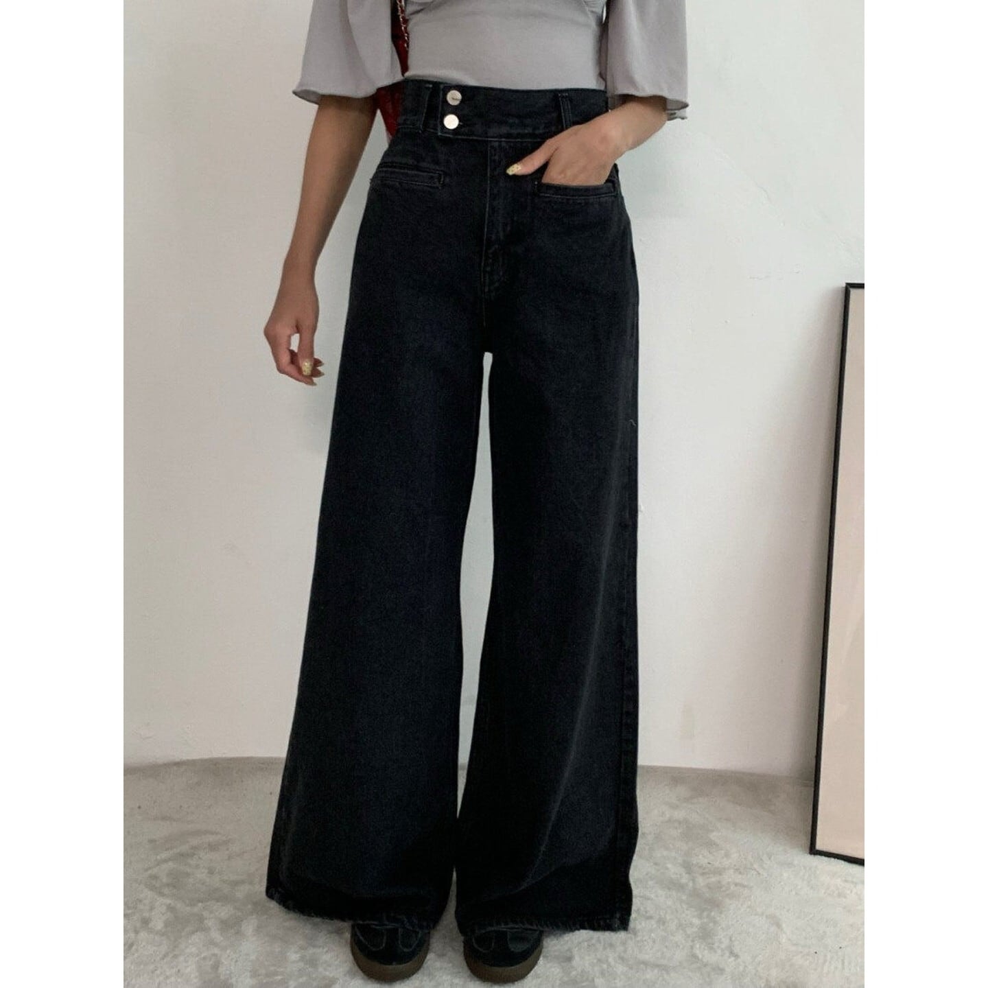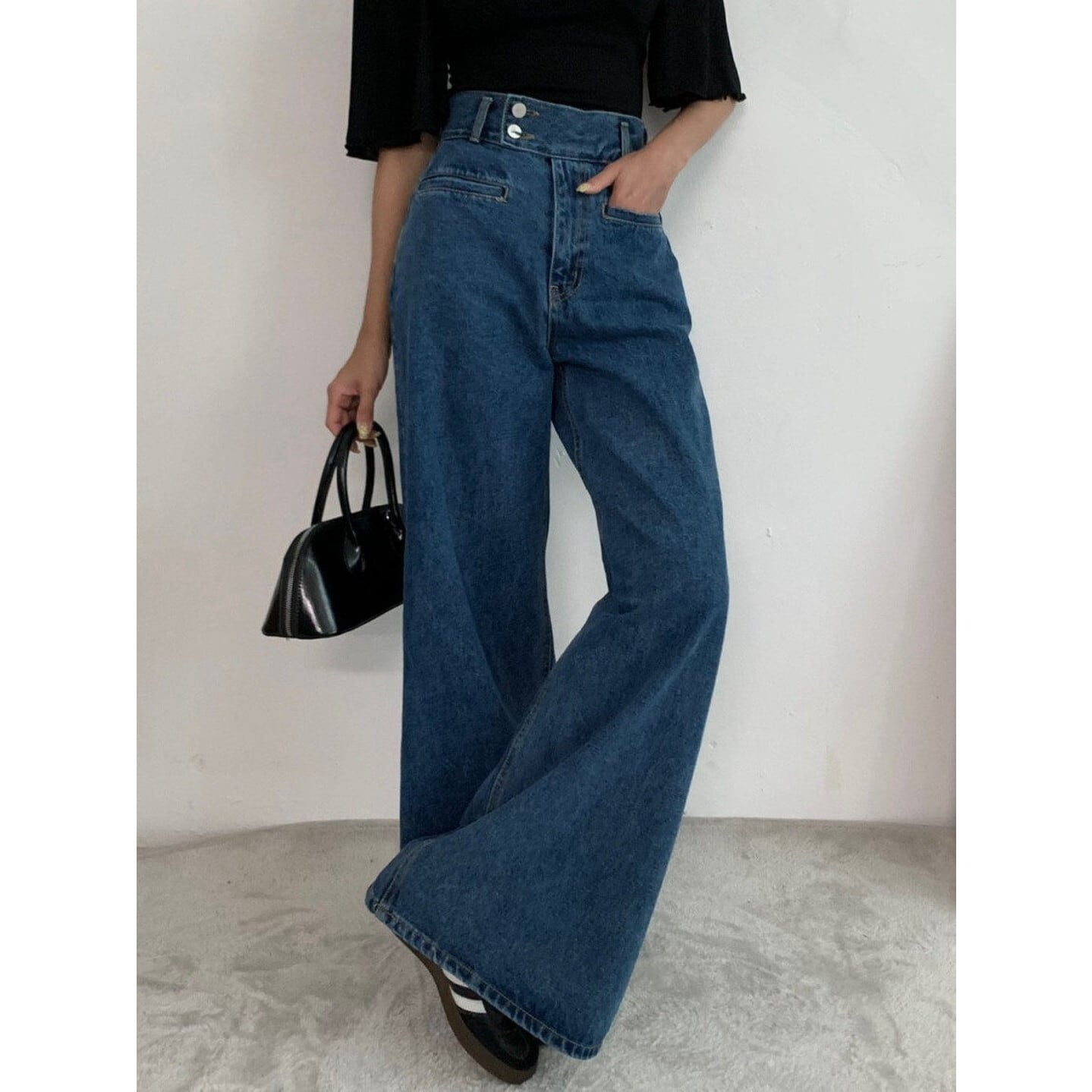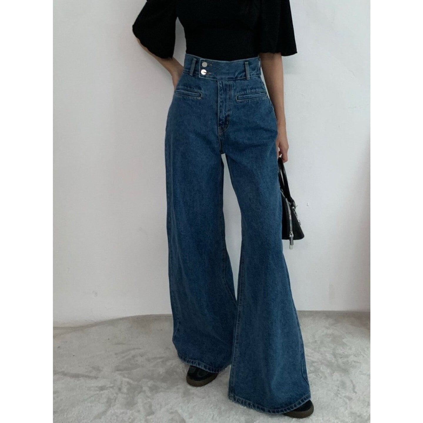 ワイドレッグ ハイライズ デニムパンツ/2col M02924