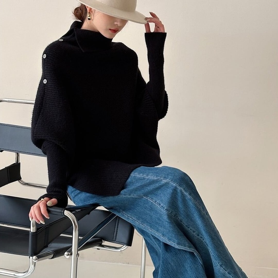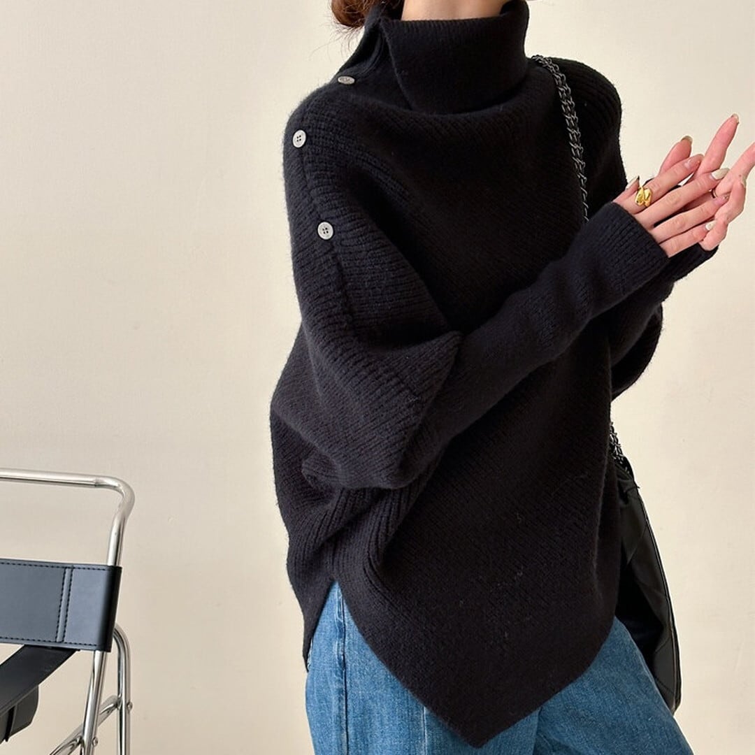 アインメトリーボタンディテールニット/2col M02876