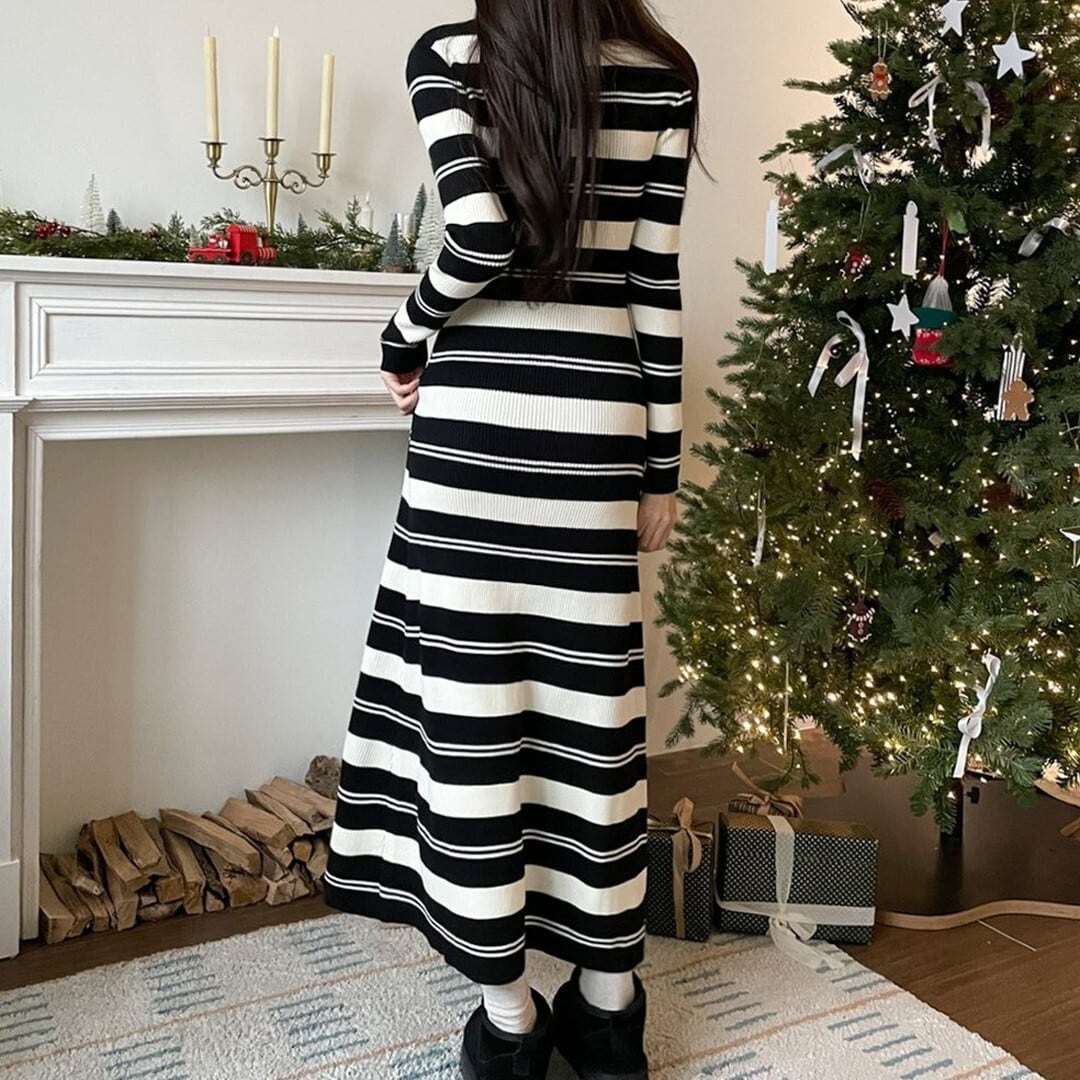 カジュアルながらも上品な印象を与えてくれる、ボーダー柄のマキシ丈ワンピース。