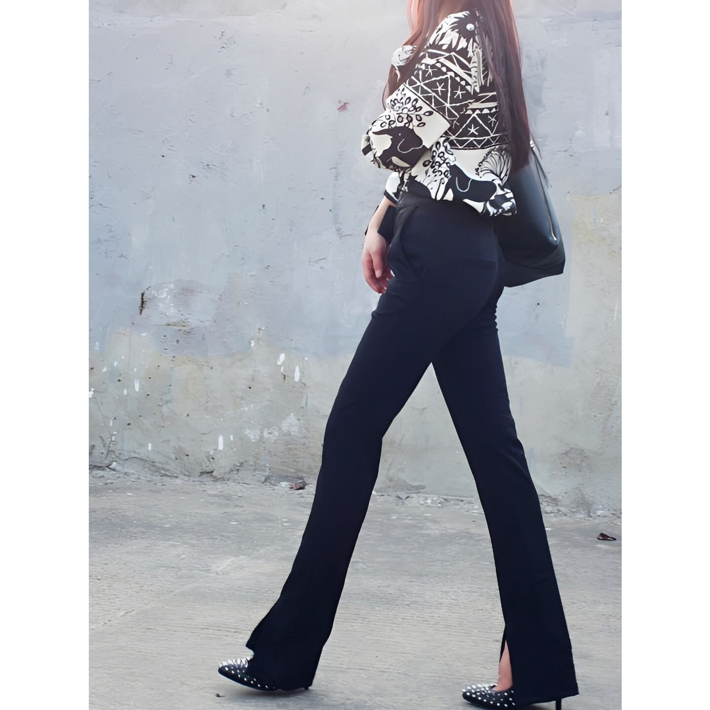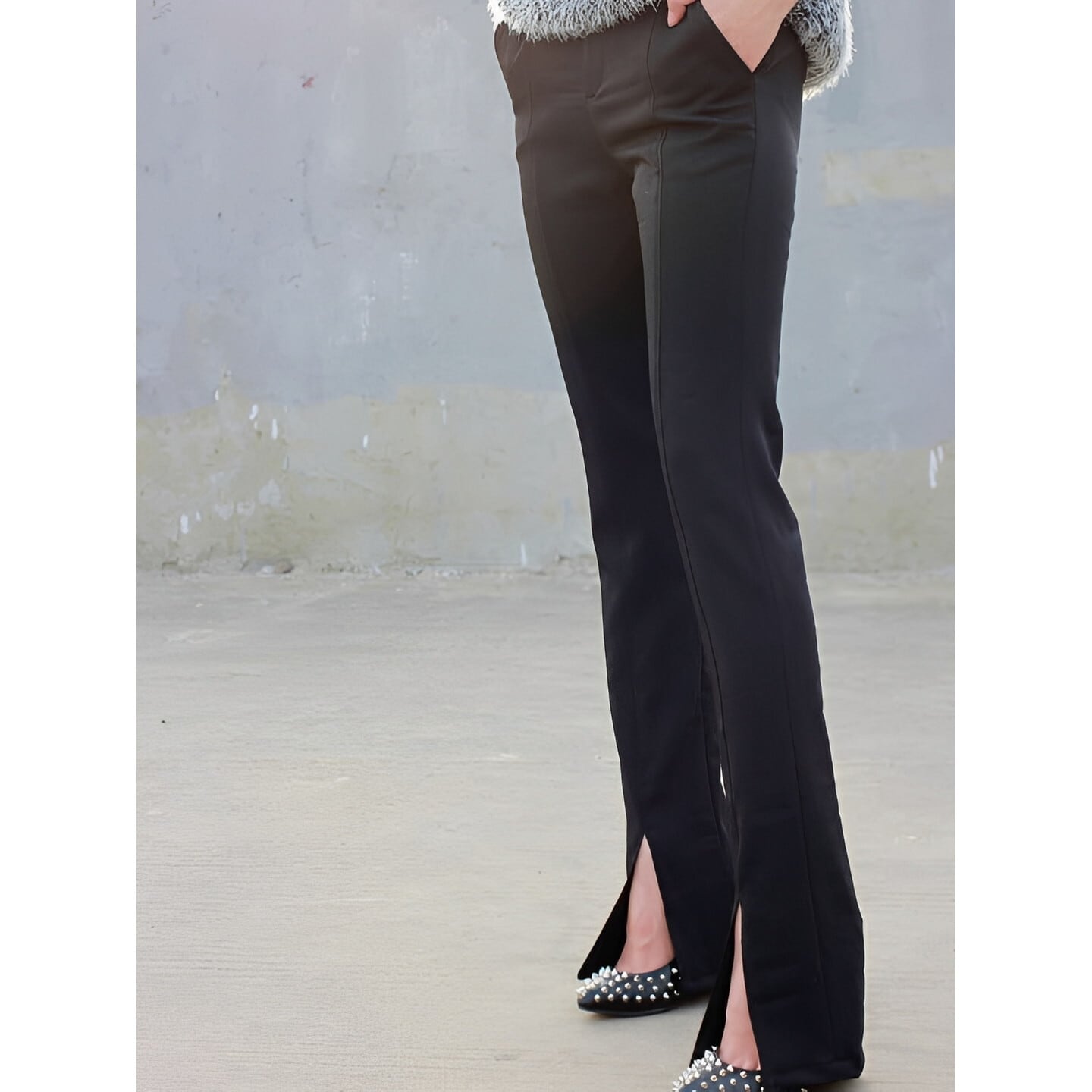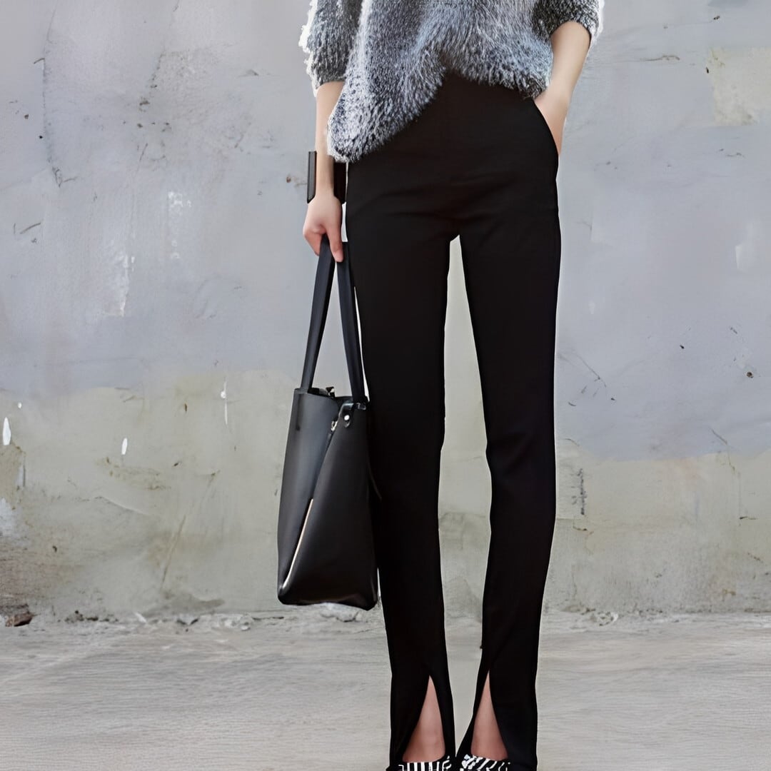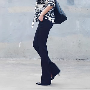 脚長効果抜群の、フロントスリット テーパードパンツ。