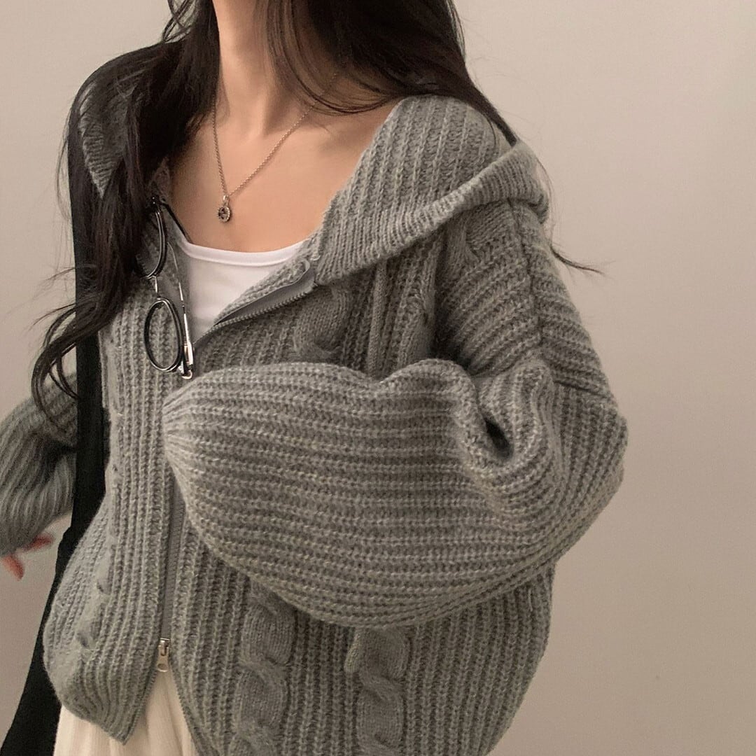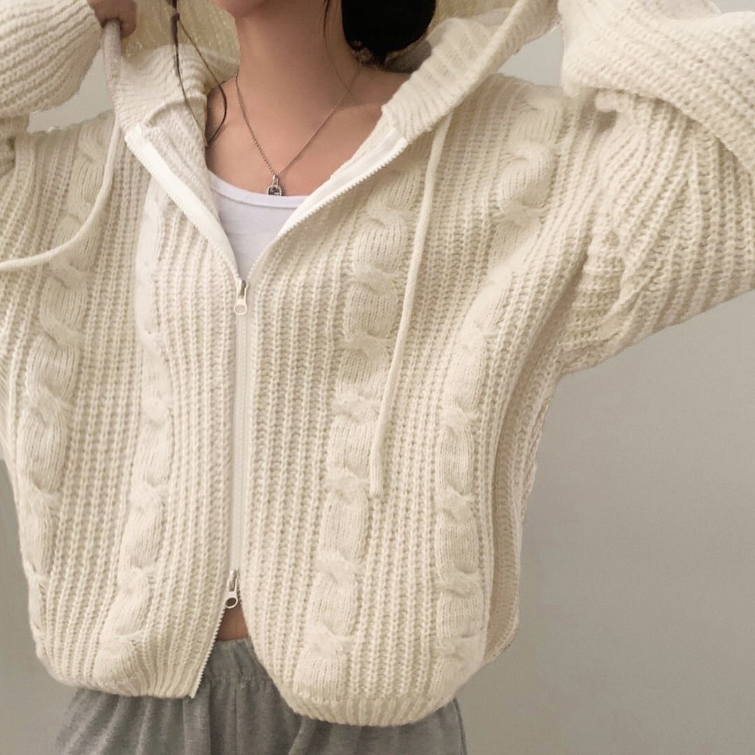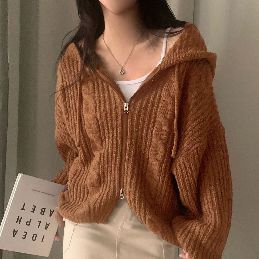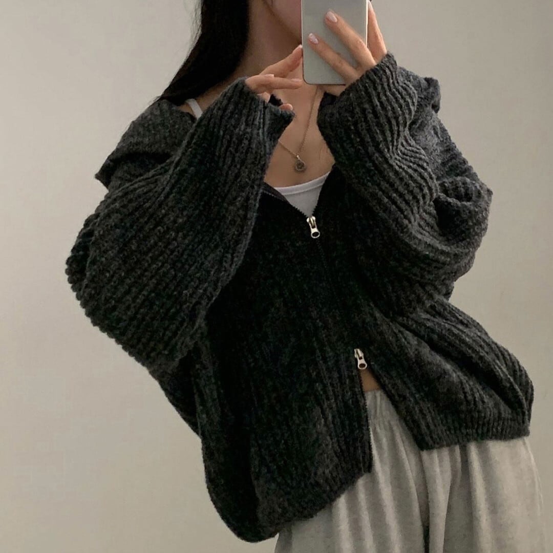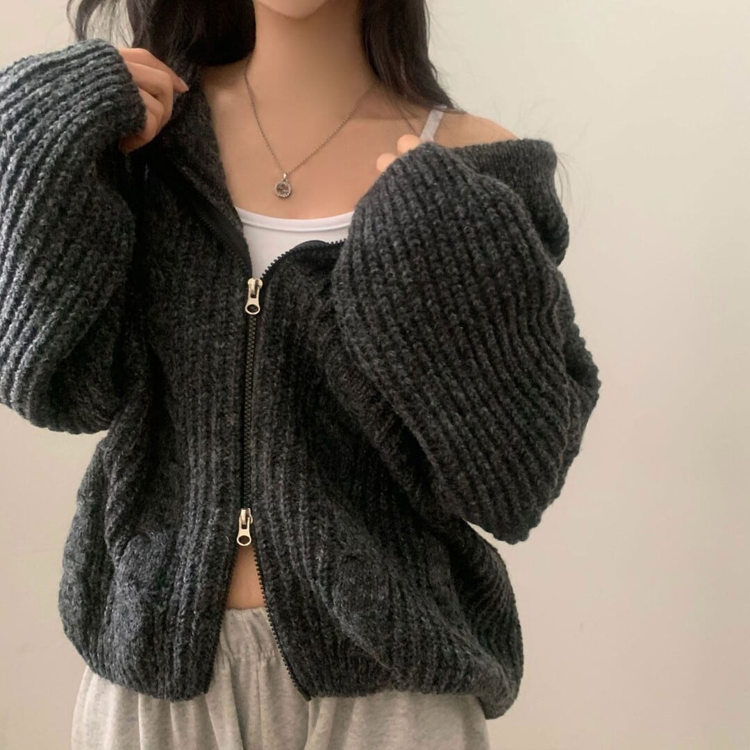 ジップアップ ニットカーディガン/4col M02952