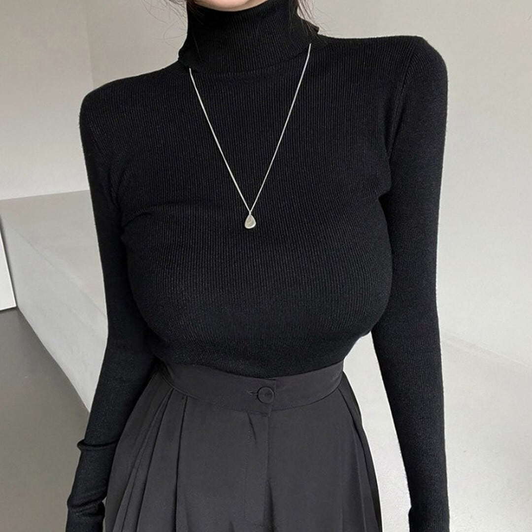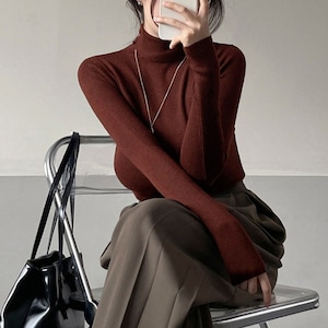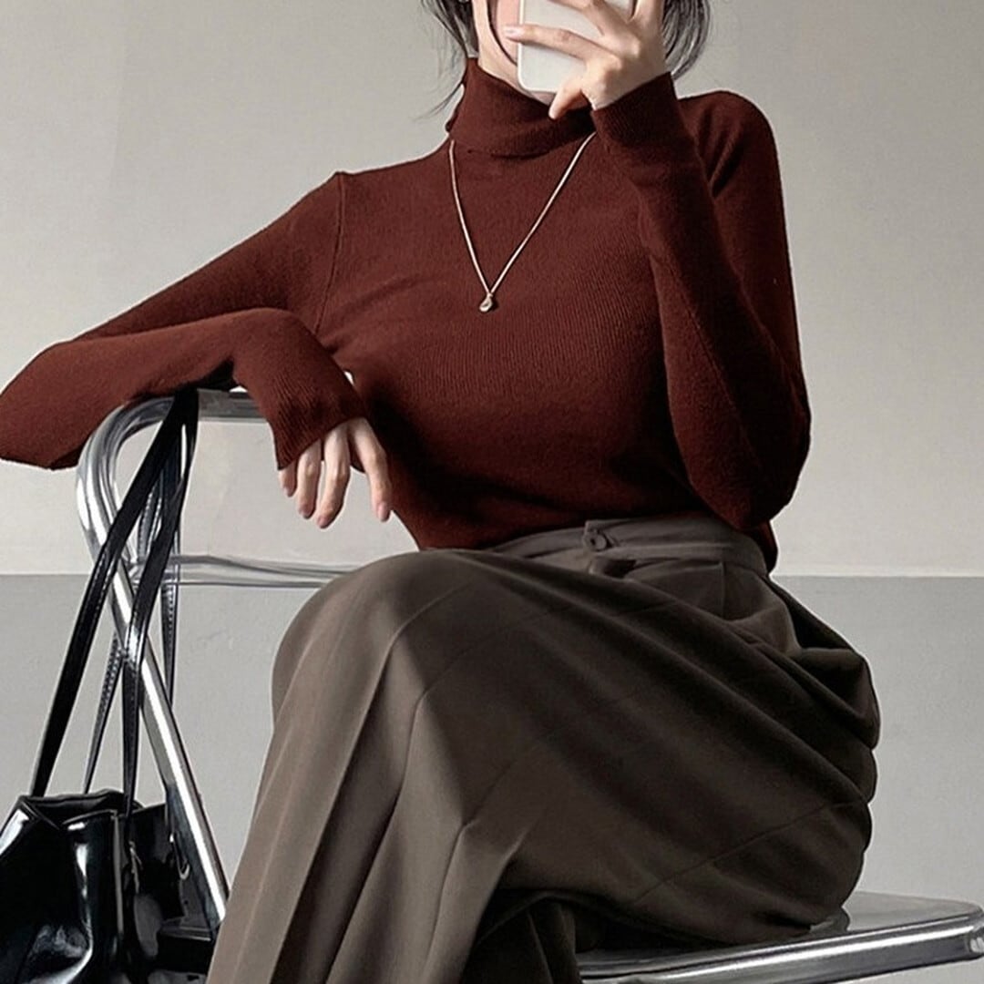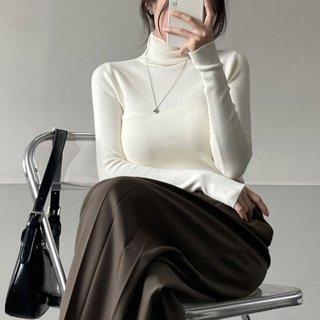 シンプルで着回し力抜群の、長袖タートルネックトップス。