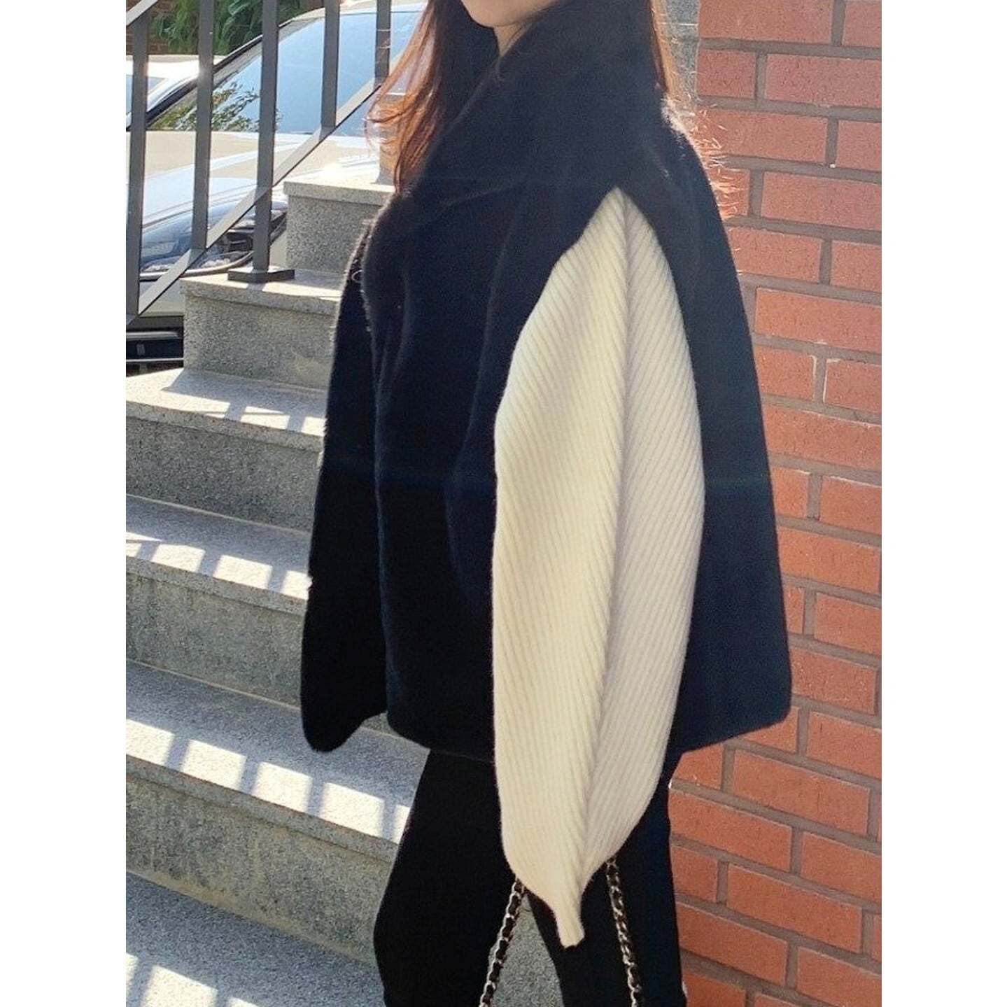 大きめの襟が顔周りを華やかに演出し、小顔効果も期待できます。