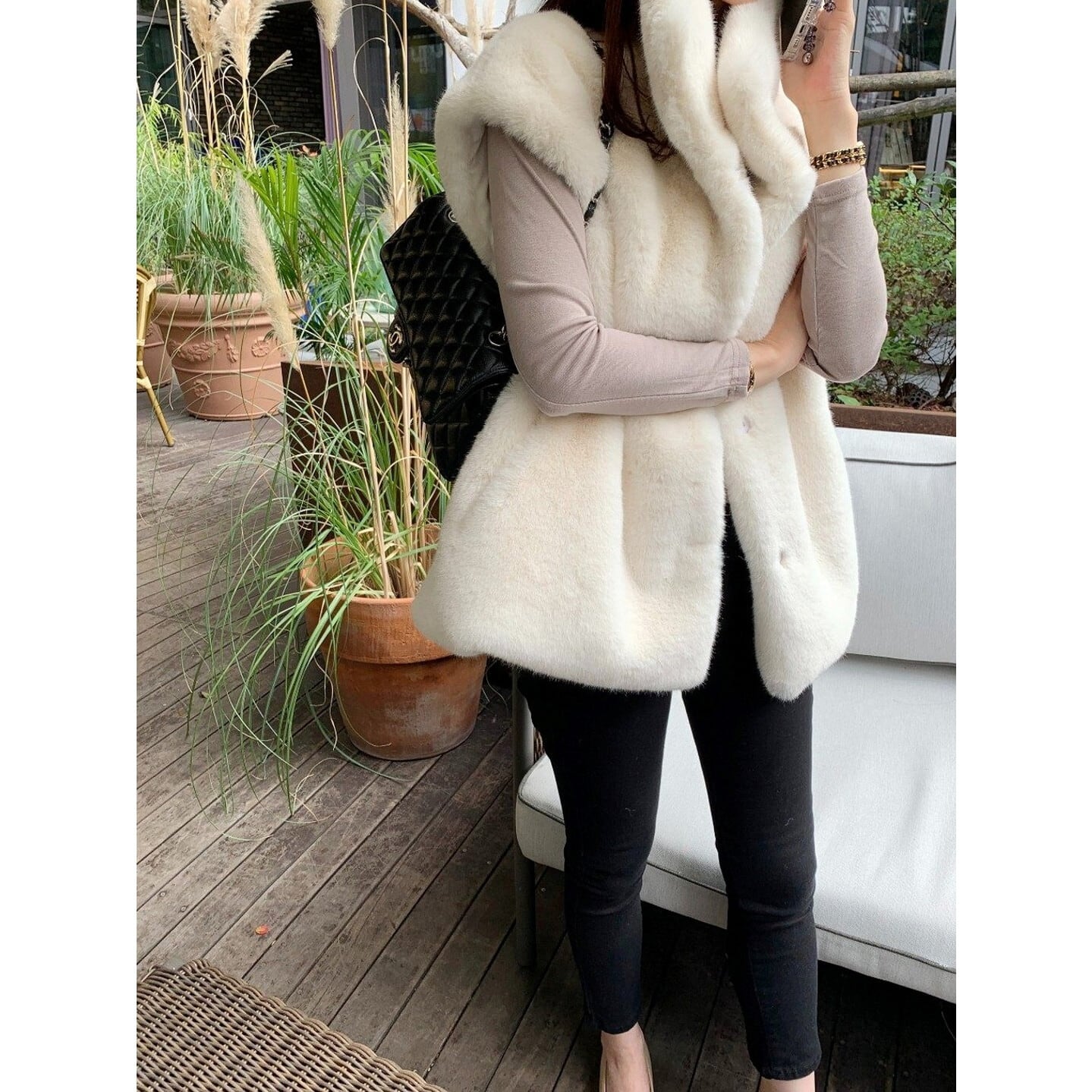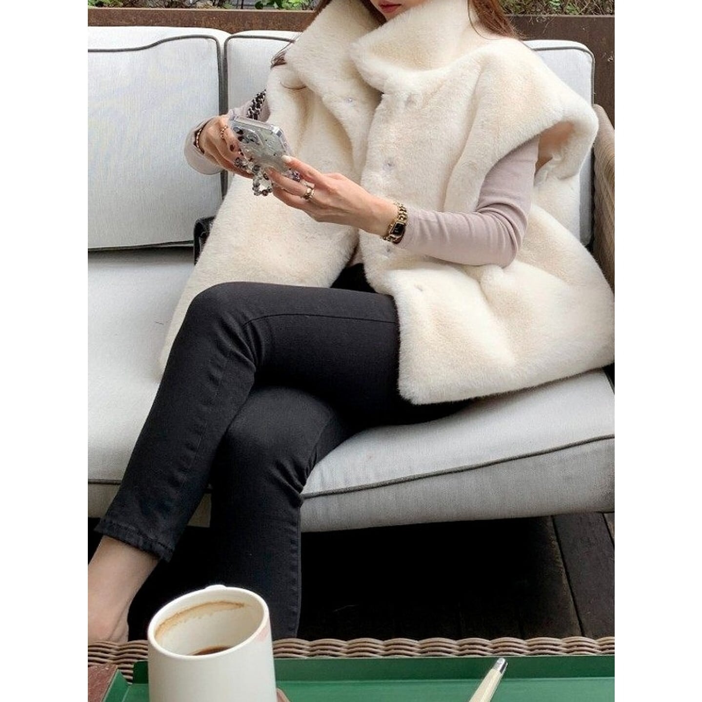 シーズンムードを高める、ヒップ丈のベスト。