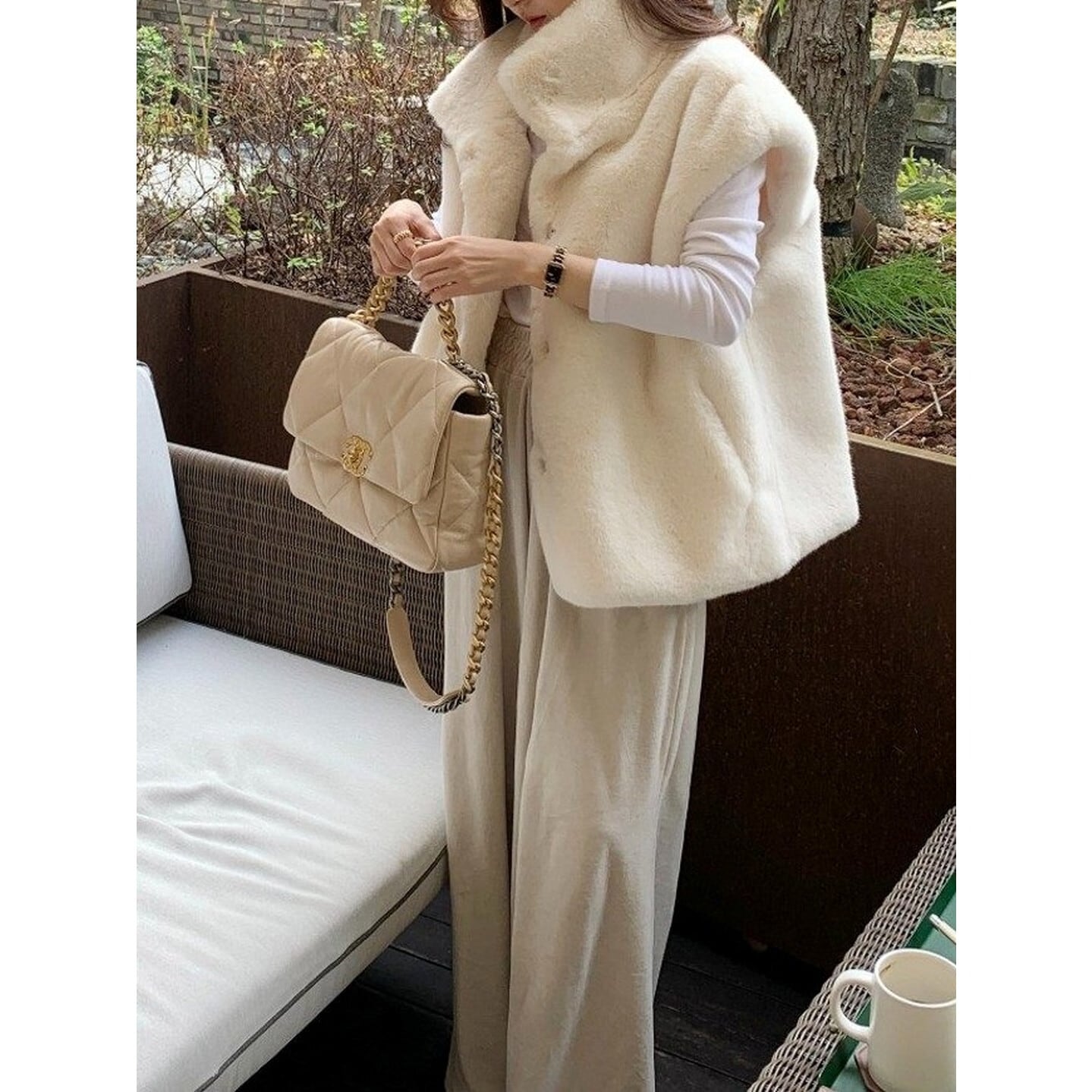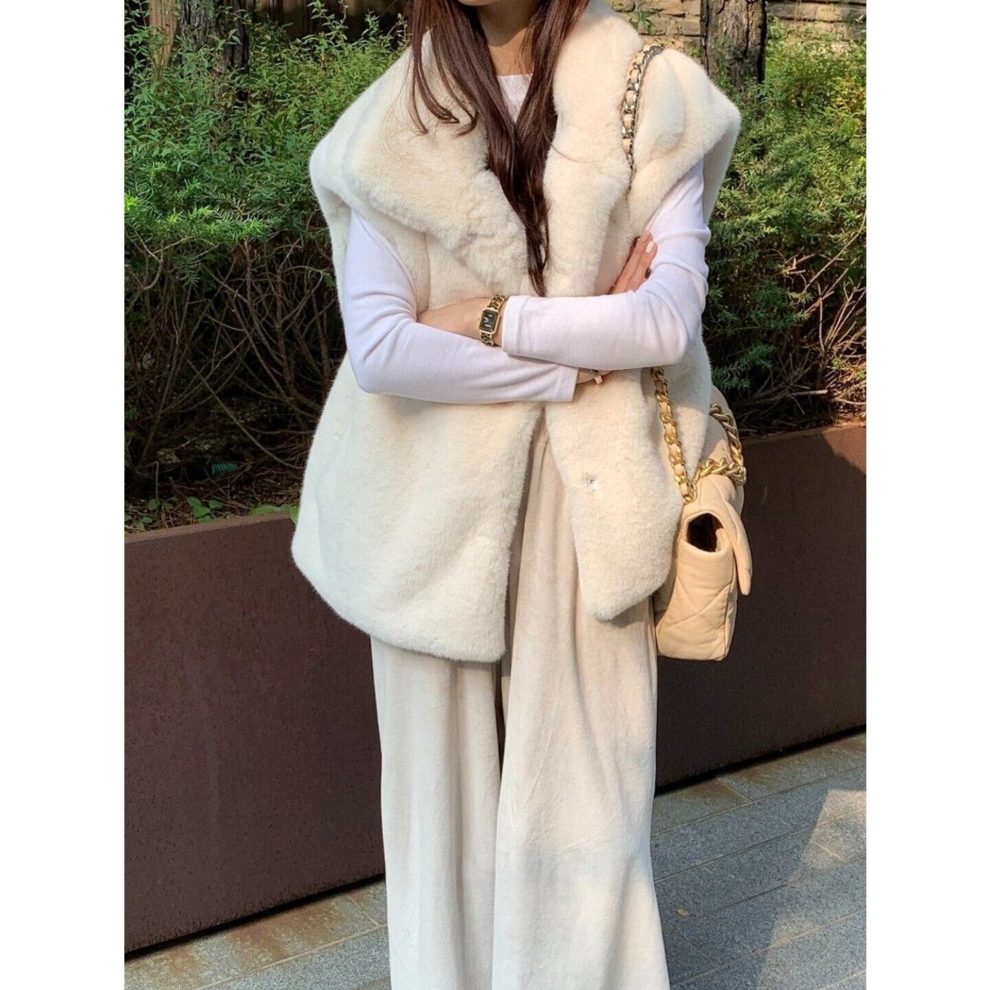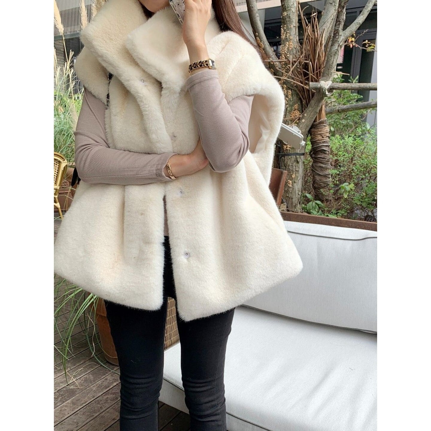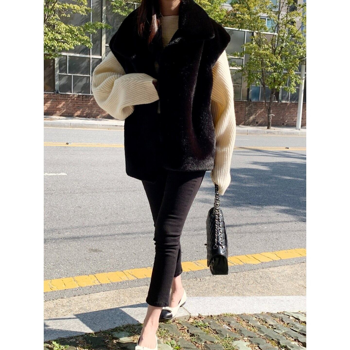 ビッグカラー ヒップ丈 ベスト/2col M02976