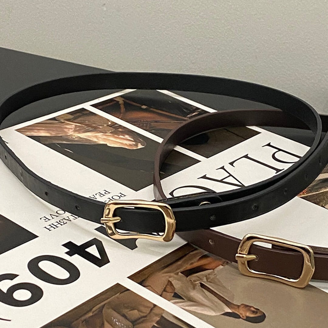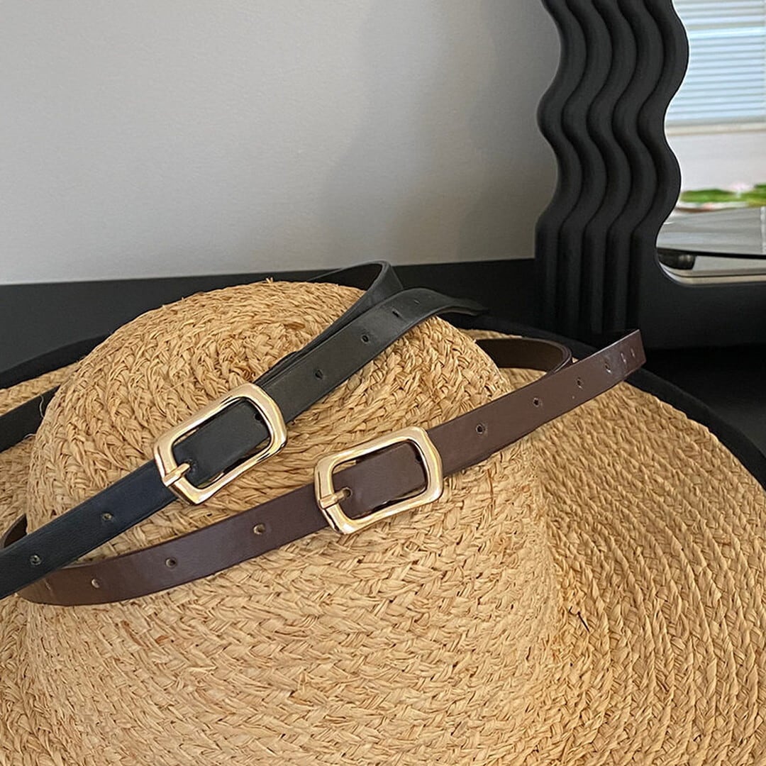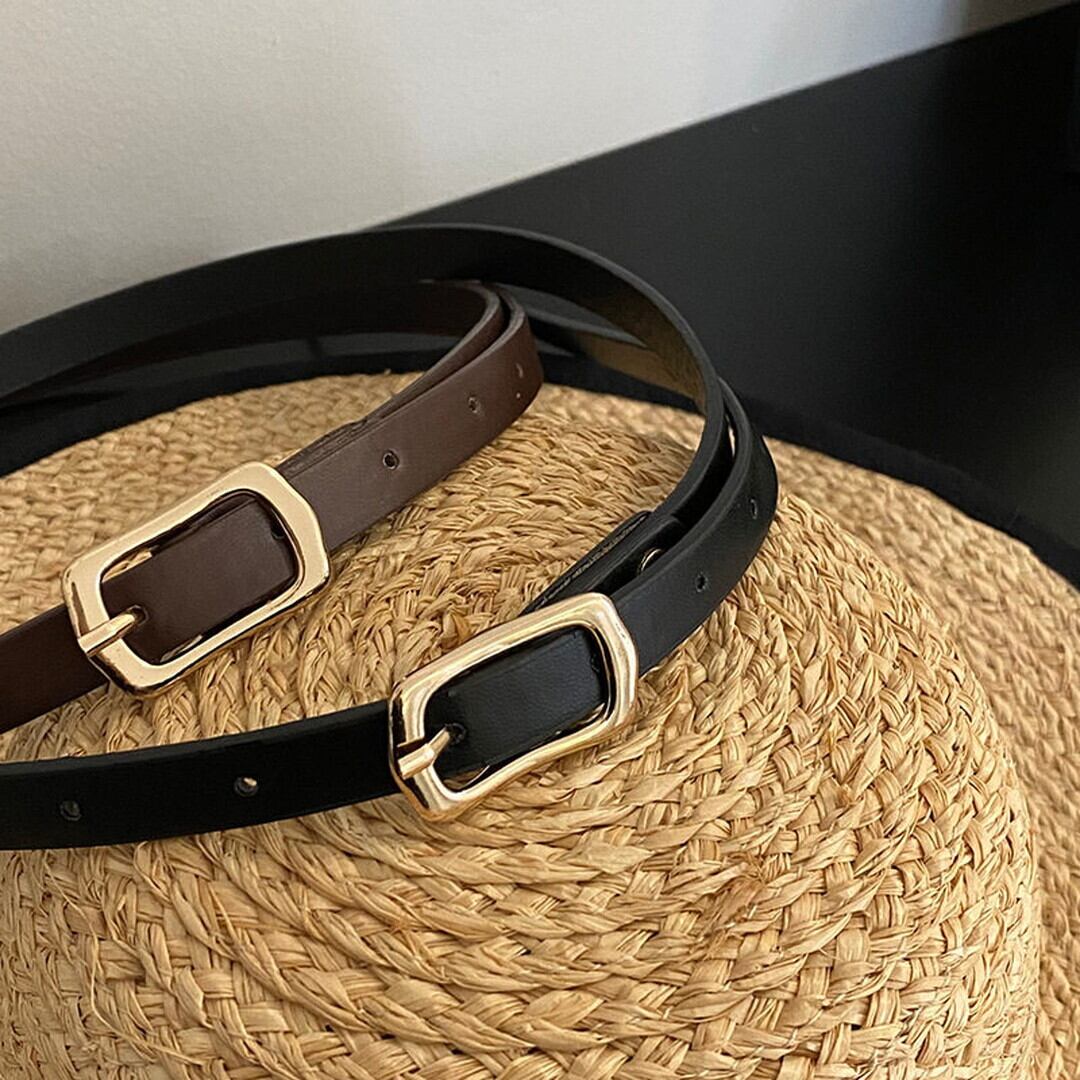 シンプルなスクエアバックルが上品なアクセントになるベルト。