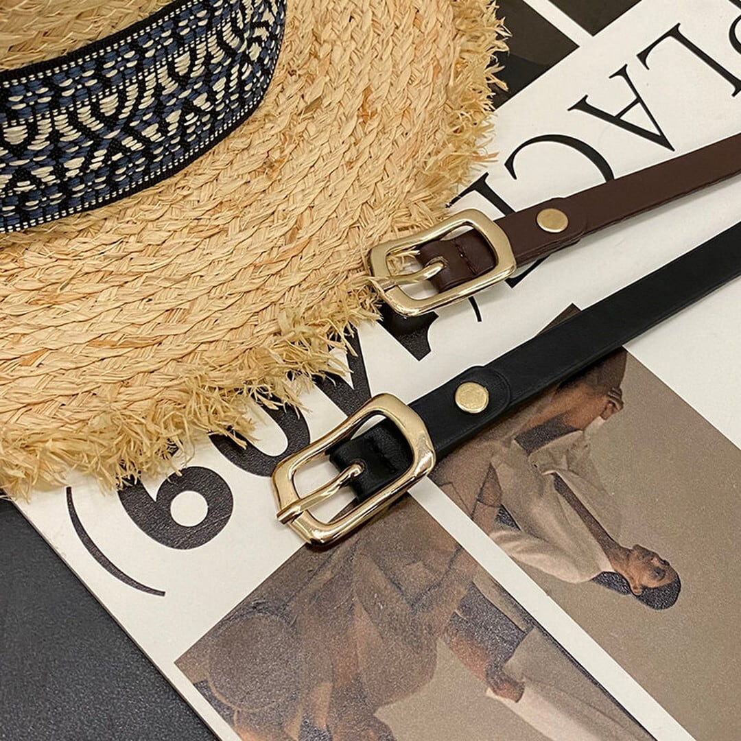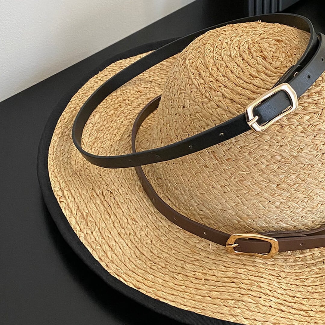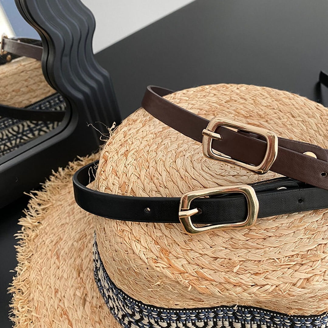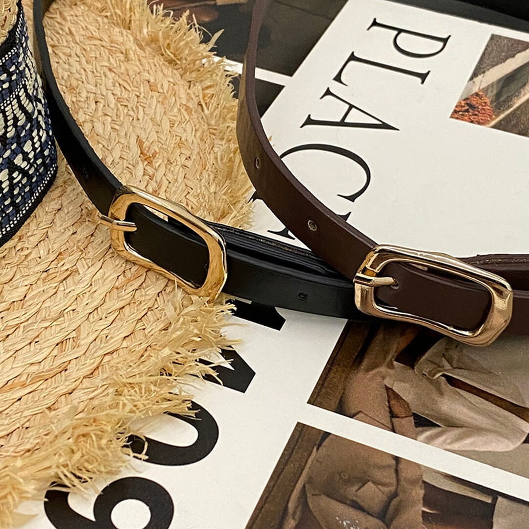シンプルなスクエアバックルが上品なアクセントになるベルト。
