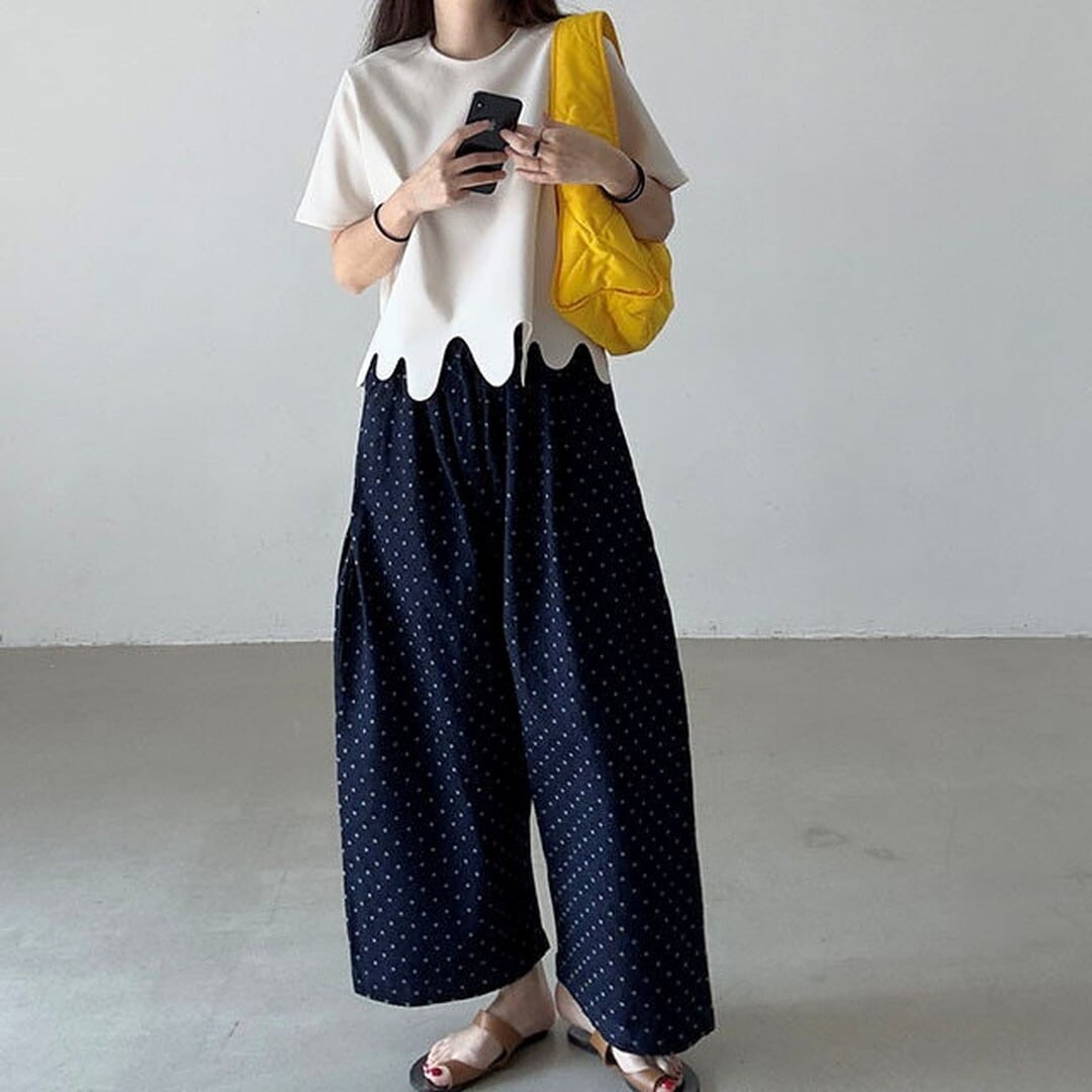 スカラップ ドロップショルダー Tシャツ/2col M02971