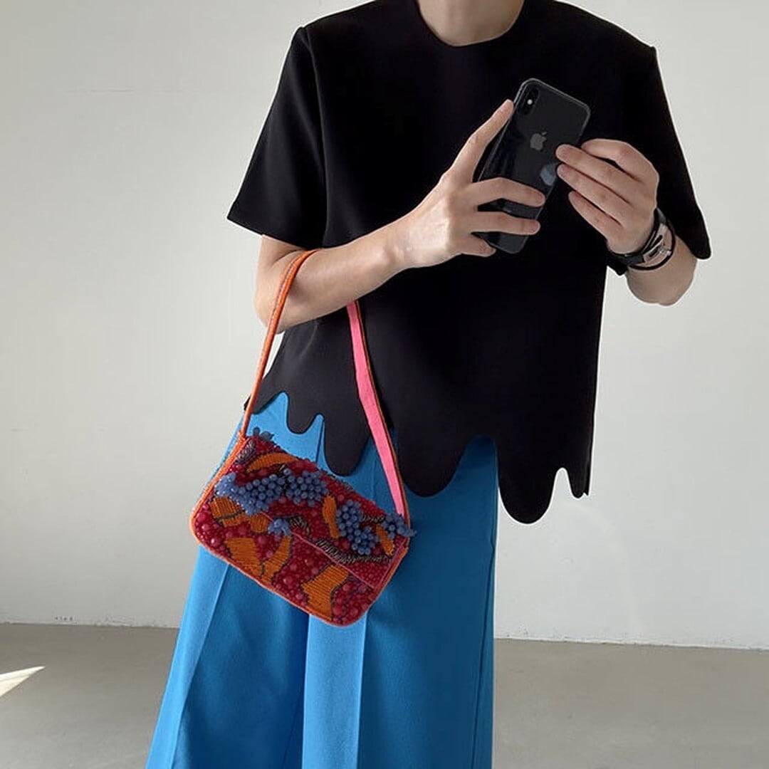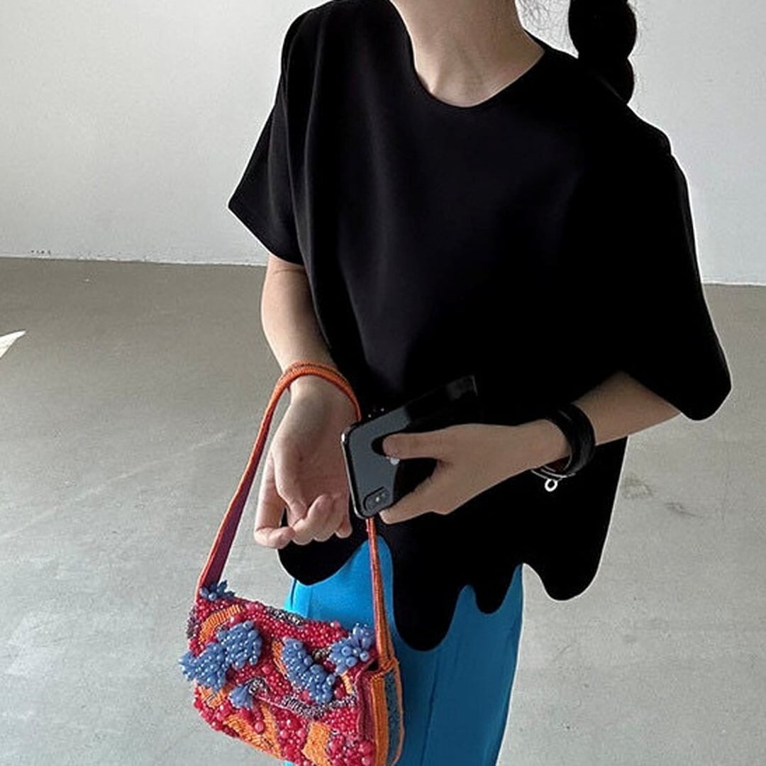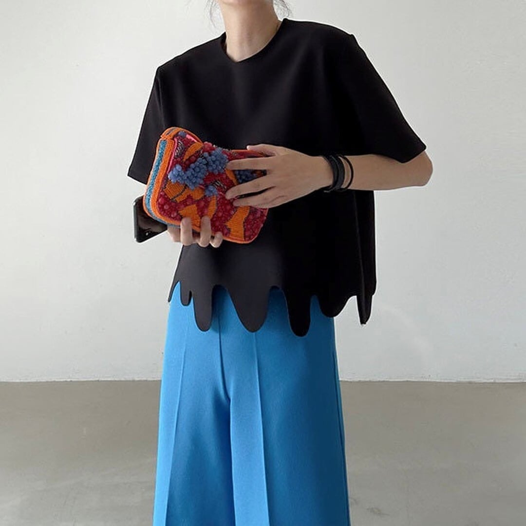スカラップデザインが目を惹く、ドロップショルダーTシャツ。