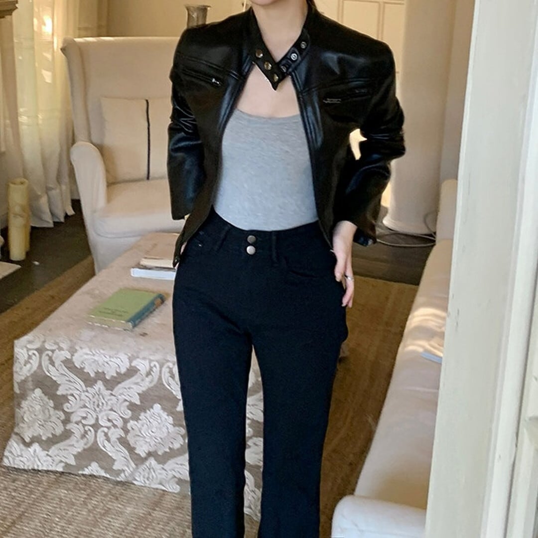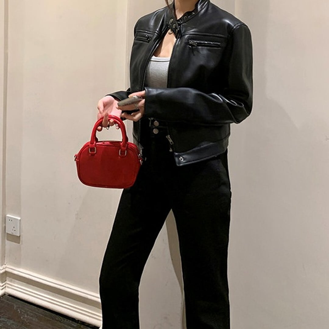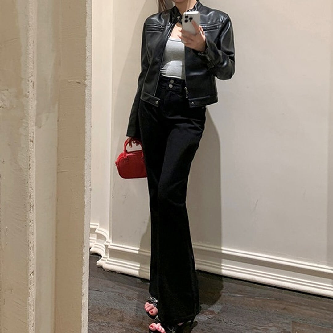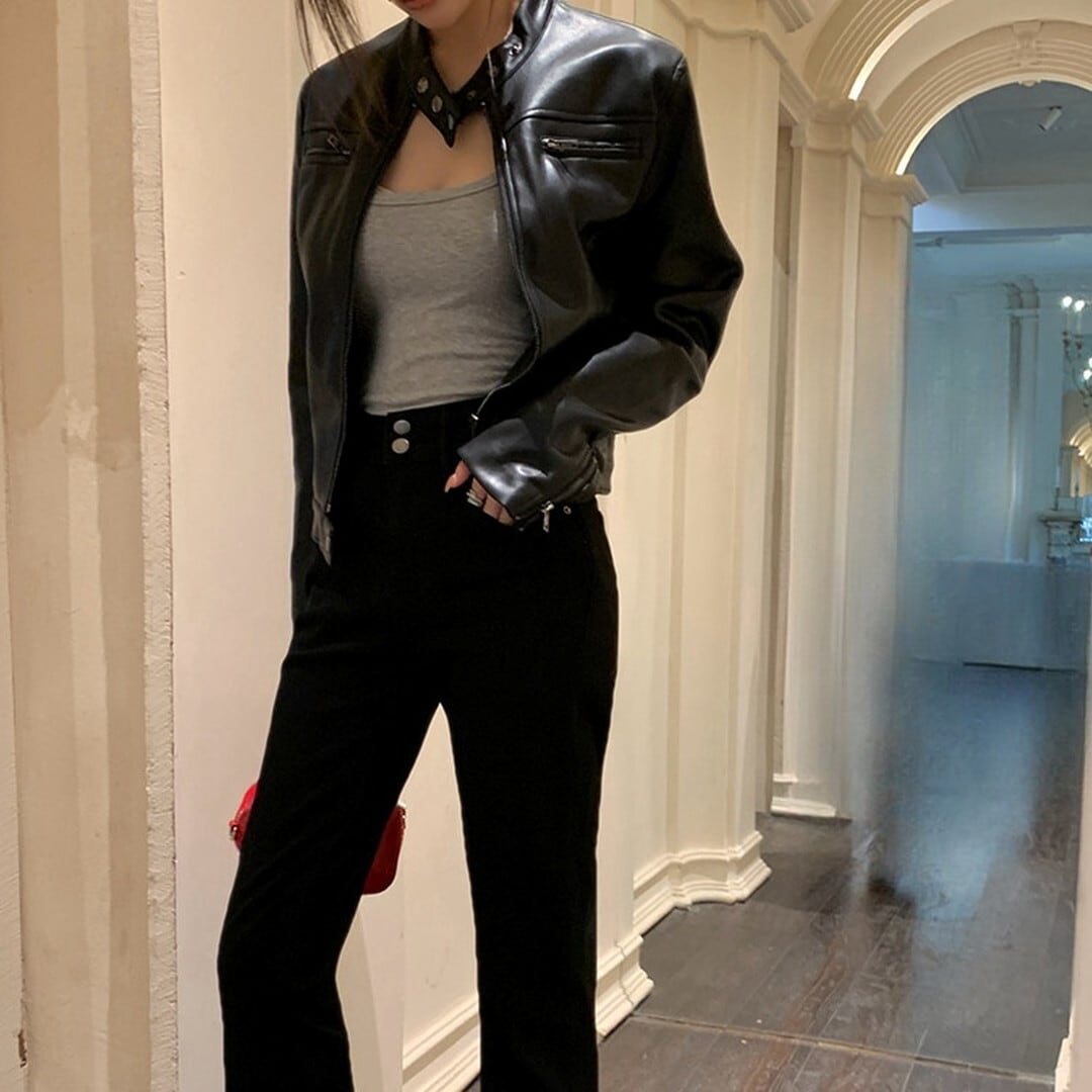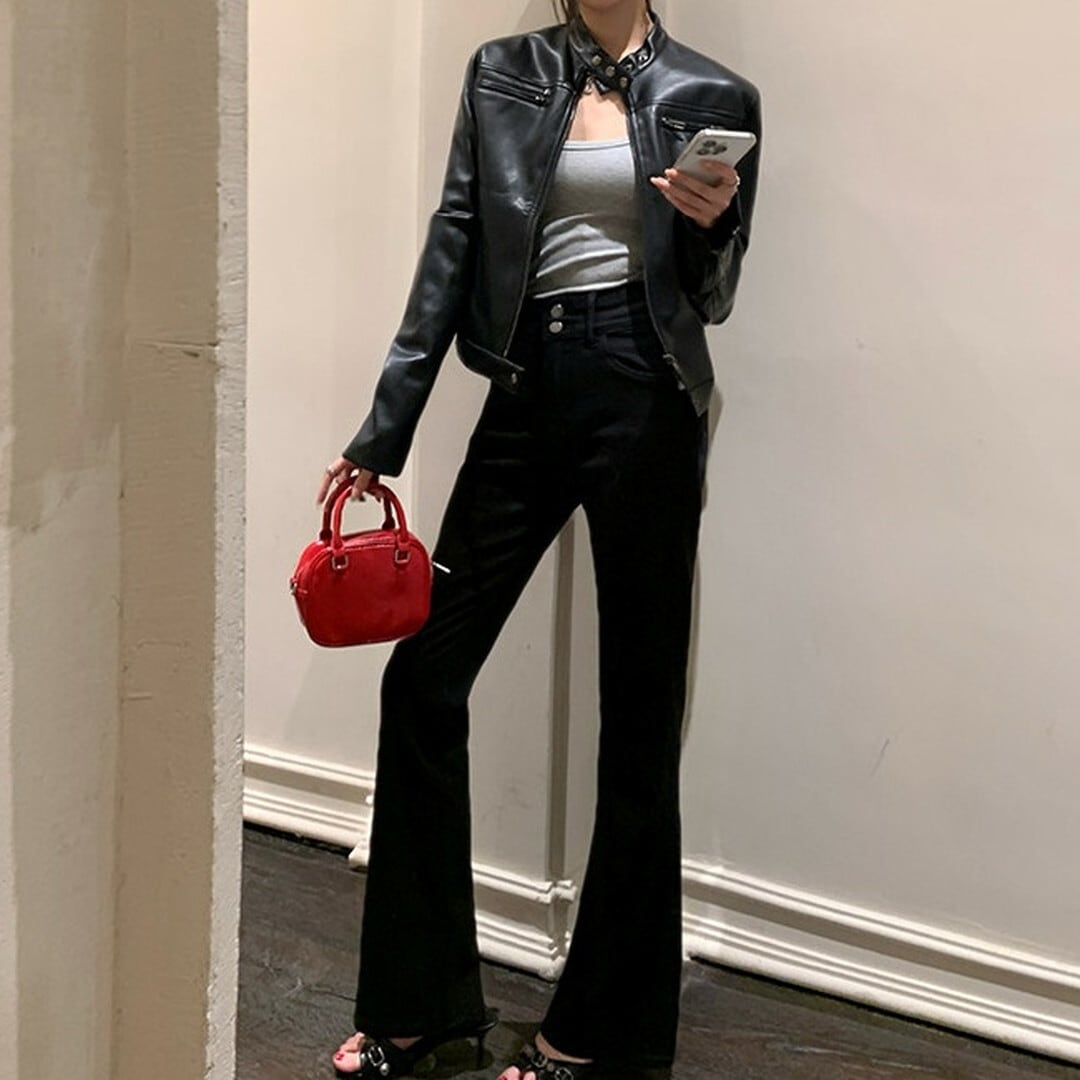 スカートやワンピースと合わせて、甘辛ミックスコーデもおすすめです。