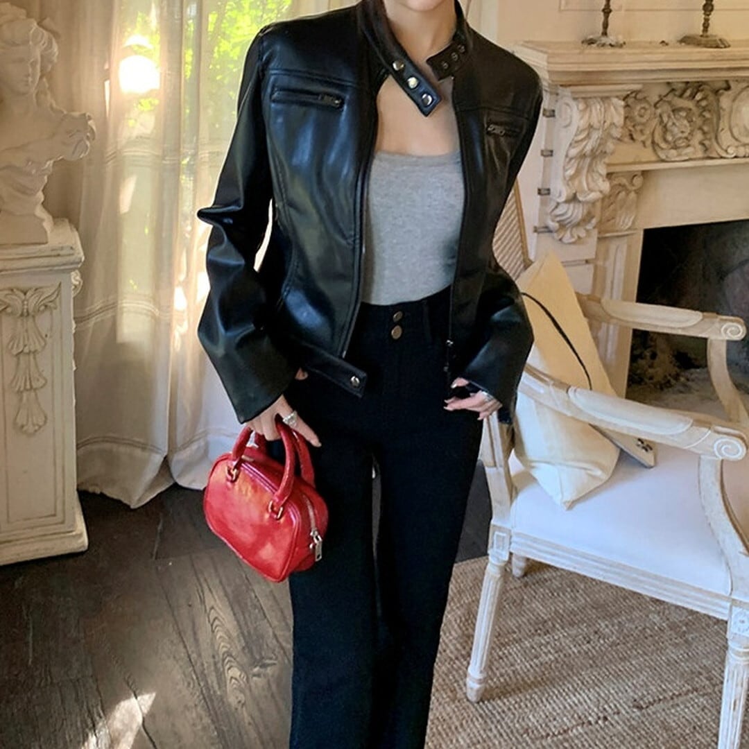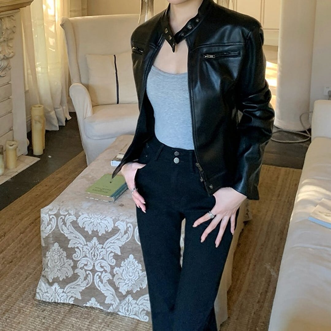 ジップアップ ェイクレザー ジャケット M03035