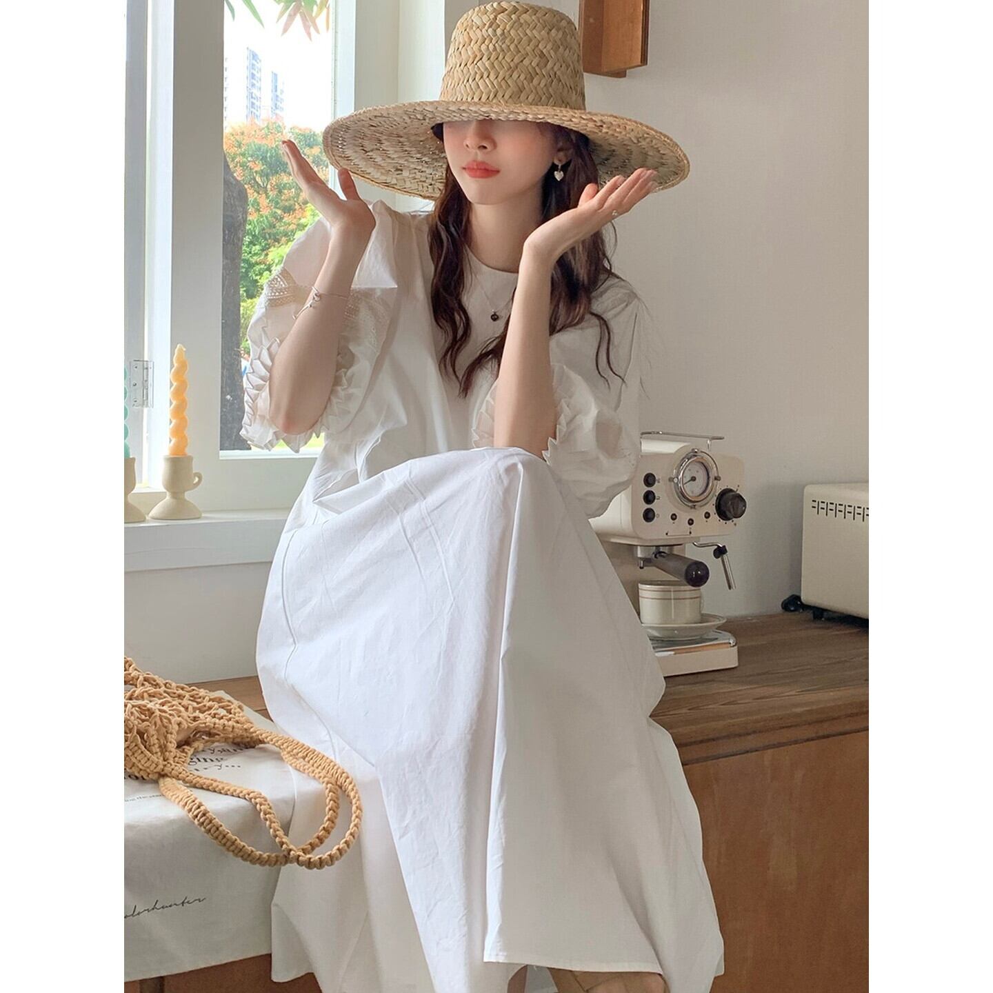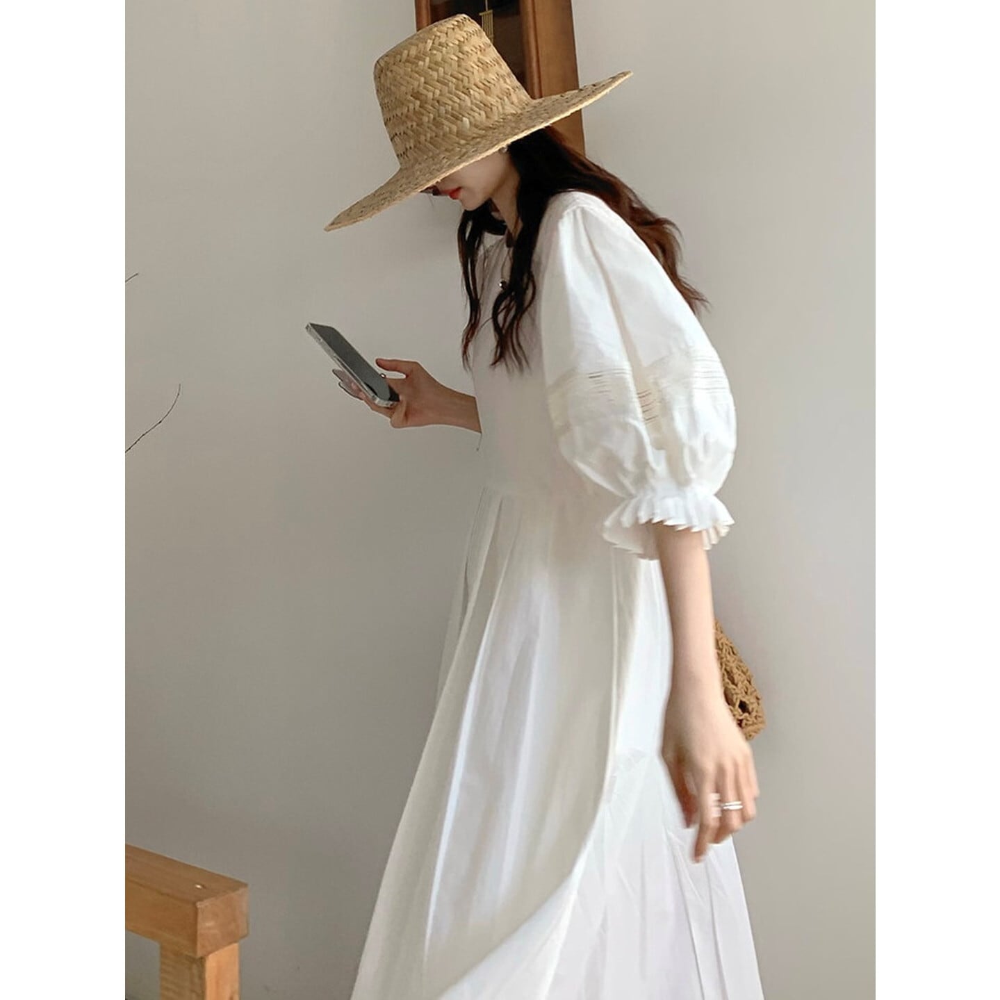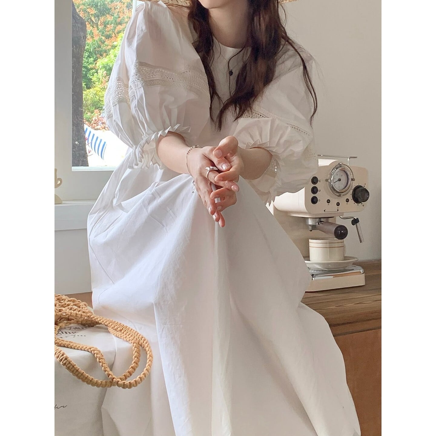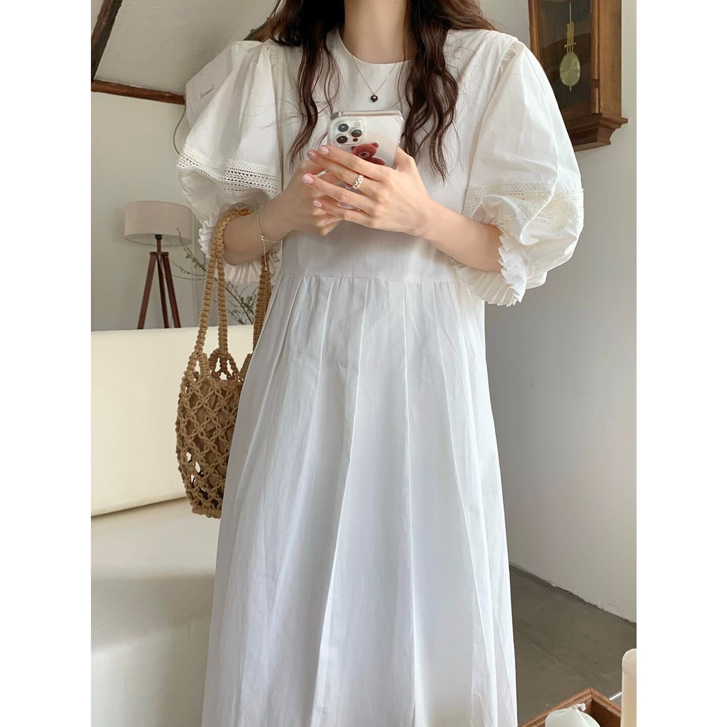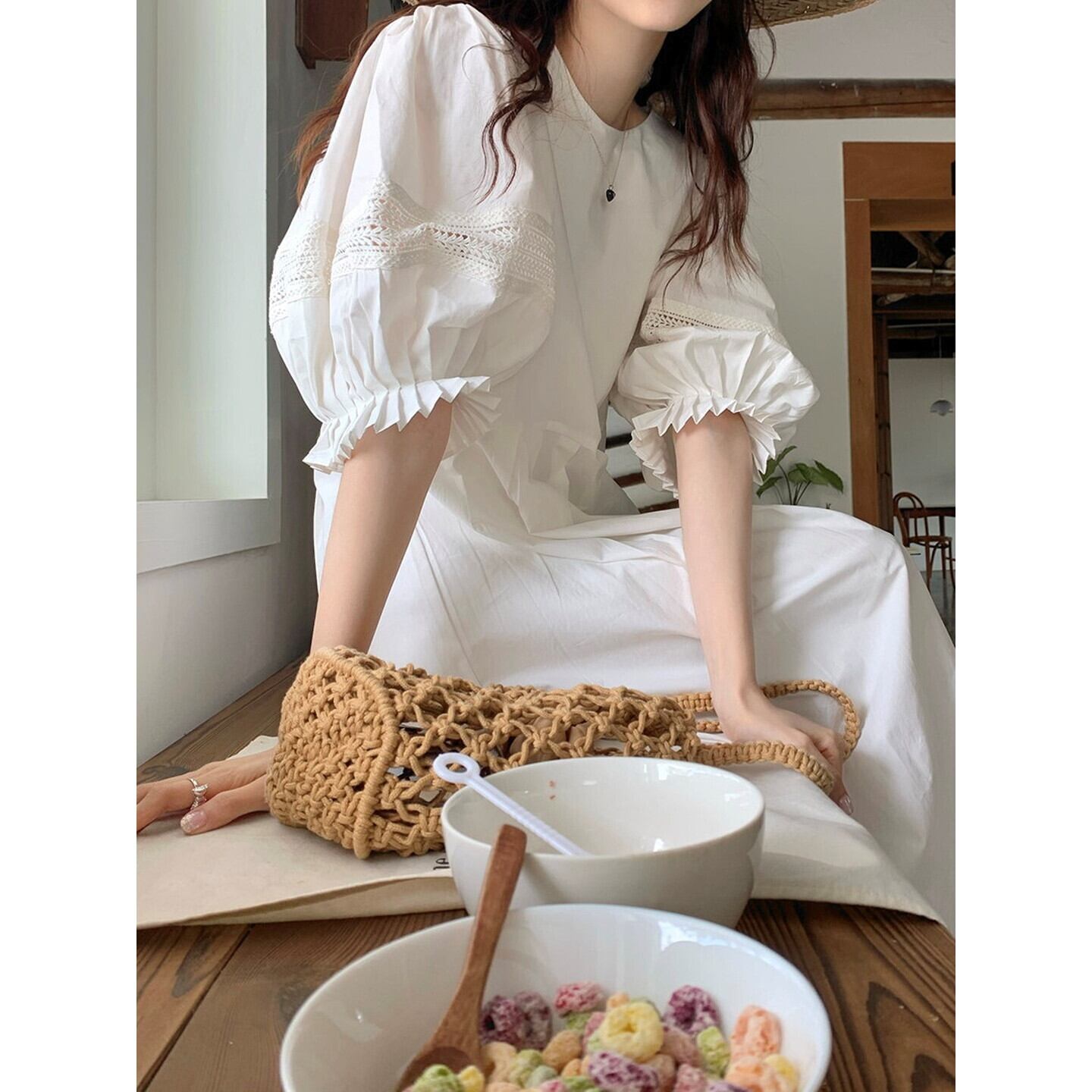 パフスリーブが女性らしさを引き立て、シンプルなデザインの中に個性をプラスします。