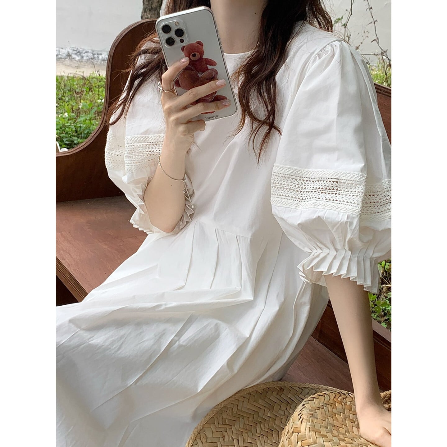 パフスリーブ 5分袖 ワンピース M03050