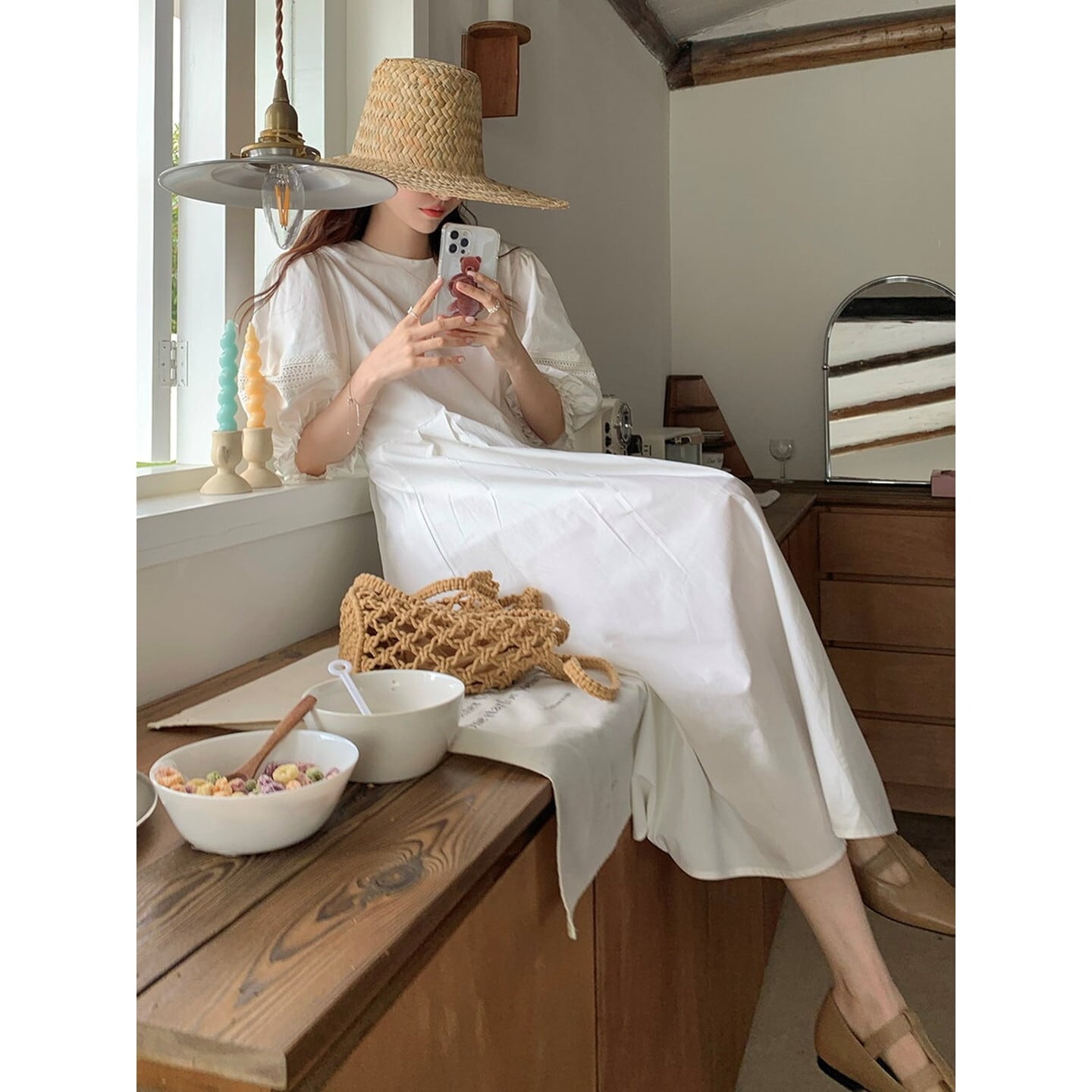 麦わら帽子やサンダルと合わせて、リゾートスタイルを楽しむのもおすすめです。