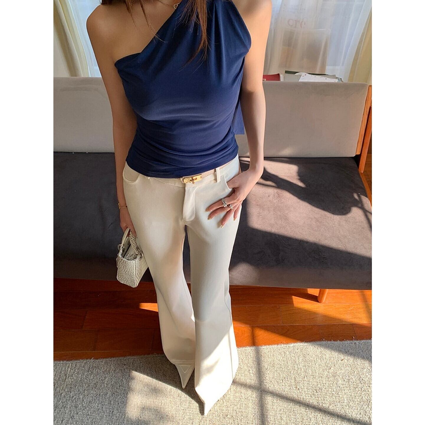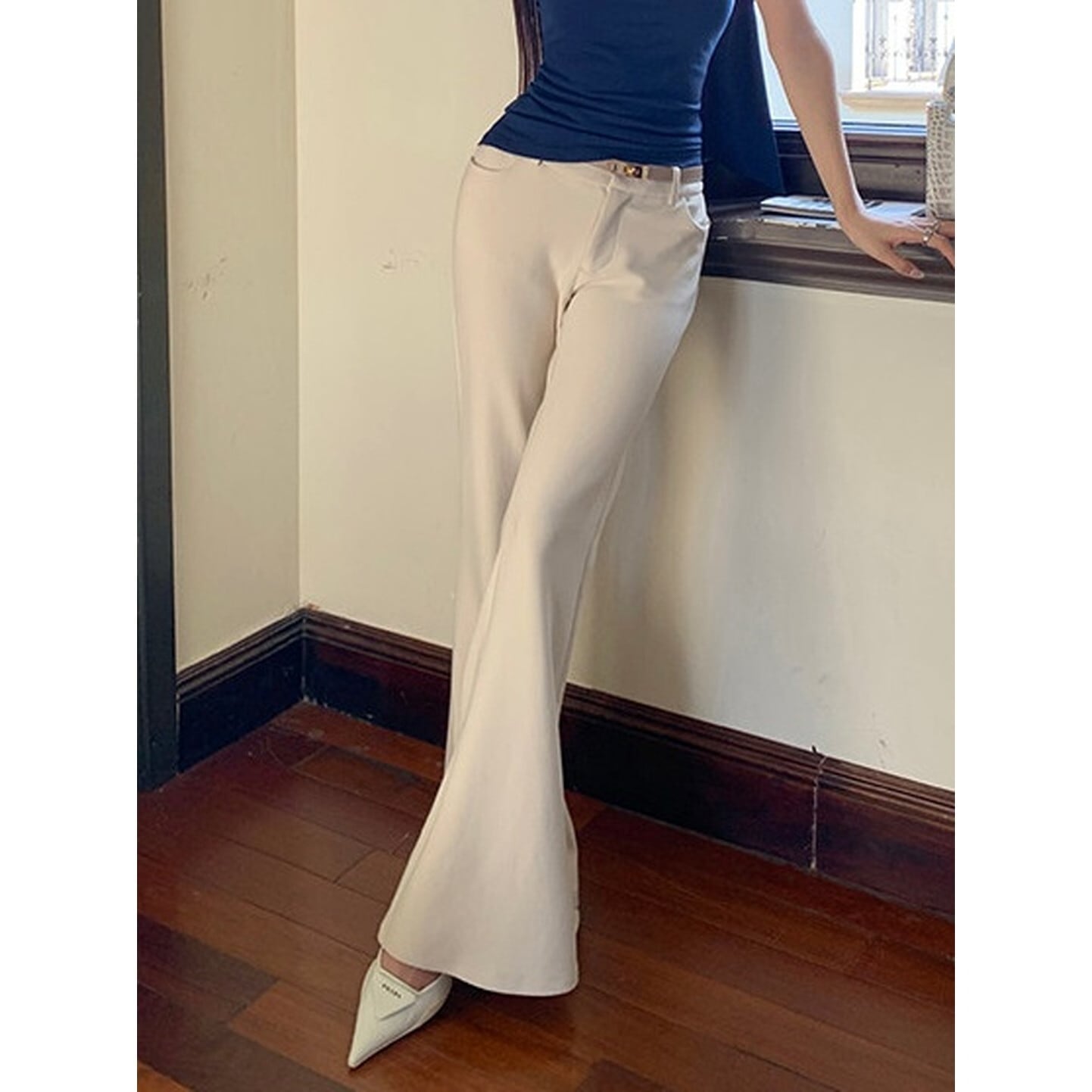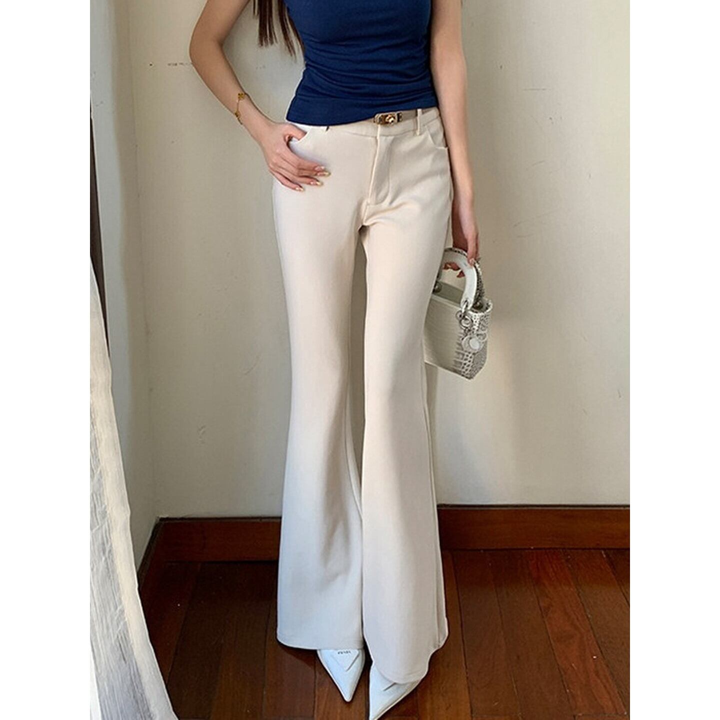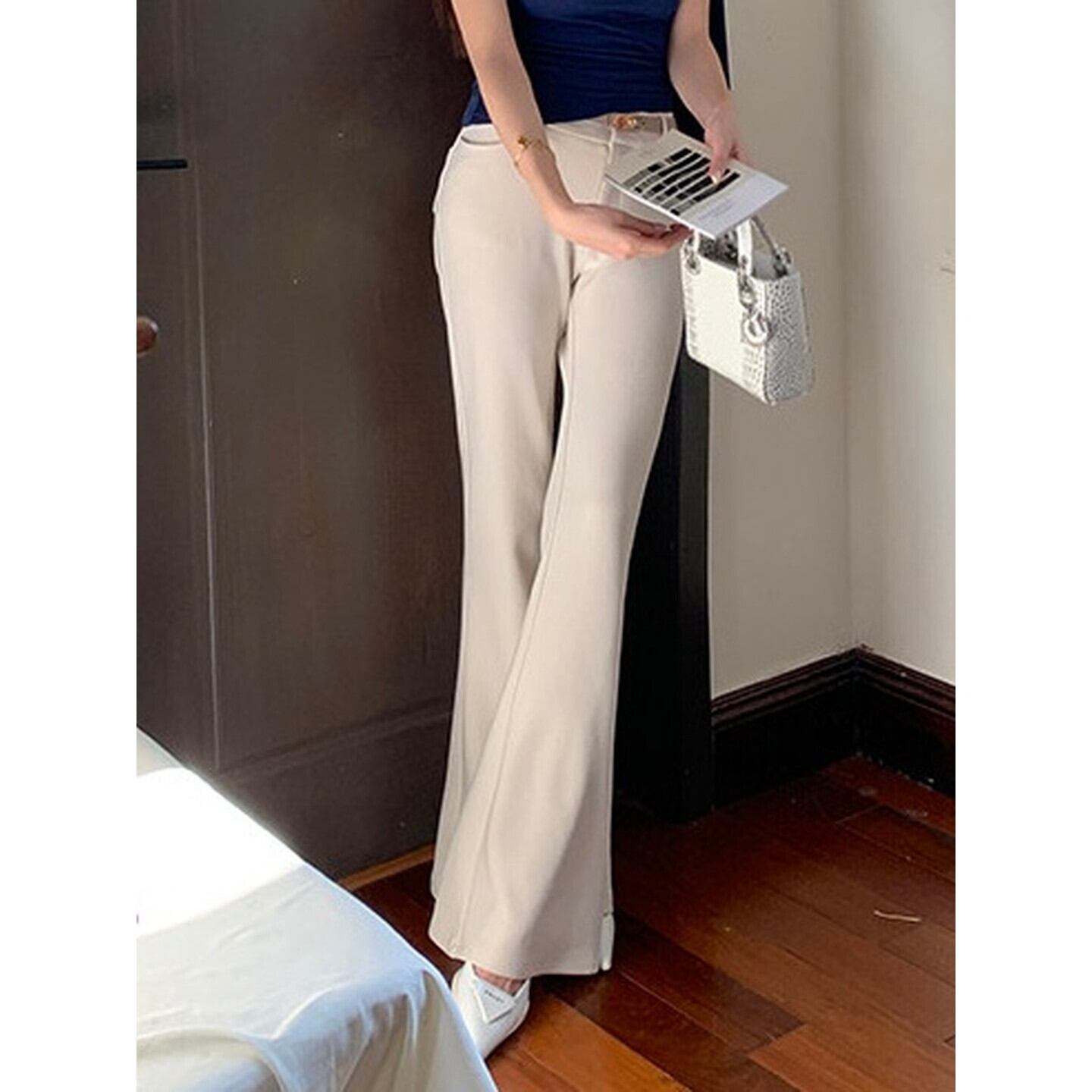スタイルアップ効果のある、ハイウエストフレアパンツ。
