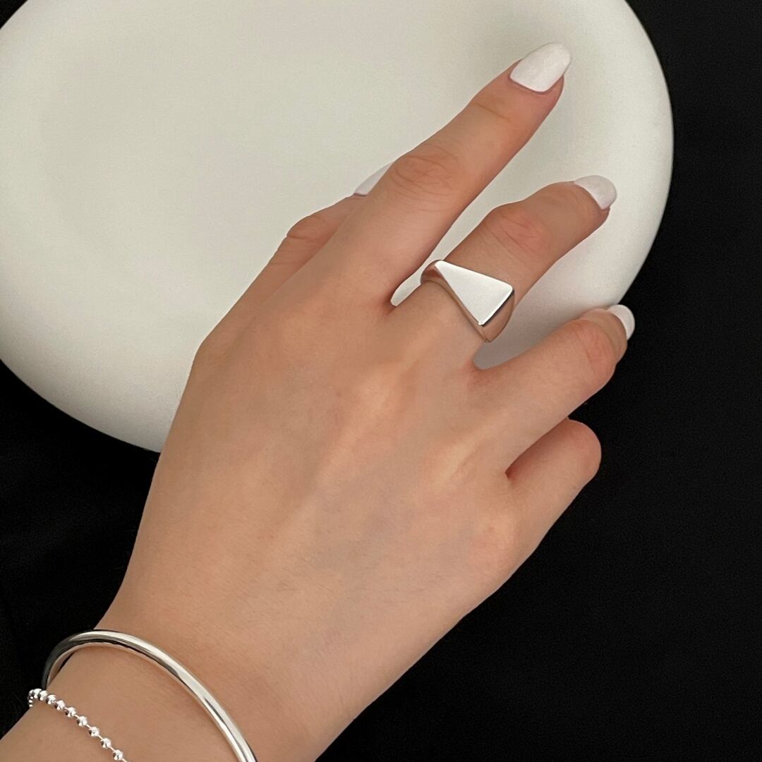 トライアングルのモチーフがシンプルなデザインながらも、その存在感は抜群で指先に繊細なアクセントを加え、どんなスタイルにもマッチします。