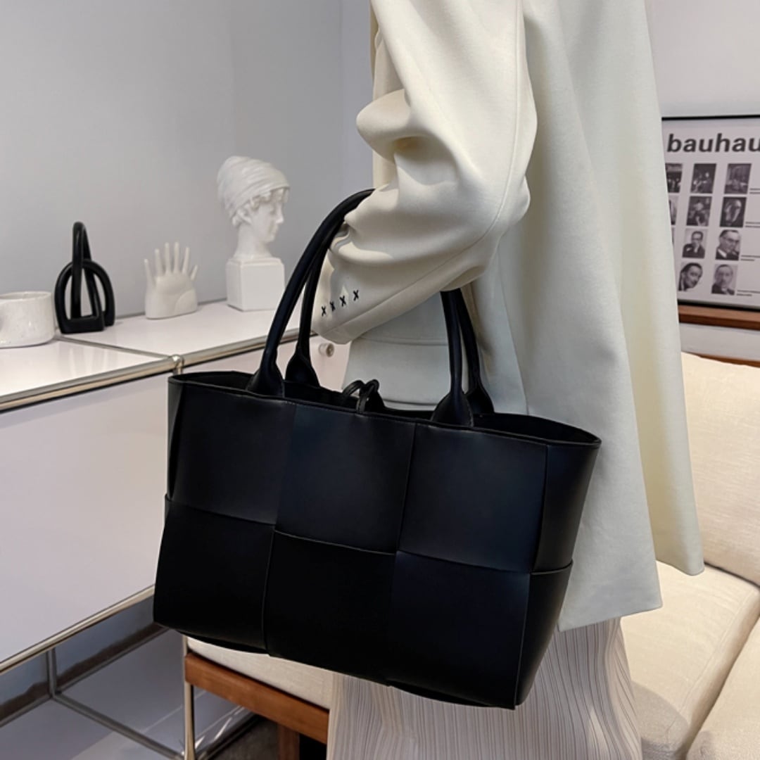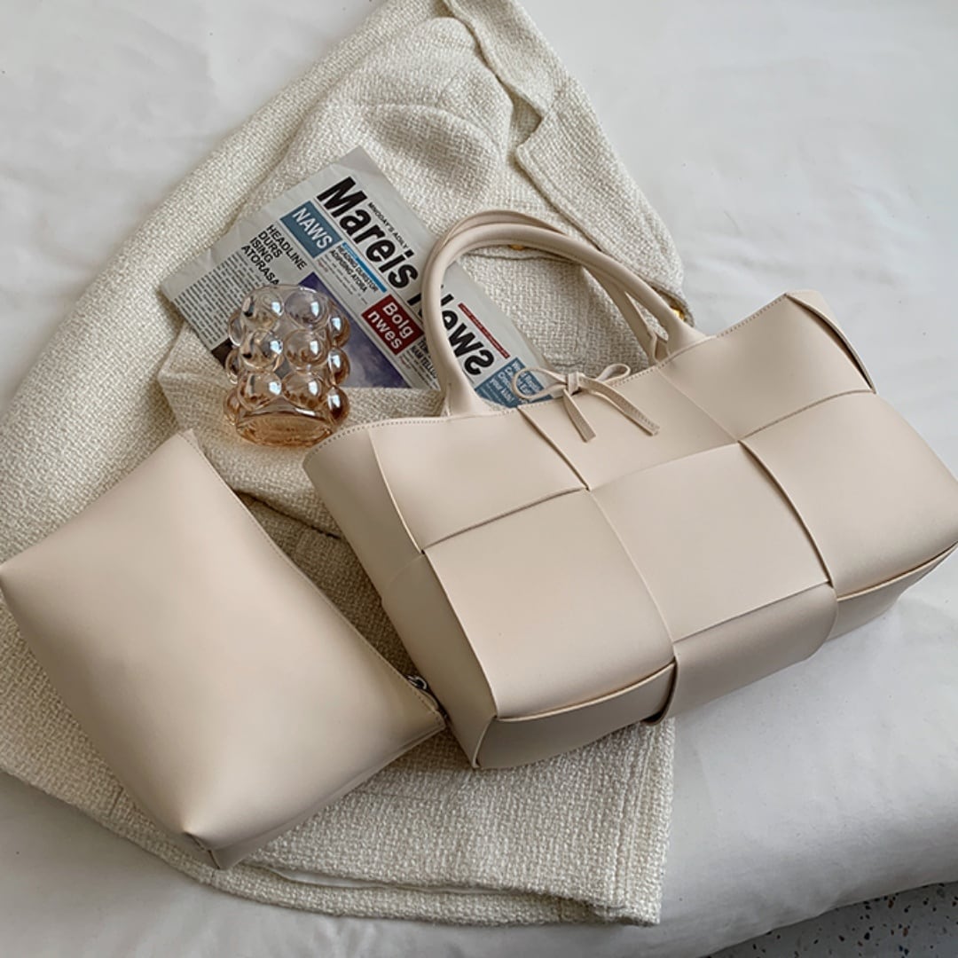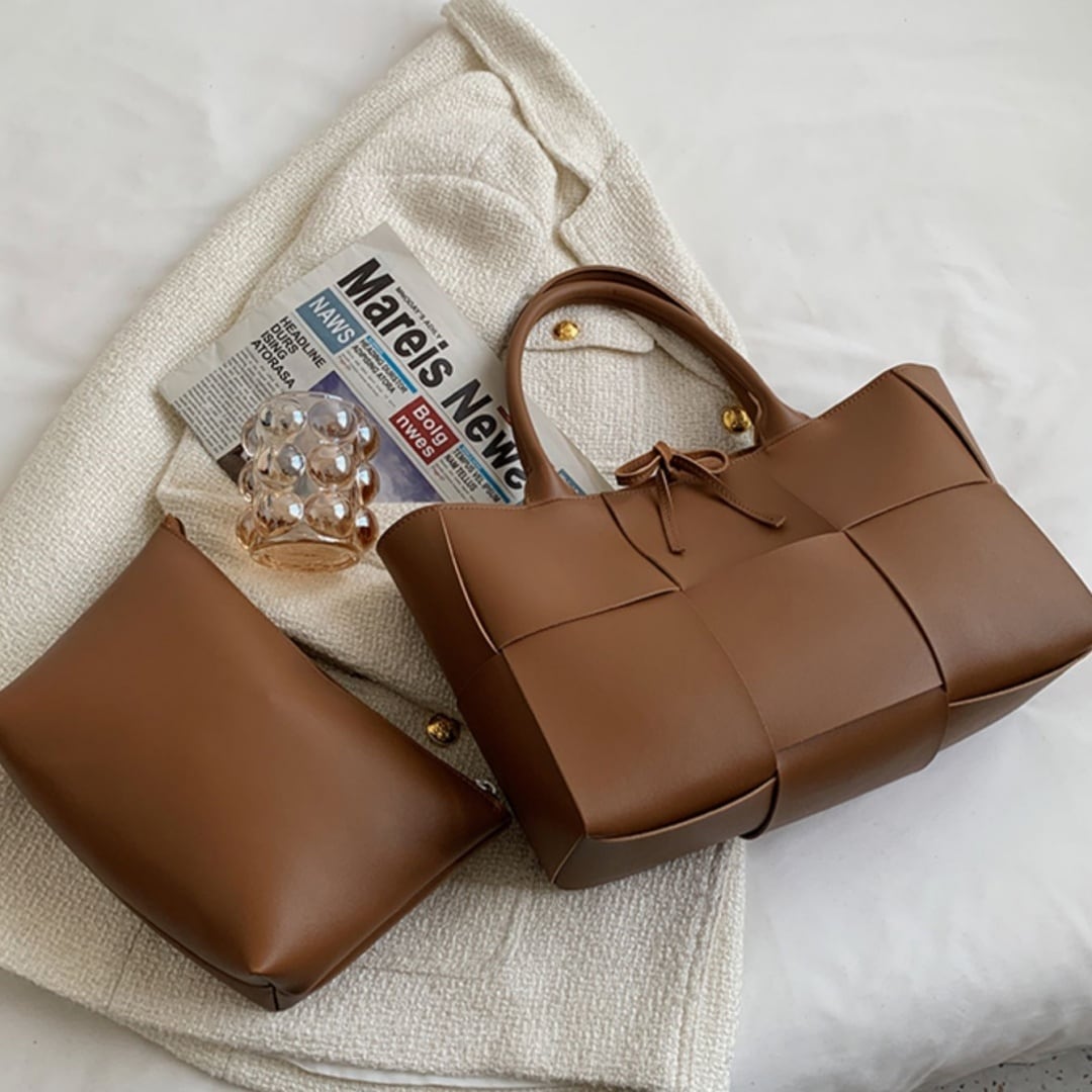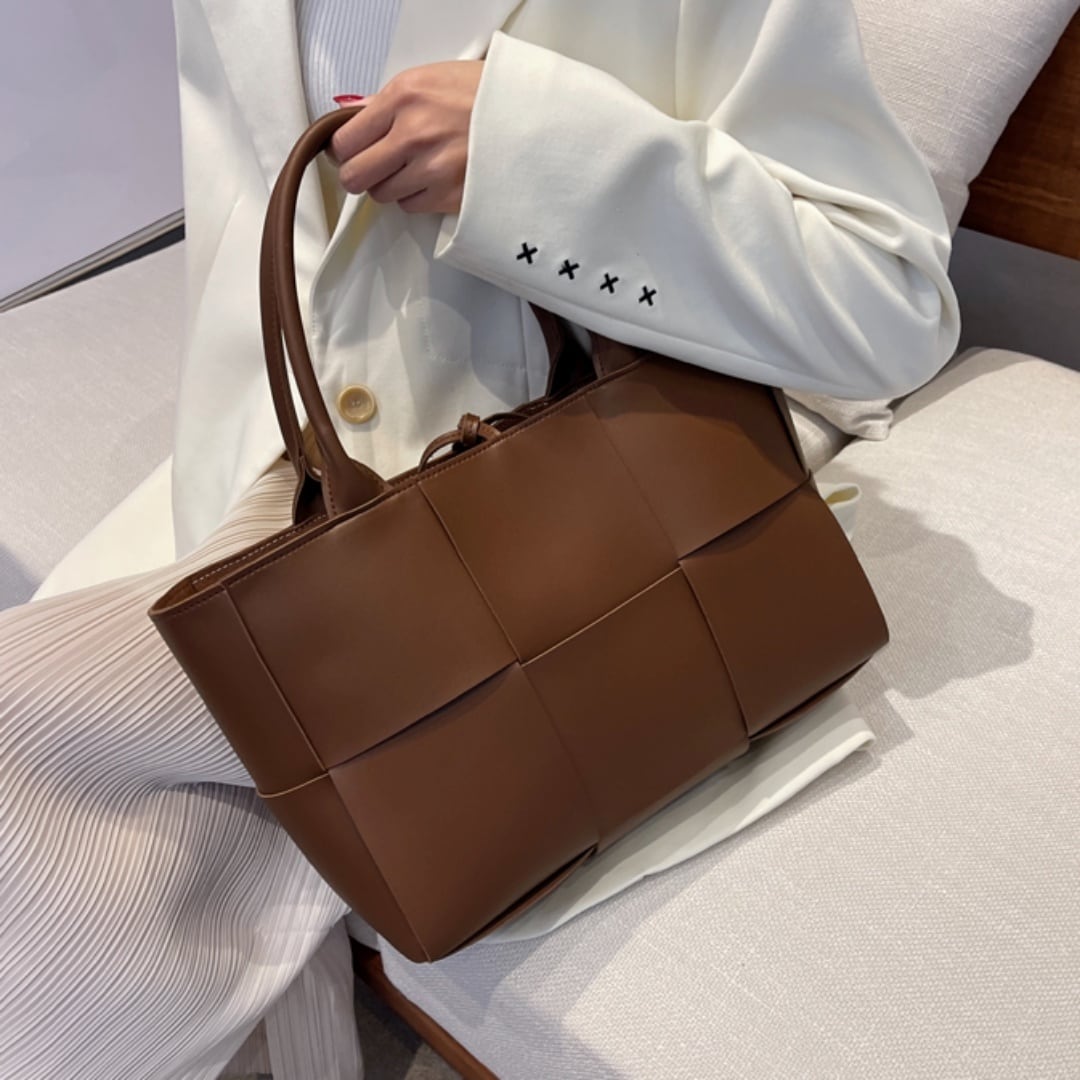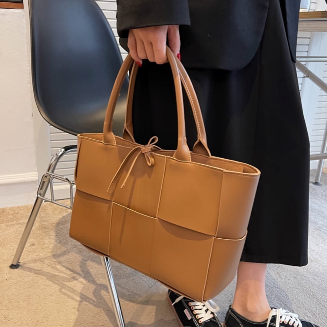 上品で使い勝手の良いダブルハンドル編み込みバッグ。