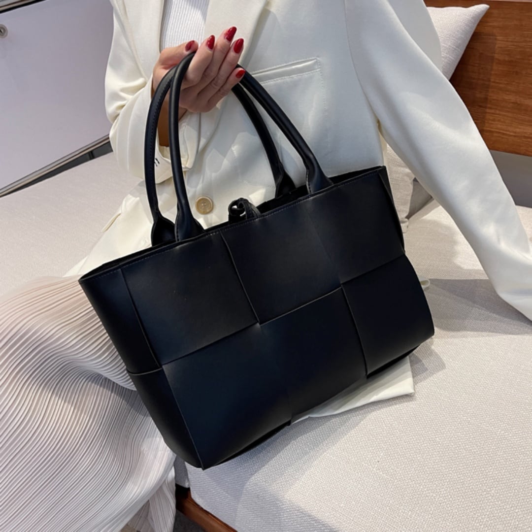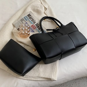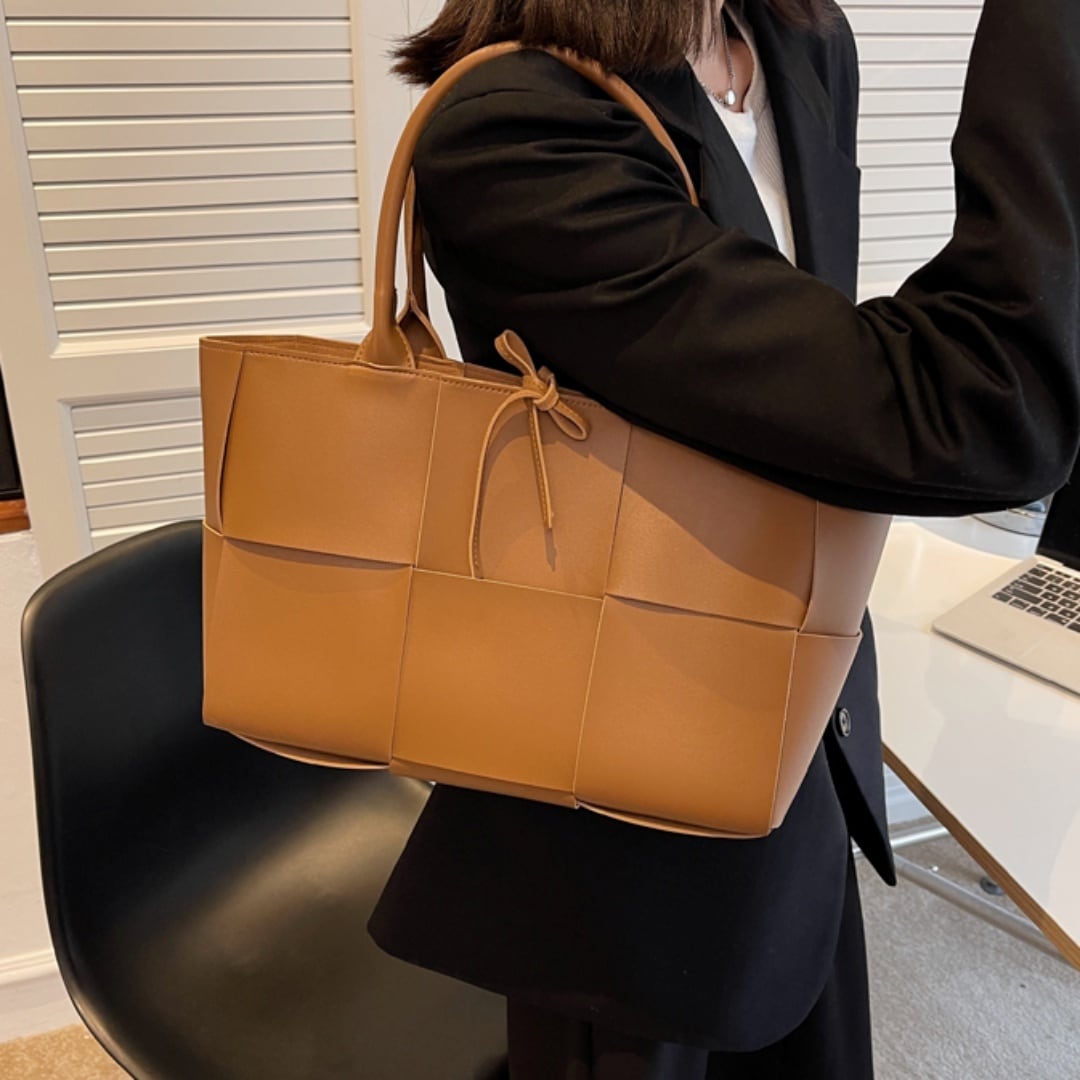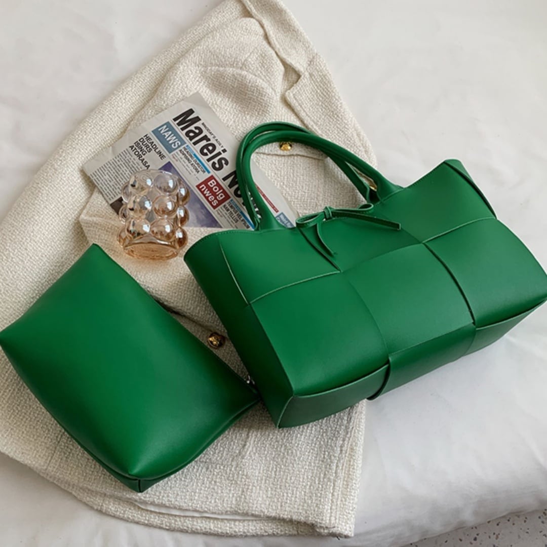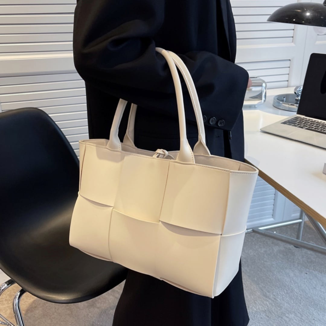 上品で使い勝手の良いダブルハンドル編み込みバッグ。