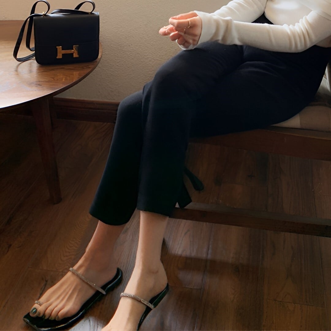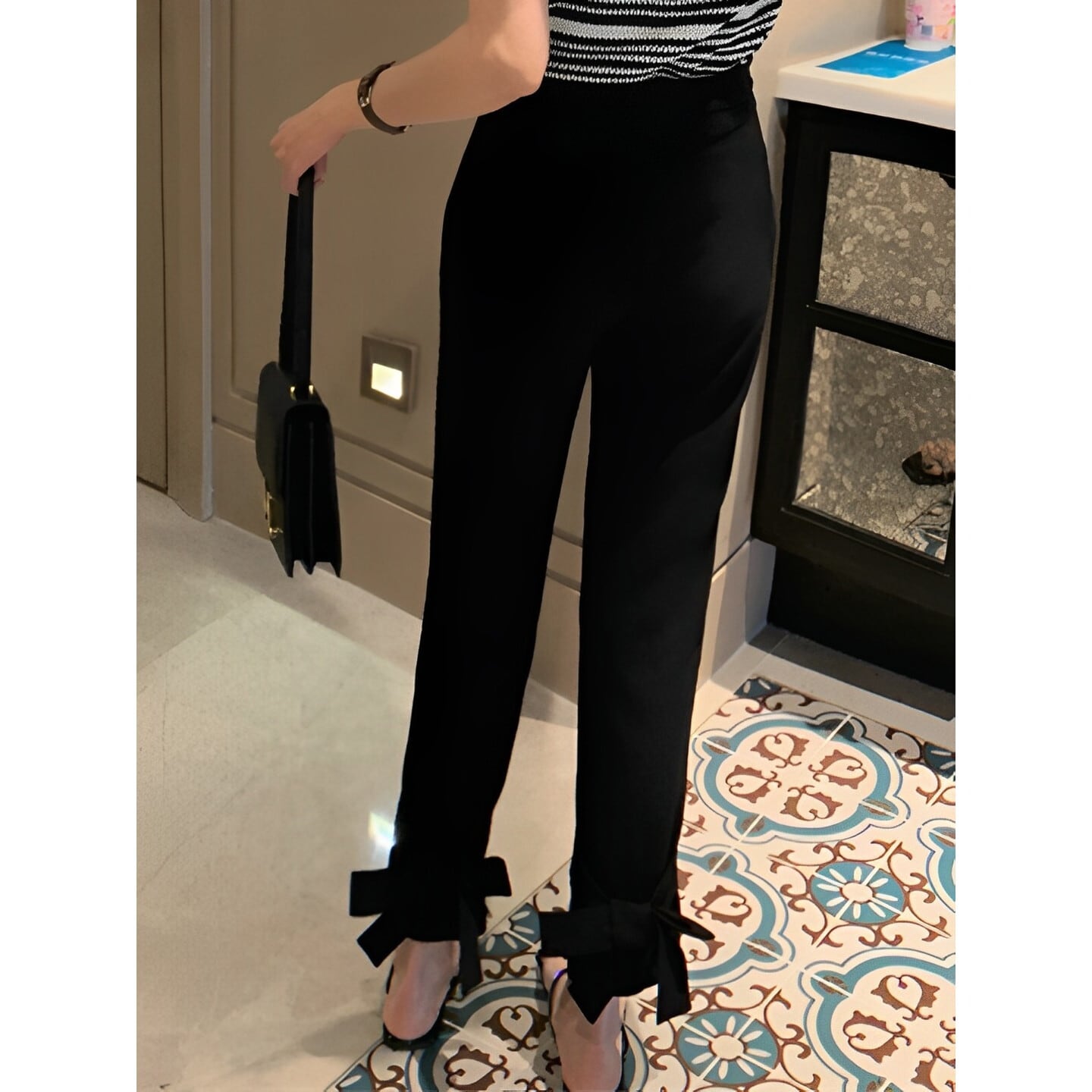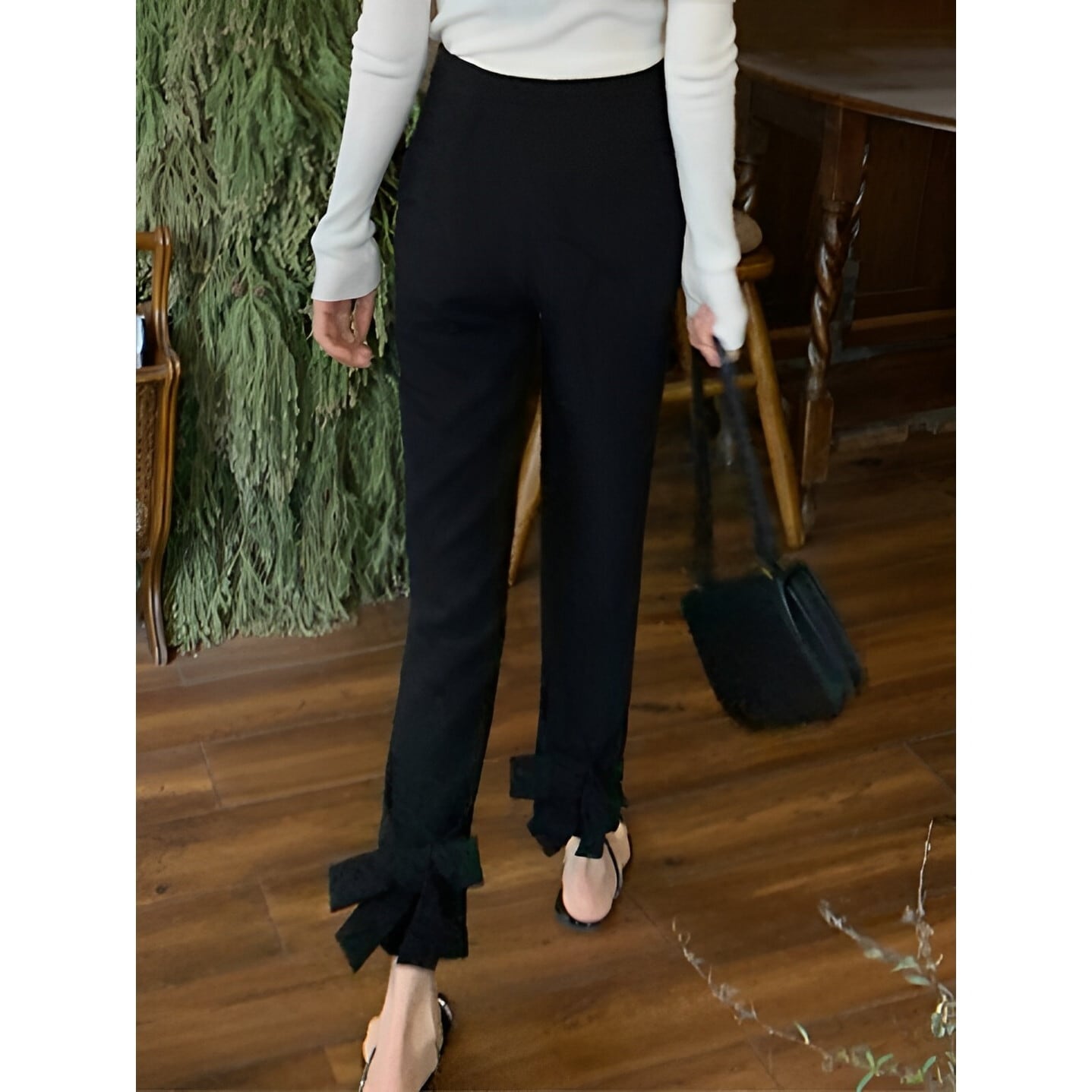 足元のリボンディテールが女性らしいエレガントな印象を演出します。