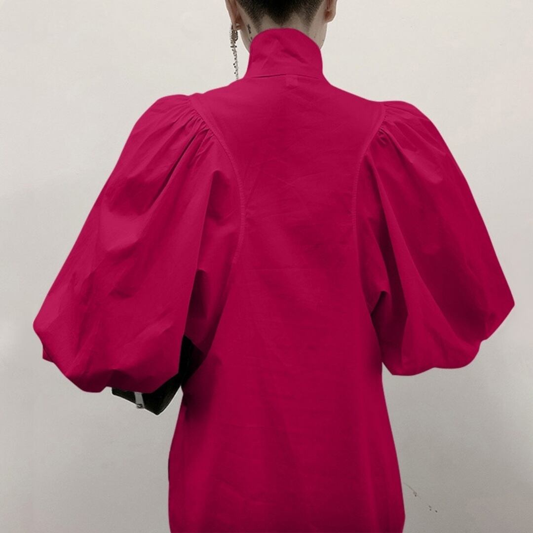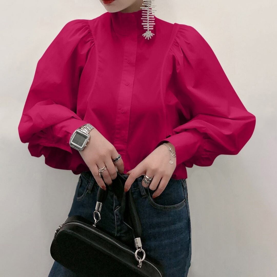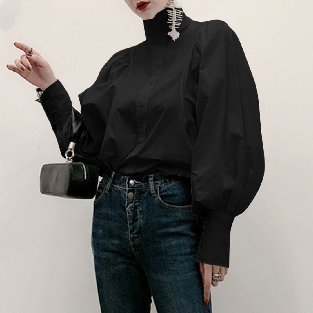 ハイカラーボリュームスリーブブラウス/3col M01418
