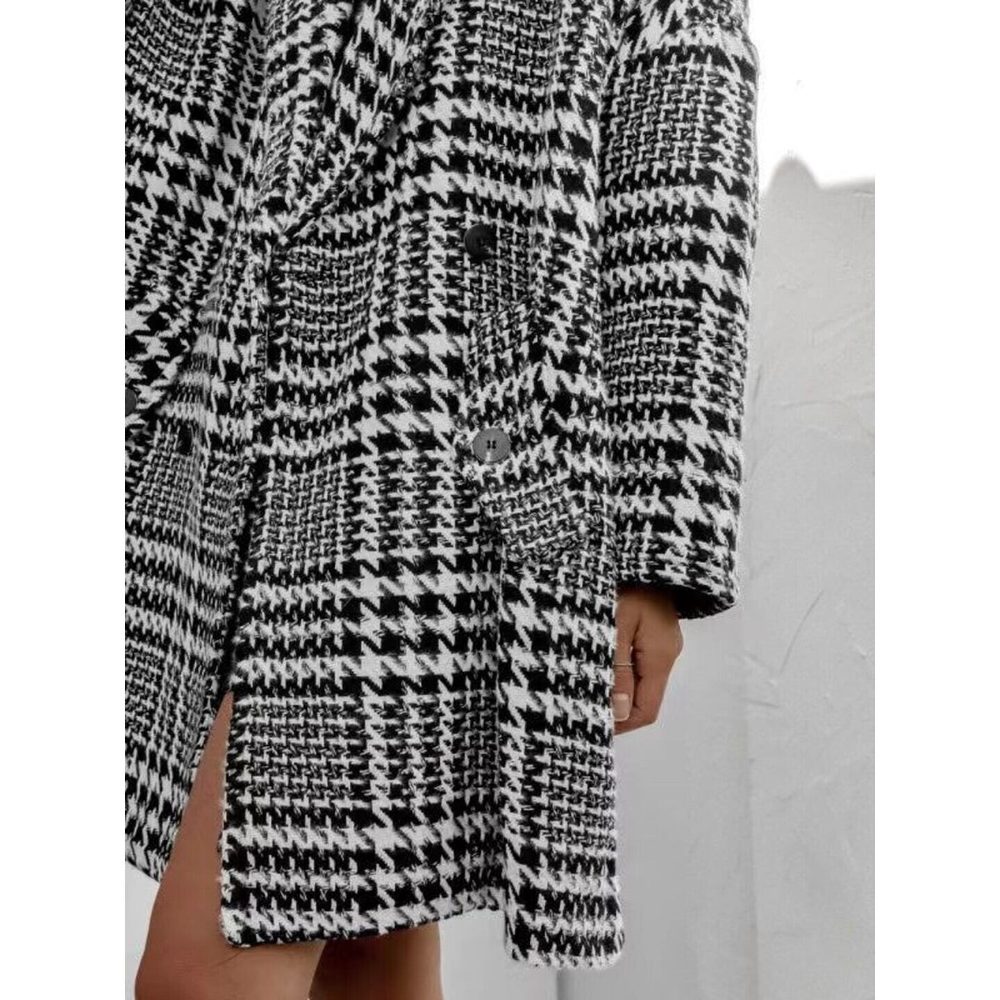 クラシックな千鳥格子柄が特徴のオーバーサイズチェスターコート。
