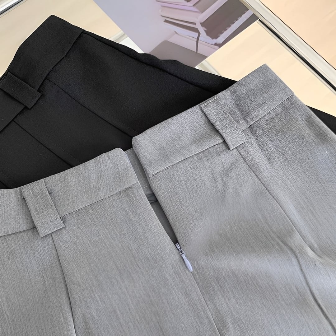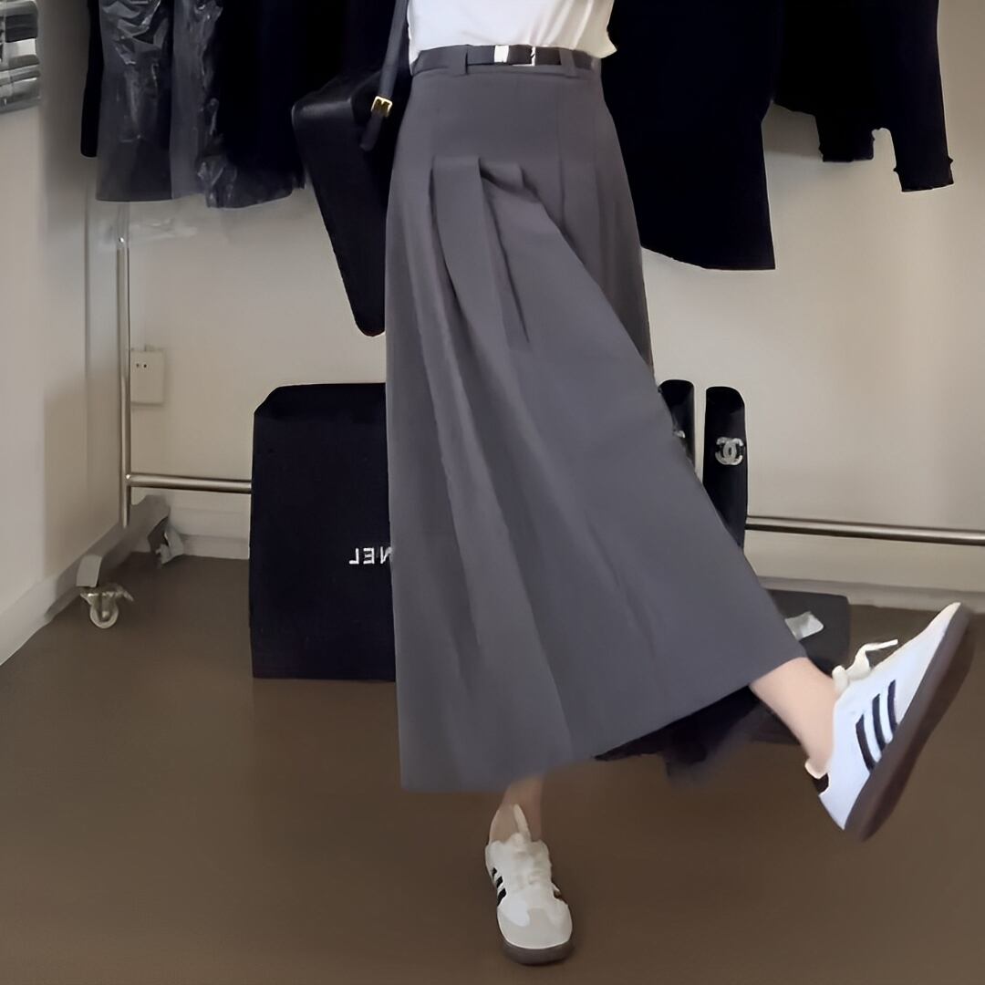すっきりとしたハイウエストデザインで、スタイルアップ効果も抜群です。付属のベルトでウエストのフィット感を調整でき、シルエットを綺麗にキープ。