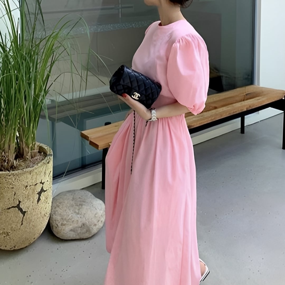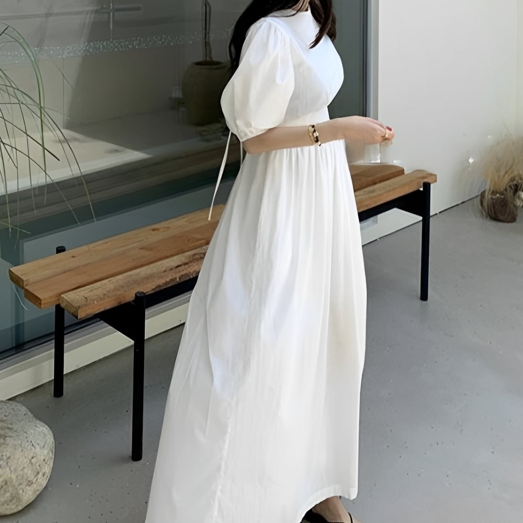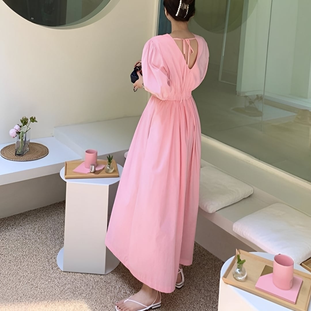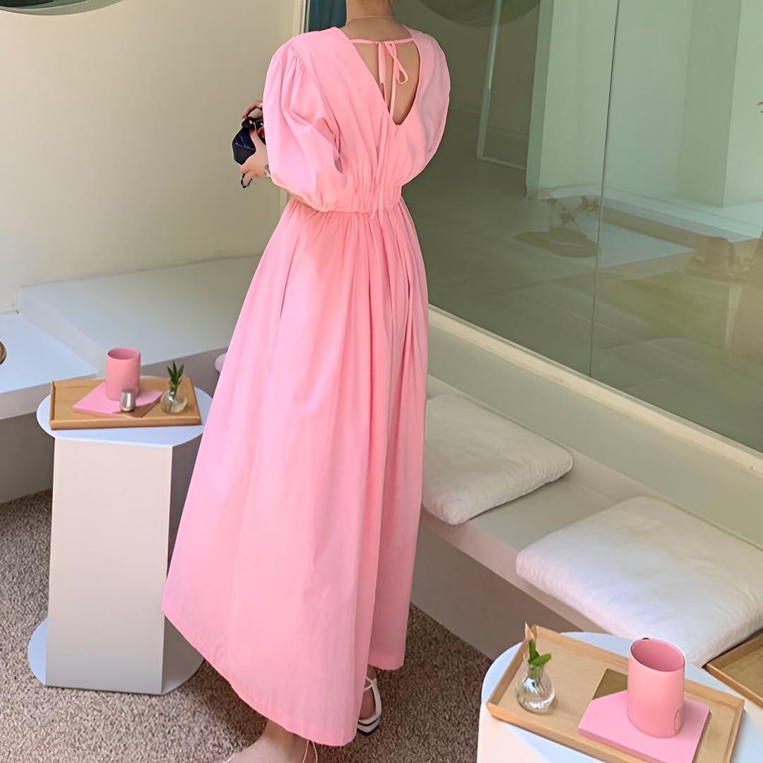 背中の開きとリボンデザインが、後ろ姿も抜かりなく可愛く魅せてくれます。さりげない肌見せが、大人のこなれ感を演出♪